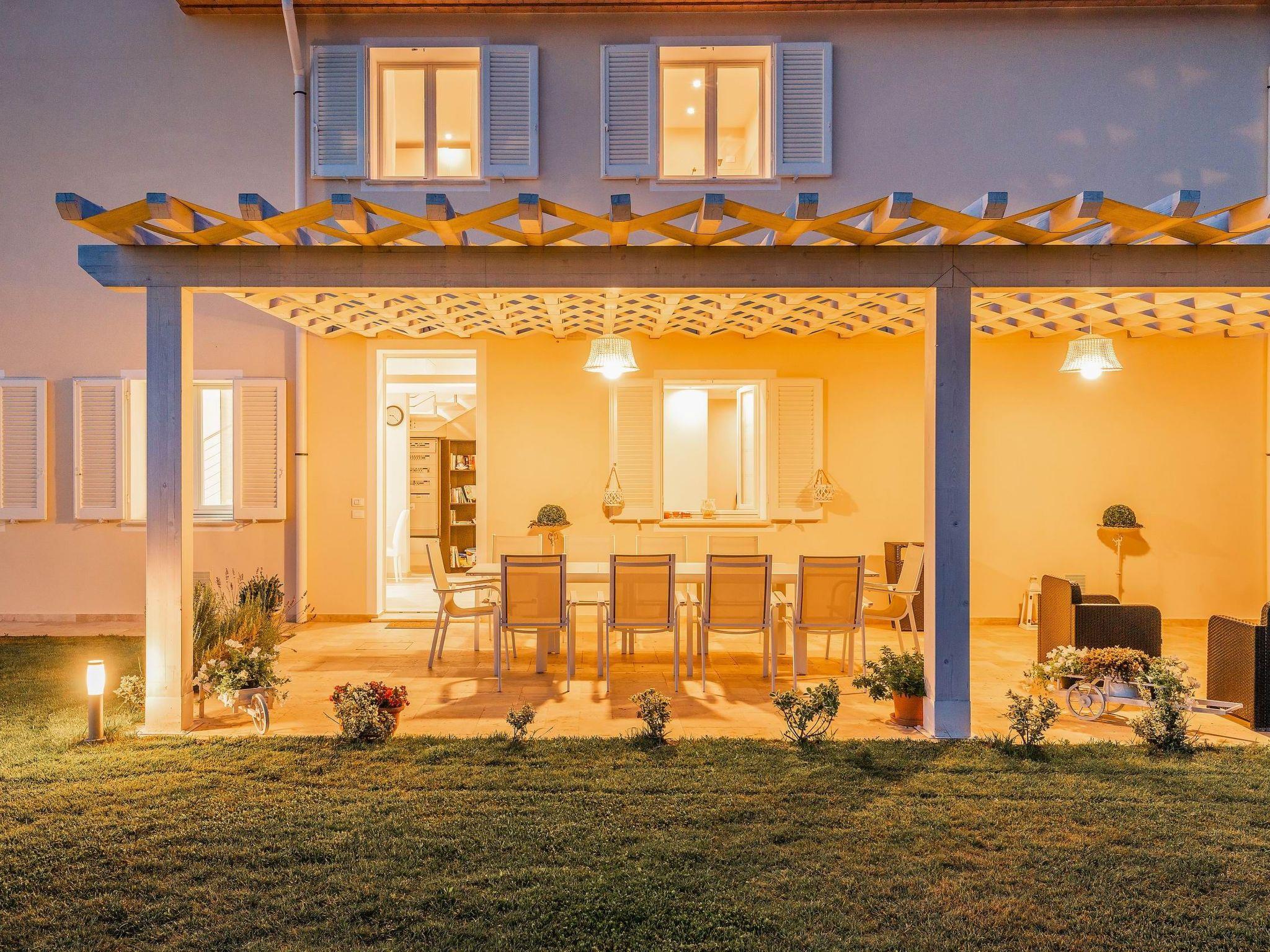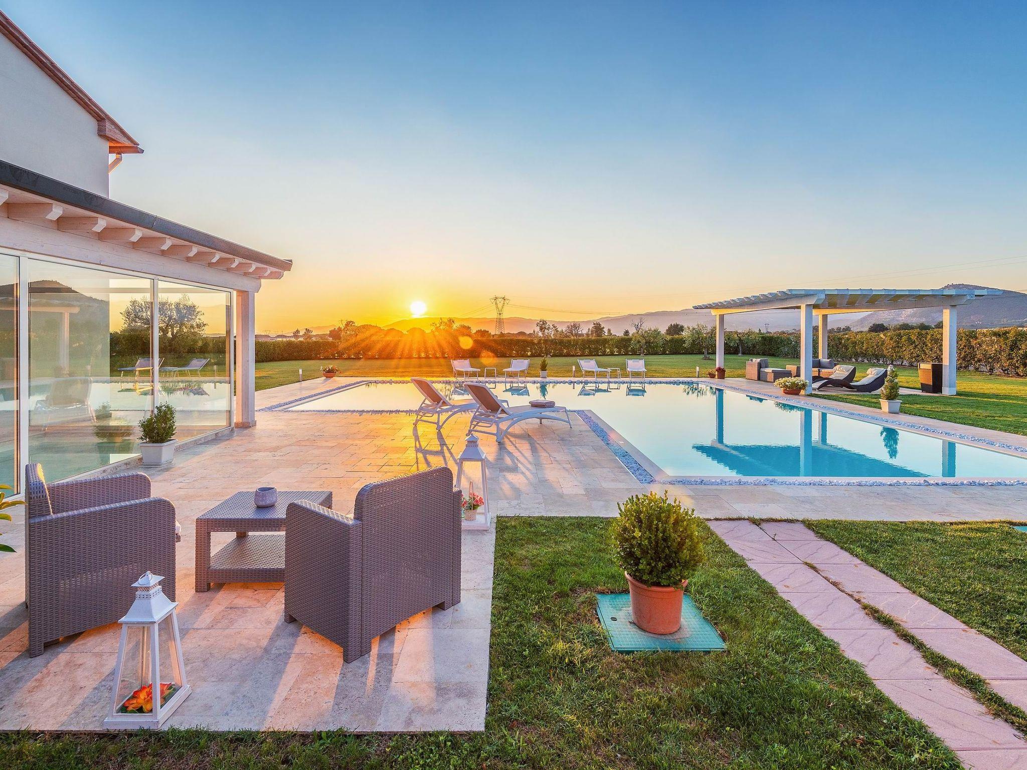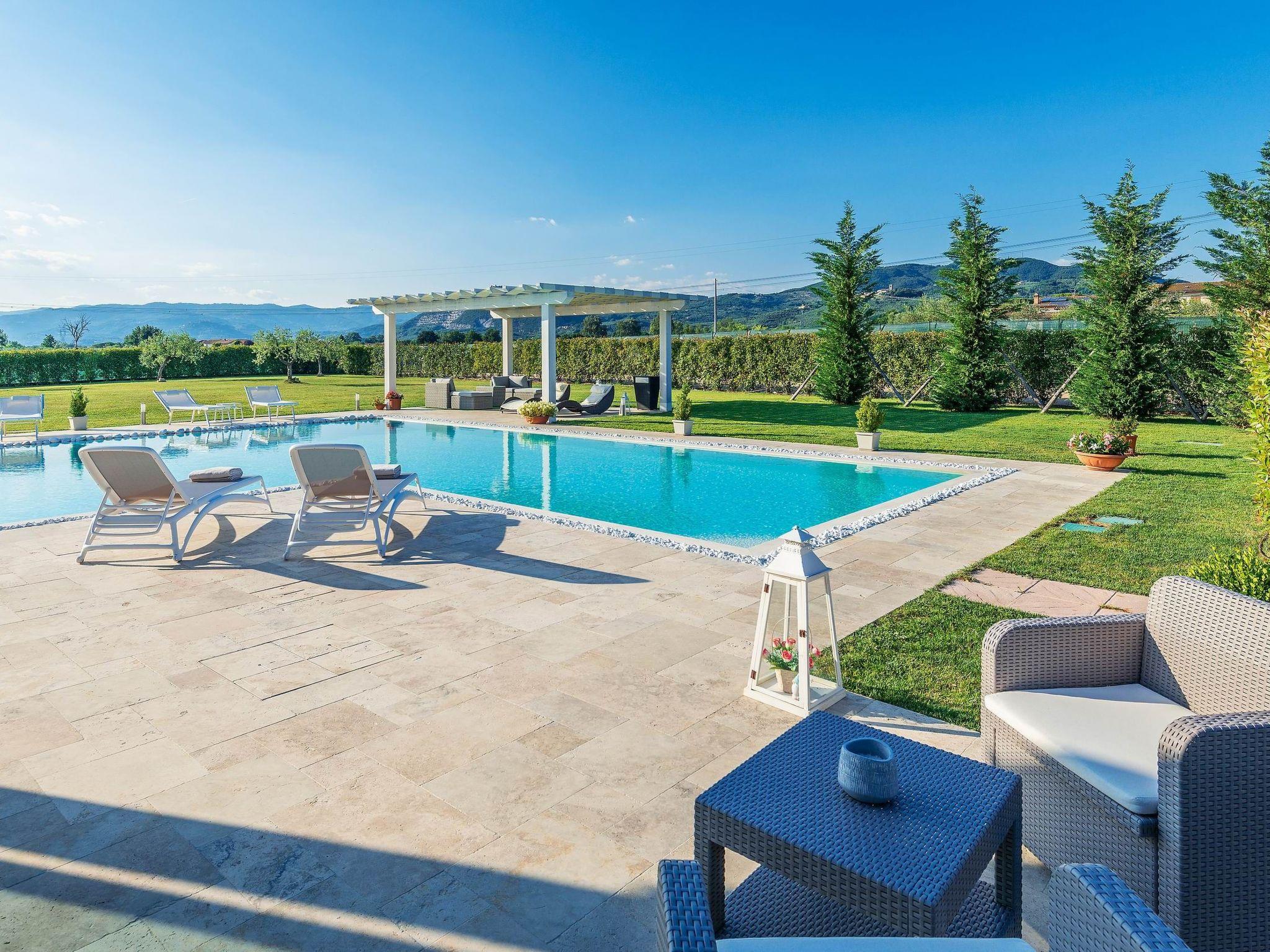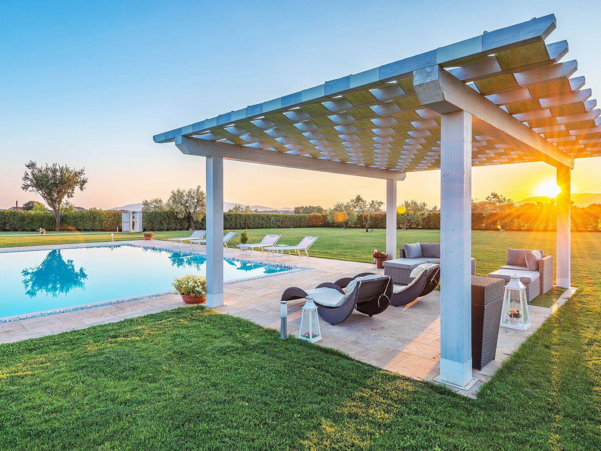 The villa is surrounded by a large, well-kept garden, equipped with a pergola for outdoor lunches and dinners, a barbecue and a relaxation area, next to the large L-shaped swimming pool (11 x 7 m, with an extension of 4 x 5 m).