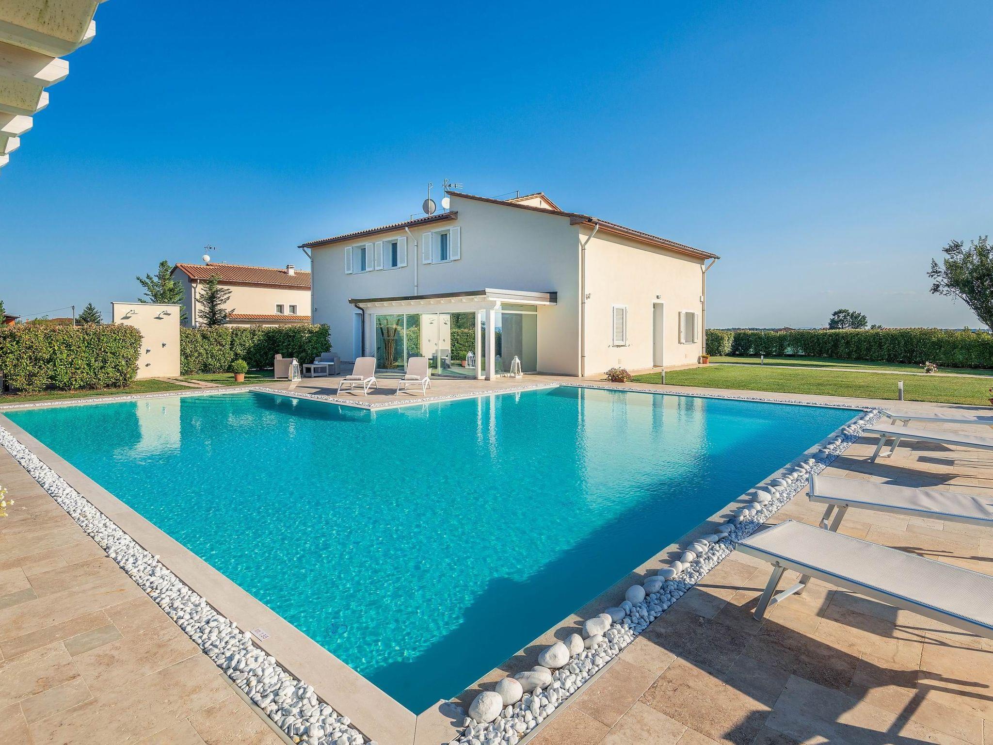 The villa is furnished in a modern style, favouring elegant shapes and colours. It is also the perfect place for those who want to spend a holiday in absolute privacy, relaxation and tranquillity in the Tuscan countryside, but also want to have shops and transport nearby. The nearest town, Cintolese, with shops, supermarkets, etc., is only 1.5 km away.