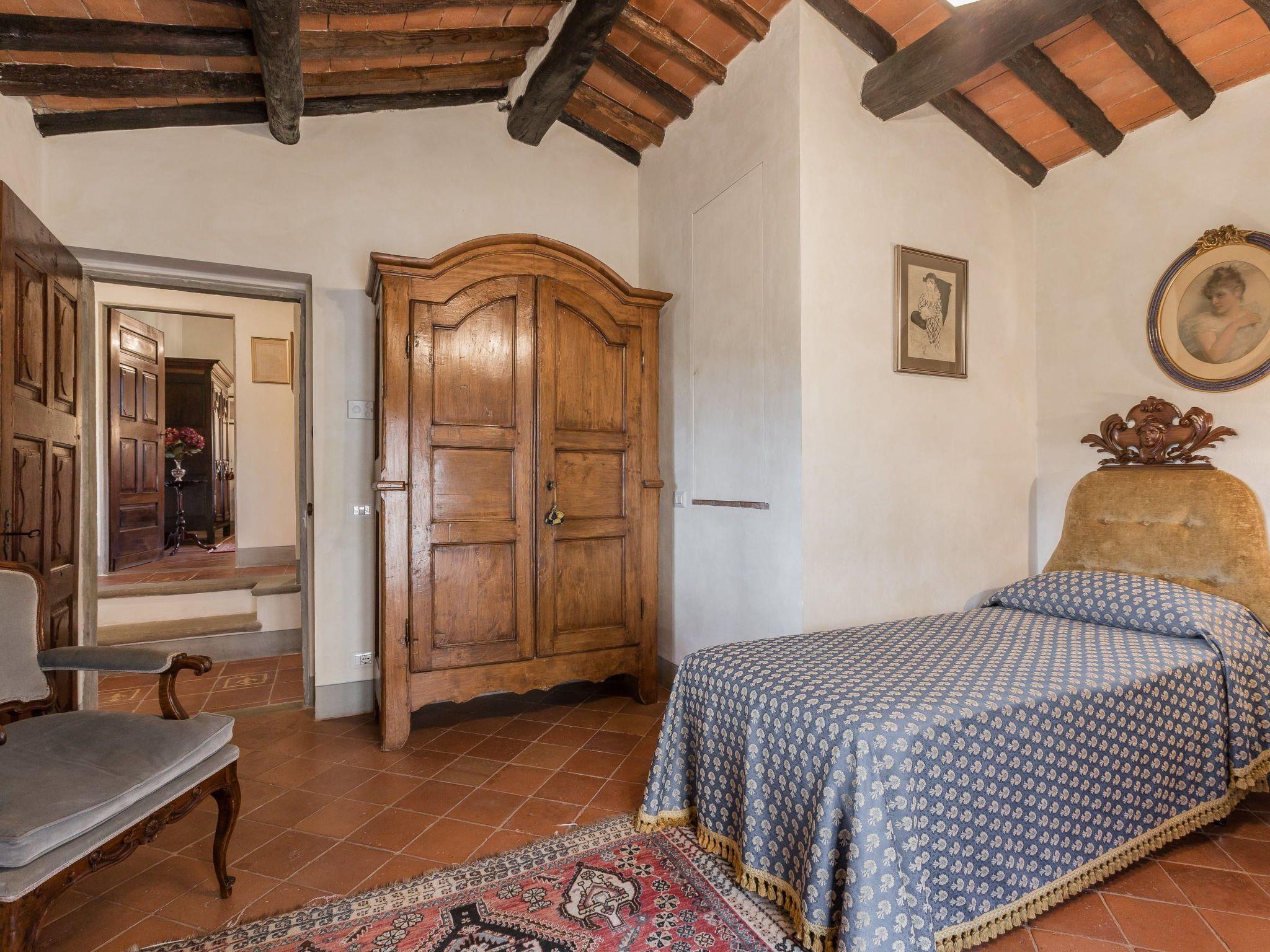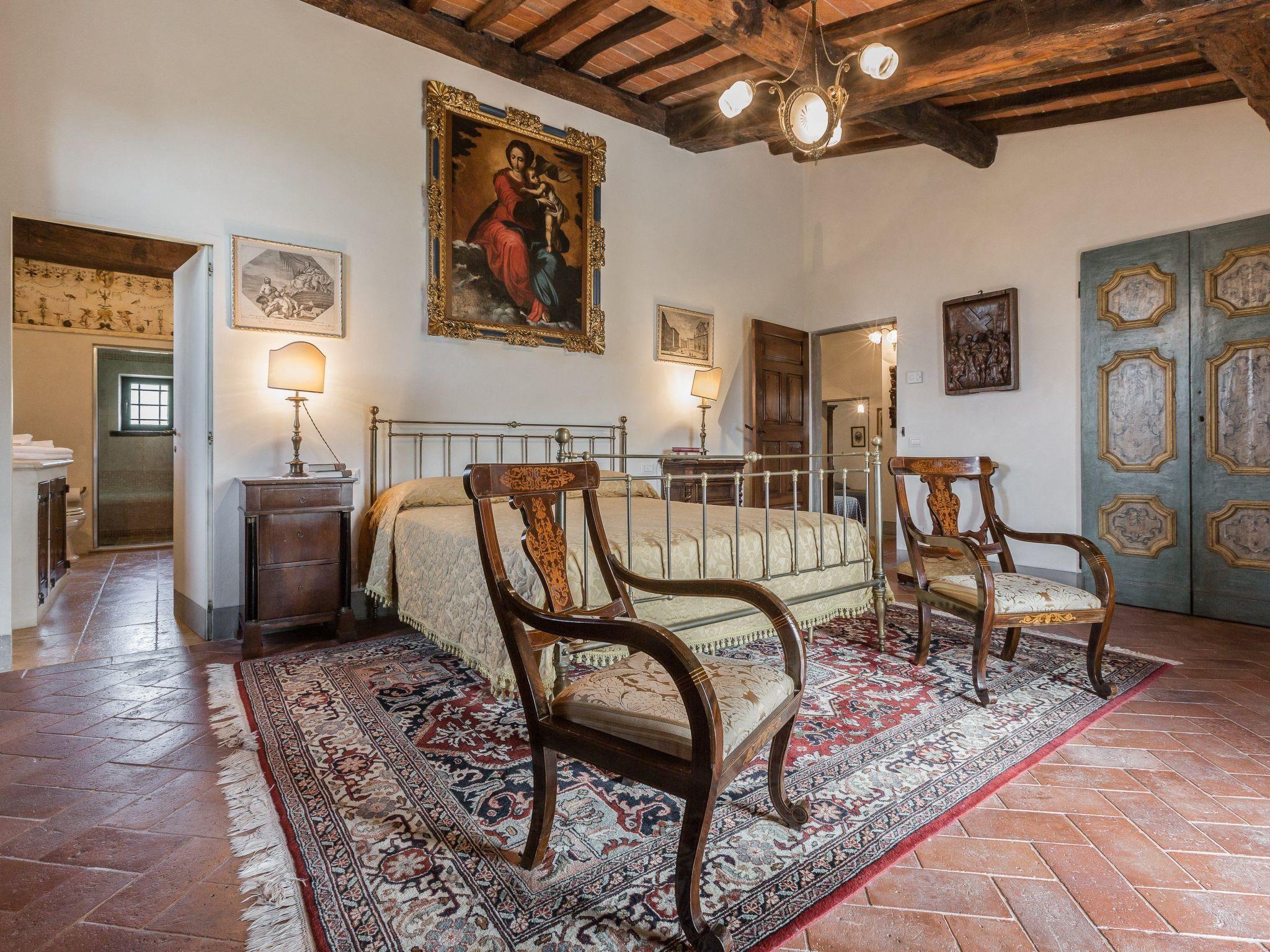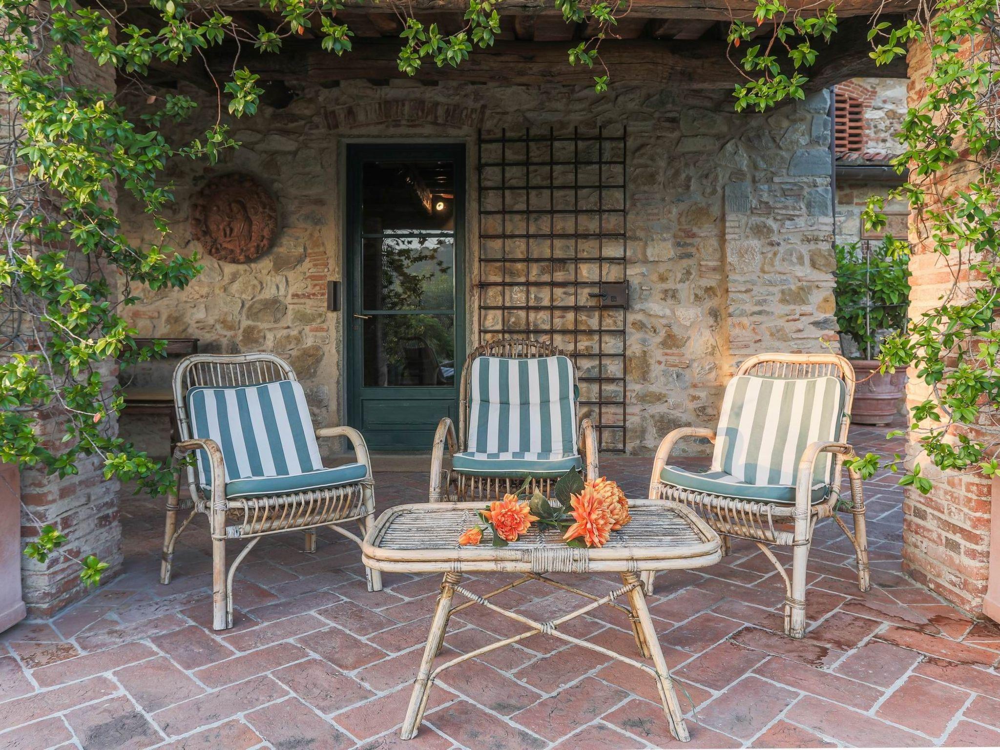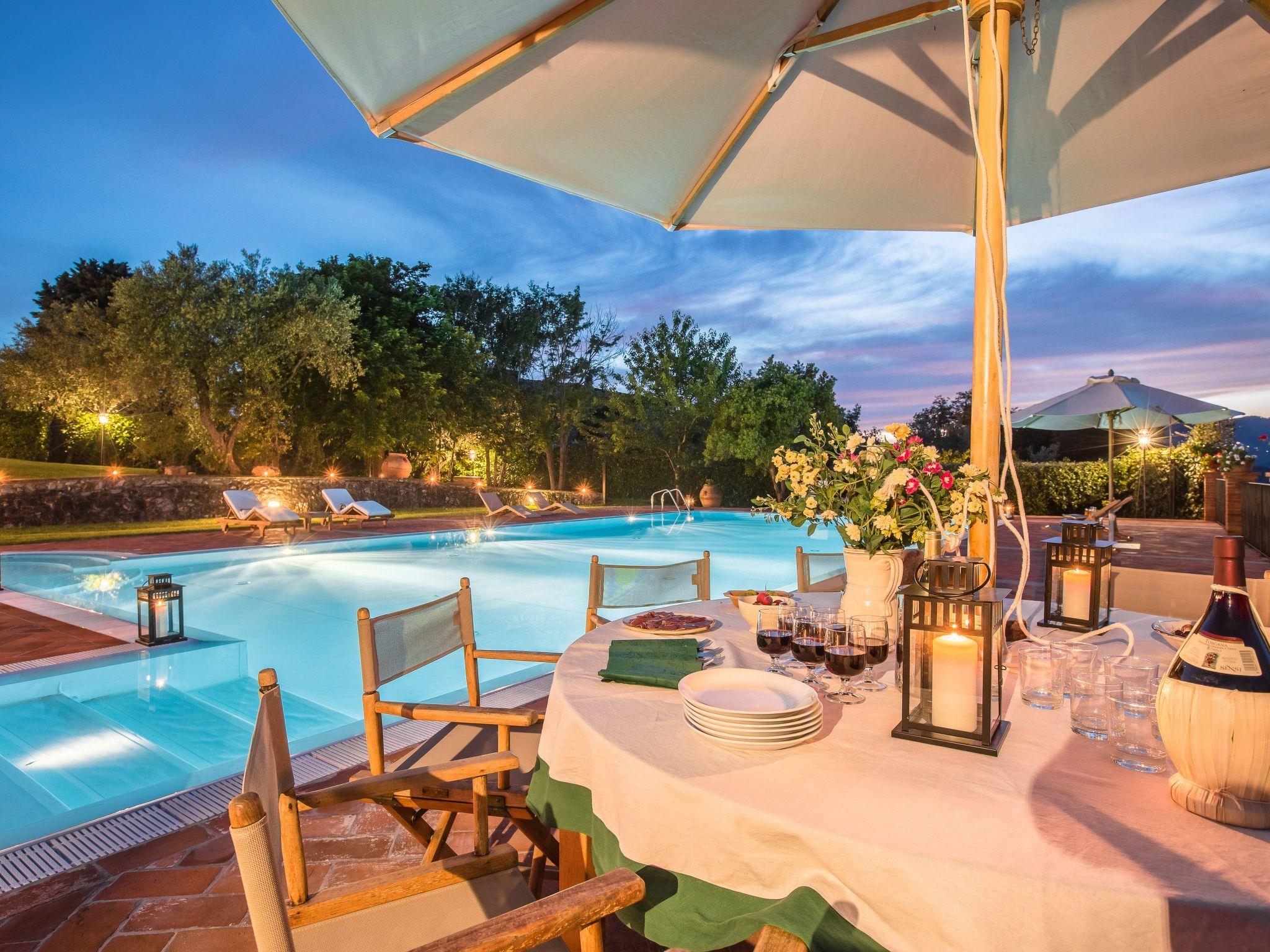 This charming stone villa with swimming pool is situated in the fertile hills of the Valdinievole, just 2 km from the famous spa town of Monsummano Terme. Originally an 18th-century farmhouse built of local stone, the villa is now surrounded by a large garden full of lush plants and beautiful Tuscan terracotta vases. In a picturesque position with a wide view of the surrounding countryside, there is an infinity pool (16 x 8 m, depth from 1.35 to 2.50 m, open from mid-April to mid-October) with a very large whirlpool area for 8 people. Under the pool, equipped with night lighting and an acoustic alarm system for the safety of our young guests, is a large changing room with 2 showers and a WC. There is also a fitness room equipped with a treadmill with digital display, a multifunctional Technogym bench, an exercise bike and a foosball table. The garden also offers several furnished areas, perfect for outdoor dining, including a relaxing stone amphitheatre, a barbecue and a children's corner with a swing and slide. Definitely an ideal place for those seeking peace and tranquillity. The 350 m² villa can accommodate up to 11 people on two floors. It is elegantly furnished with exceptional antiques tastefully collected over the years and features wood-beamed ceilings and beautiful old terracotta floors, lovingly restored by the owners. On the ground floor there is a large living-dining room (80 square metres) with a table for 14 and a magnificent 16th century fireplace (not in use), sloping ceilings with wooden beams and French windows overlooking the garden with views of the historic centre of Monsummano Alto; A further living room with satellite TV (Netflix, Bose Bluetooth acoustic speakers) and a double sofa bed and a single bed leads to the large Tuscan kitchen with fireplace (fully equipped with professional hob with 2 ovens, side-by-side refrigerator with icemaker, dishwasher, microwave, Nespresso coffee machine, American coffee machine, moka coffee maker, toaster, blender, juicer), a cast-iron stove with ovens and a French window leading to the veranda suitable for outdoor dining with a table seating 14 a double bedroom with a 17th-century fireplace (not in use) and French doors leading to a covered veranda; a bathroom with a hydro-massage shower; and a laundry room with a washing machine and dryer. From the entrance hall, a stone staircase leads to the first floor, where there is a large double bedroom (30 m²) with en-suite bathroom with Turkish bath/shower, another double bedroom and a twin bedroom (which can be converted into another double bed), both sharing a bathroom with whirlpool tub and shower with chromotherapy and aromatherapy kit. All rooms are fitted with sumptuous Persian carpets. Amenities: Wi-Fi (up to 30 MB download, up to 3 MB upload), all double beds are king-size, all windows are fitted with mosquito nets, cots, high chairs, baby bottle steriliser on request, heating and air conditioning in all rooms (heating and air conditioning consumption not included), welcome hamper with a light dinner on the evening of arrival and a continental breakfast on the first morning, housekeeping on Wednesdays (2 hours) with towel change, complimentary toiletries in all bathrooms with shower/shampoo/hand soap and body/hand cream, hairdryer in all bathrooms, wall safe, Netflix, Bose Bluetooth speakers, fire extinguisher and fire blanket, carbon monoxide detectors in kitchens, smoke detectors on each floor, first aid kit (one in the villa and one in the pool locker room), audible pool alarm system, 4 mountain bikes, charcoal and fire tablets for barbecues and private parking for up to 5 people. Car, small pets allowed on request. A personal chef, wine and local product tastings, a babysitter, a transfer to/from the airport, a grocery delivery service, a hairdresser/beautician/masseuse at home; Organisation of cookery courses, vineyard visits and wine tastings, painting lessons (on canvas or porcelain); Provision of a chauffeur and a wedding planner and party planner. Distances: nearest shops and restaurants Monsummano Terme 2 km, Montecatini Terme 5 km, San Miniato 30 km, Florence Airport 40 km, Pisa Airport 45 km.