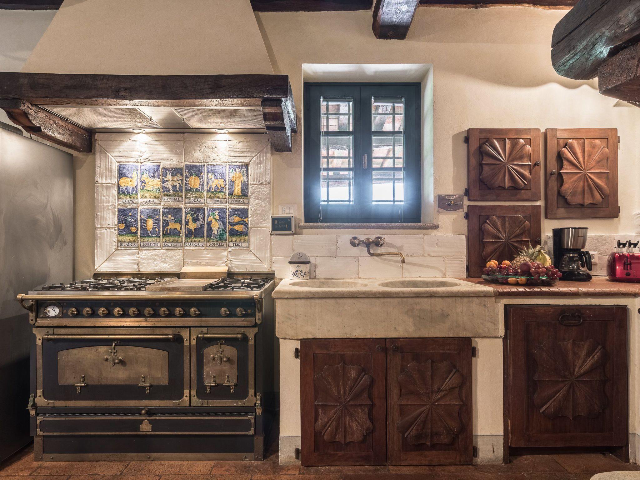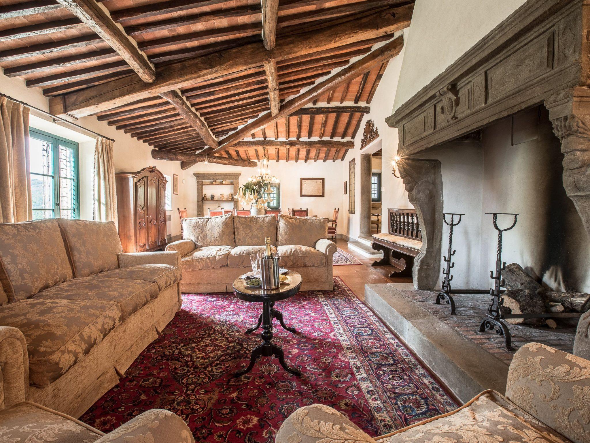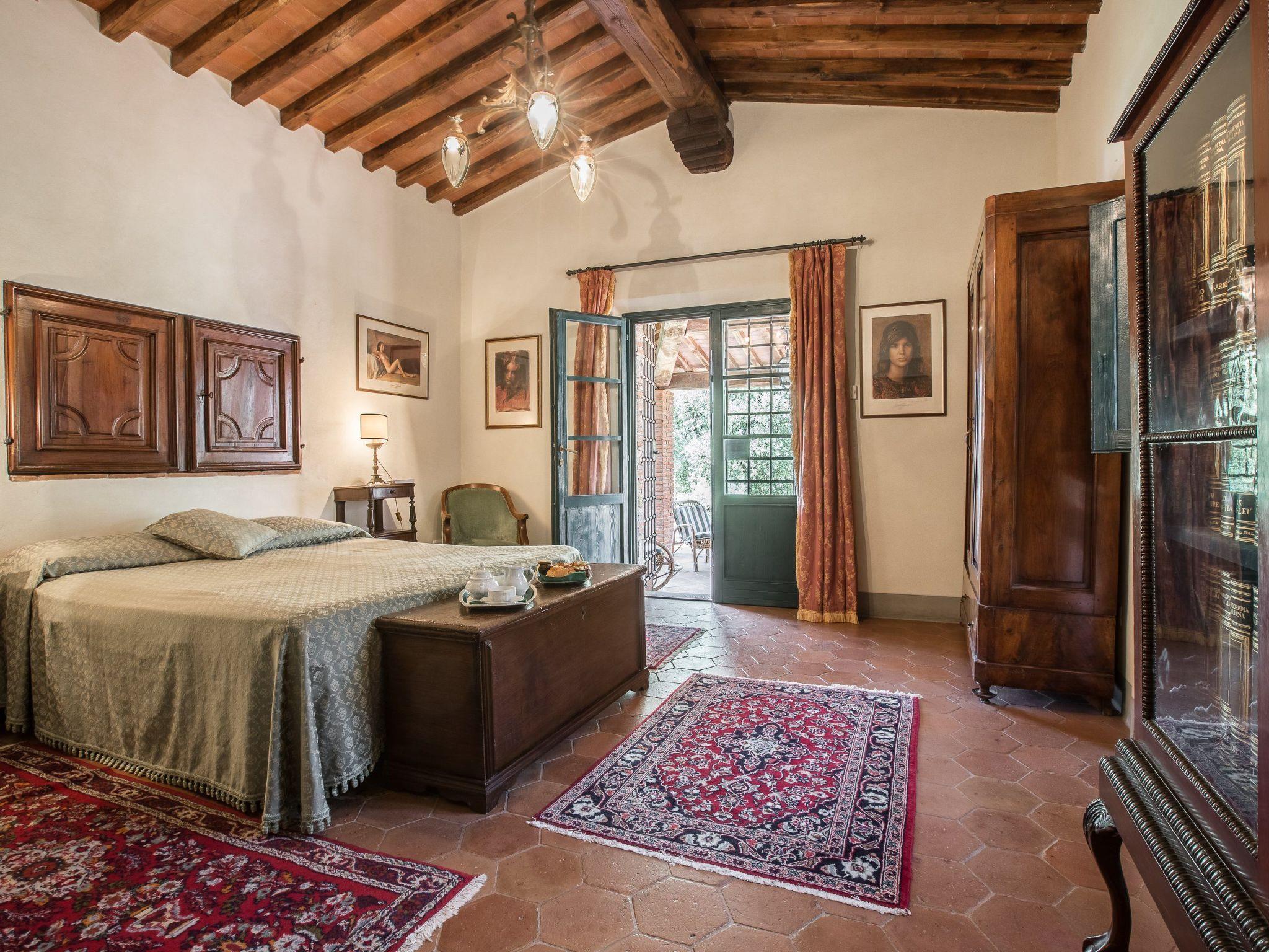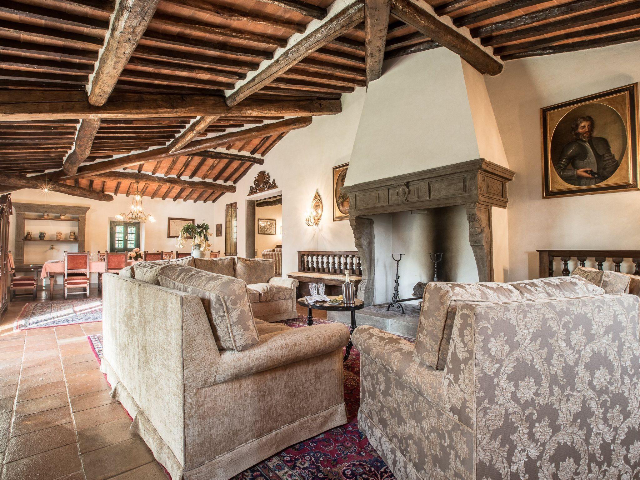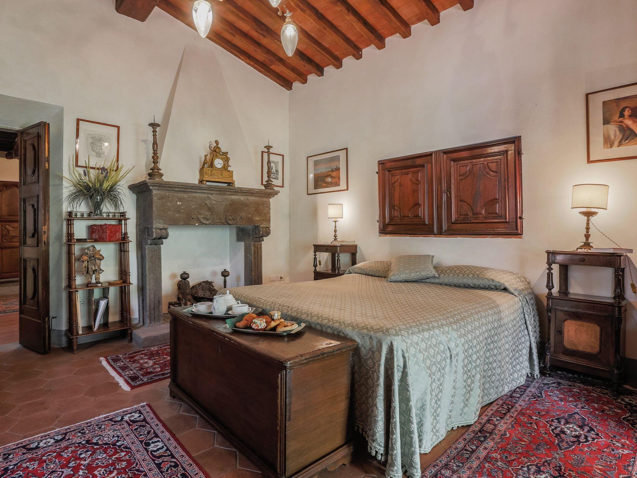 This charming stone villa with swimming pool is situated in the fertile hills of the Valdinievole, just 2 km from the famous spa town of Monsummano Terme. Originally an 18th-century farmhouse built of local stone, the villa is now surrounded by a large garden full of lush plants and beautiful Tuscan terracotta vases. In a picturesque position with a wide view of the surrounding countryside, there is an infinity pool (16 x 8 m, depth from 1.35 to 2.50 m, open from mid-April to mid-October) with a very large whirlpool area for 8 people. Under the pool, equipped with night lighting and an acoustic alarm system for the safety of our young guests, is a large changing room with 2 showers and a WC. There is also a fitness room equipped with a treadmill with digital display, a multifunctional Technogym bench, an exercise bike and a foosball table. The garden also offers several furnished areas, perfect for outdoor dining, including a relaxing stone amphitheatre, a barbecue and a children's corner with a swing and slide. Definitely an ideal place for those seeking peace and tranquillity. The 350 m² villa can accommodate up to 11 people on two floors. It is elegantly furnished with exceptional antiques tastefully collected over the years and features wood-beamed ceilings and beautiful old terracotta floors, lovingly restored by the owners. On the ground floor there is a large living-dining room (80 square metres) with a table for 14 and a magnificent 16th century fireplace (not in use), sloping ceilings with wooden beams and French windows overlooking the garden with views of the historic centre of Monsummano Alto; A further living room with satellite TV (Netflix, Bose Bluetooth acoustic speakers) and a double sofa bed and a single bed leads to the large Tuscan kitchen with fireplace (fully equipped with professional hob with 2 ovens, side-by-side refrigerator with icemaker, dishwasher, microwave, Nespresso coffee machine, American coffee machine, moka coffee maker, toaster, blender, juicer), a cast-iron stove with ovens and a French window leading to the veranda suitable for outdoor dining with a table seating 14 a double bedroom with a 17th-century fireplace (not in use) and French doors leading to a covered veranda; a bathroom with a hydro-massage shower; and a laundry room with a washing machine and dryer. From the entrance hall, a stone staircase leads to the first floor, where there is a large double bedroom (30 m²) with en-suite bathroom with Turkish bath/shower, another double bedroom and a twin bedroom (which can be converted into another double bed), both sharing a bathroom with whirlpool tub and shower with chromotherapy and aromatherapy kit. All rooms are fitted with sumptuous Persian carpets. Amenities: Wi-Fi (up to 30 MB download, up to 3 MB upload), all double beds are king-size, all windows are fitted with mosquito nets, cots, high chairs, baby bottle steriliser on request, heating and air conditioning in all rooms (heating and air conditioning consumption not included), welcome hamper with a light dinner on the evening of arrival and a continental breakfast on the first morning, housekeeping on Wednesdays (2 hours) with towel change, complimentary toiletries in all bathrooms with shower/shampoo/hand soap and body/hand cream, hairdryer in all bathrooms, wall safe, Netflix, Bose Bluetooth speakers, fire extinguisher and fire blanket, carbon monoxide detectors in kitchens, smoke detectors on each floor, first aid kit (one in the villa and one in the pool locker room), audible pool alarm system, 4 mountain bikes, charcoal and fire tablets for barbecues and private parking for up to 5 people. Car, small pets allowed on request. A personal chef, wine and local product tastings, a babysitter, a transfer to/from the airport, a grocery delivery service, a hairdresser/beautician/masseuse at home; Organisation of cookery courses, vineyard visits and wine tastings, painting lessons (on canvas or porcelain); Provision of a chauffeur and a wedding planner and party planner. Distances: nearest shops and restaurants Monsummano Terme 2 km, Montecatini Terme 5 km, San Miniato 30 km, Florence Airport 40 km, Pisa Airport 45 km.