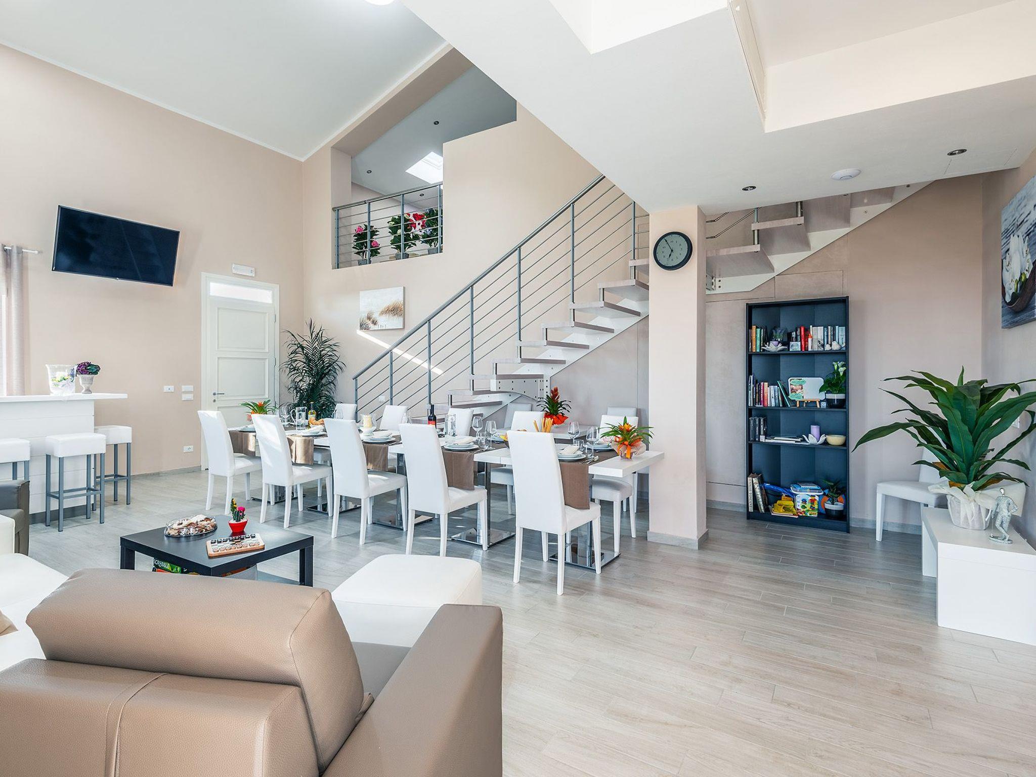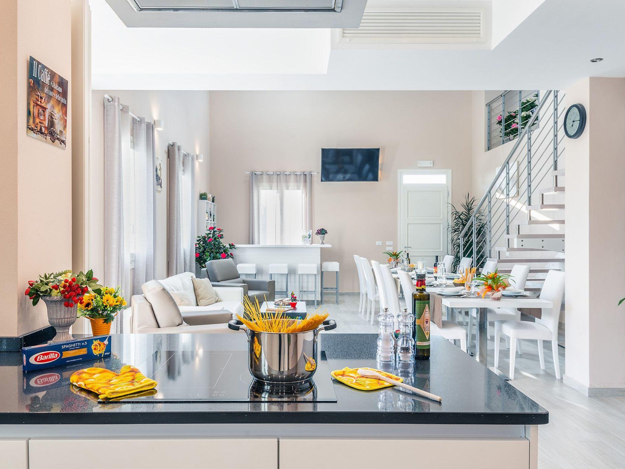 The Villa is recently built (year 2018), in modern style. It is located in the municipality of Monsummano Terme (PT), only 1 km from the main services (supermarket, pharmacy, post office, bank, bar, tobacconist, etc.). Perfect for spending a quiet holiday immersed in the Tuscan countryside, but also for those who want to visit art cities such as Florence, Lucca, Pisa, Siena, Vinci or the sea of Versilia and visit cities such as Forte dei Marmi, Viareggio,... It consists of a total of 5 rooms: 3 triple rooms and 1 double room on the first floor and 1 double room on the ground floor accessible to the disabled, each with private bathroom with shower, satellite TV, independent heating and air conditioning; all to accommodate up to 13 people (plus any cots for children to be added in the room). On the ground floor there is a kitchen for shared use, a living area with tables/chairs, sofa and armchairs, bar corner with fridge, satellite TV. From here there is access to a paved outdoor area used as a living/dining area covered by a wooden pergola, where there is also a barbecue. In the SPA area there is an indoor heated whirlpool bath (dimensions 3.80 m x 2.5 m x H 1 m) with a panoramic view of the outside, sauna (4 sq m), Turkish bath (4 sq m), 2 heated relaxation beds, 2 changing rooms with toilets and showers + 1 bathroom with access for the disabled. From here a lift takes you to the upper floor where there is a fitness/gym area with satellite TV. The Villa has independent heating and air conditioning, adjustable in every room, as well as a fresh air system. Wi-Fi is available everywhere (both inside and outside). Externally we have an infinity pool, "L" shape dimensions 7 m x 11 m + 4 m x 5.30 m equipped with sun loungers, deckchairs, garden lounge covered by a wooden pergola with curtain. The villa is surrounded on 4 sides by a private garden, all enclosed by a hedge. The paved area outside the building and the swimming pool is entirely in travertine marble stone. There is an independent entrance and ample parking space (about 10 cars) equipped with a charging station for electric vehicles.