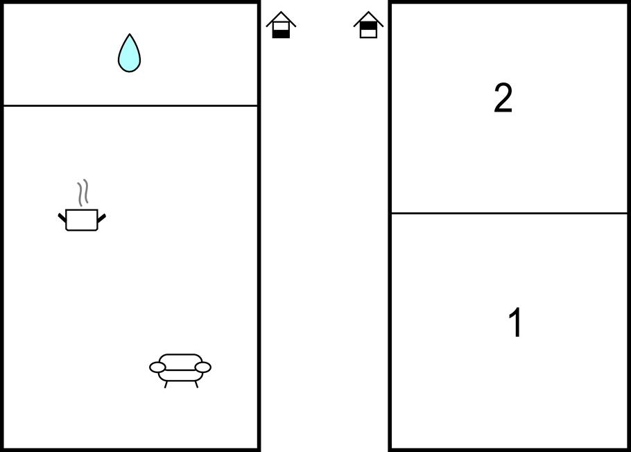Badeværelse (nr. 1) - WC. Varmt og koldt vand. Bruser