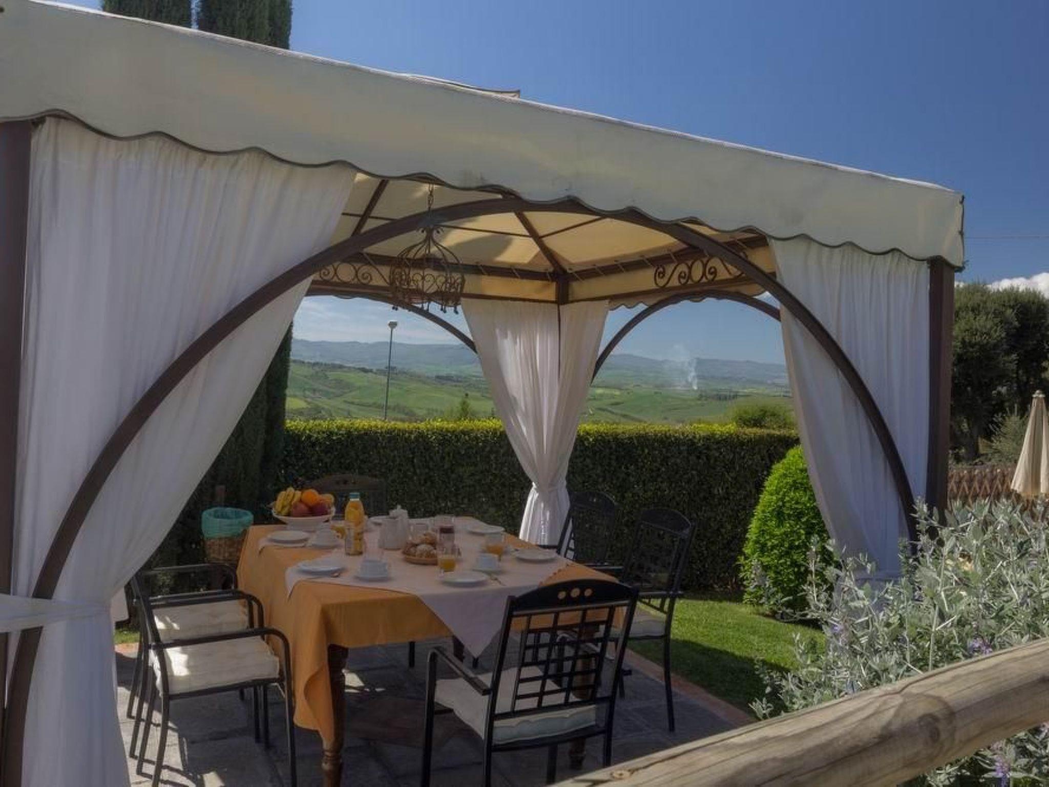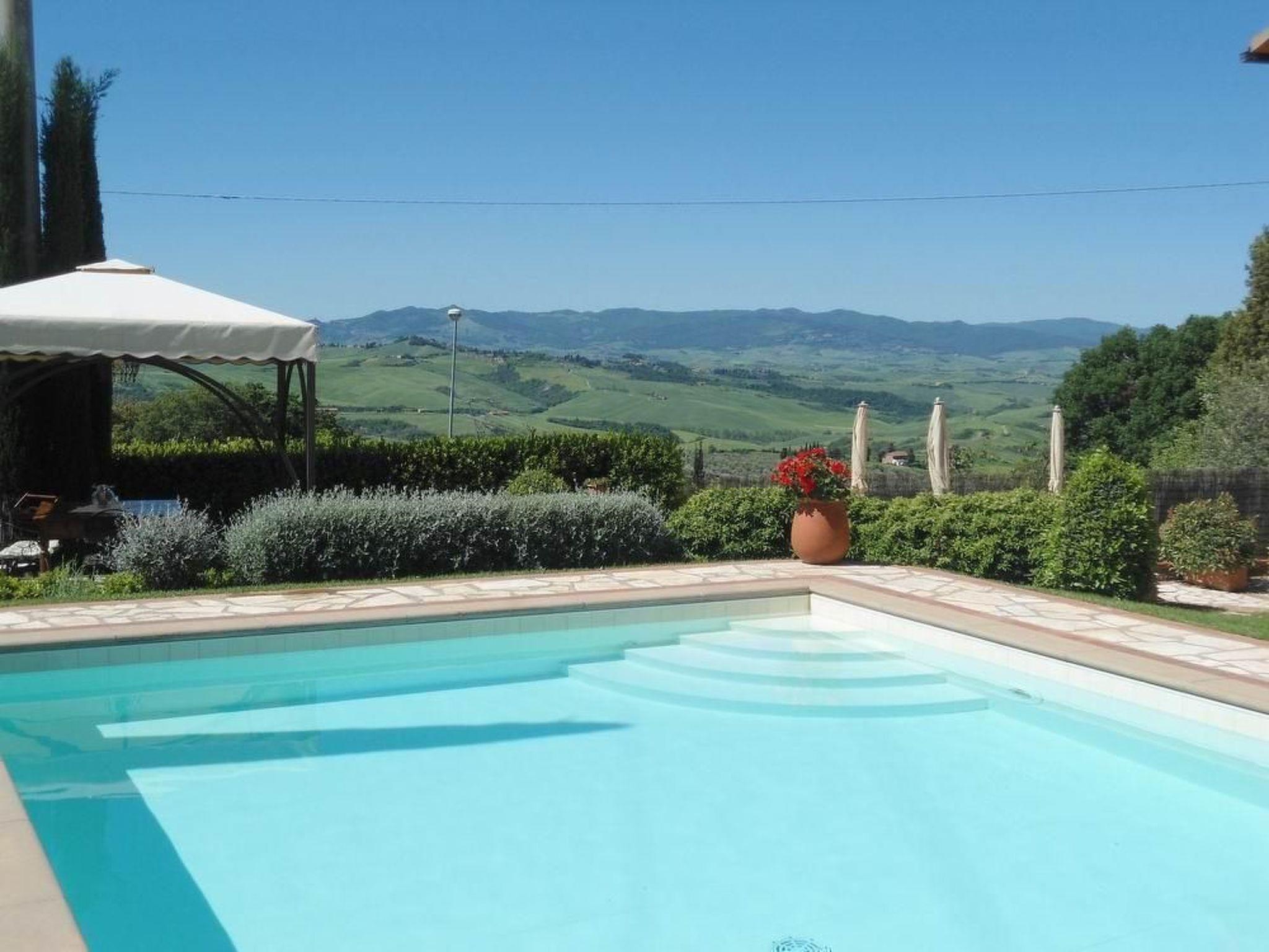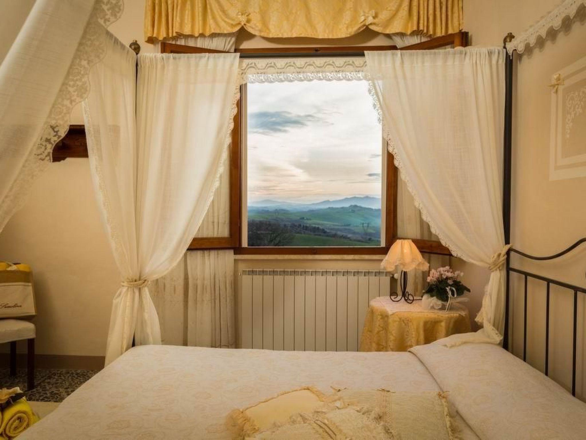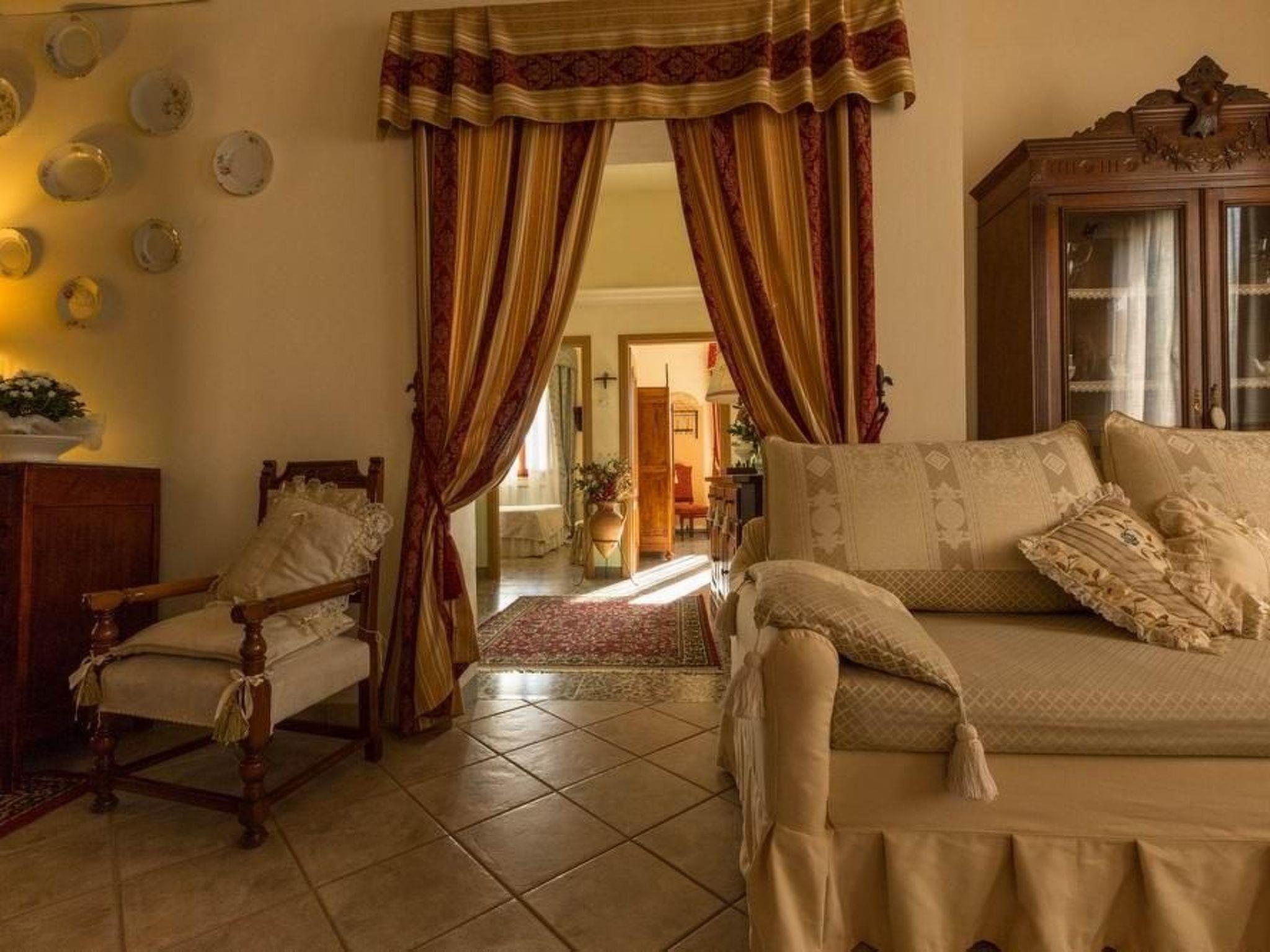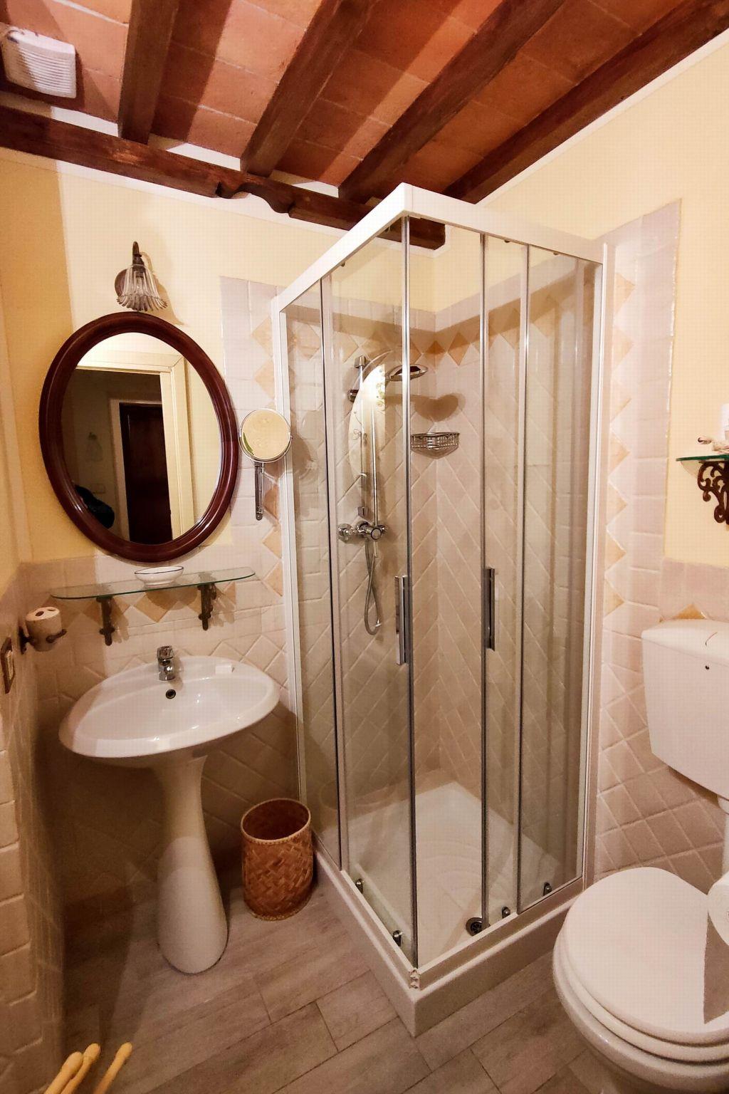 This beautiful holiday home is located at the end of the picturesque village of Iano, whose origins date back to Etruscan times, in a very peaceful area in the triangle formed by the provinces of Siena, Florence and Pisa. The house has been carefully restored and furnished in an elegant 1900s style. Very comfortable and quiet, the villa enjoys an enchanting view over the typical Tuscan landscape. The house is surrounded by olive trees and in the well-kept garden there is a swimming pool (6 m x 9 m, open from May or April to October) with a children's pool, a wrought-iron garden tent with a splendid view of Volterra, the Val d'Elsa and the beautiful hills. In the garden, wrought-iron tables and chairs will allow you to read a good book or sip a good wine in peace, a gazebo, a barbecue area and a wood-burning oven for your happy dinners. The villa, measuring approximately 225 square metres, consists of 4 bedrooms (2 doubles and 2 twins, all double), 4 bathrooms with shower and a large living room. with satellite TV and a fireplace, dining room and fully equipped kitchen (2 fridges, oven, four-burner stove, dishwasher, German coffee machine, toaster), storage room. Through its doors you have direct access to the garden, where you can enjoy the swimming pool and the terrace. Guests can also make use of the laundry room, air conditioning and Wi-Fi internet access. A gym is also within walking distance of the house (about 200 m), from where you can also reach the church, a bar-restaurant, a minimarket and a typical Tuscan restaurant. This villa is the ideal place to visit San Gimignano, Volterra (both about 20 km away) and all the other Tuscan art cities in a short time and by car (Florence, Pisa, Lucca and Siena are about 60-65 km away). Breakfast or dinner available on request.
