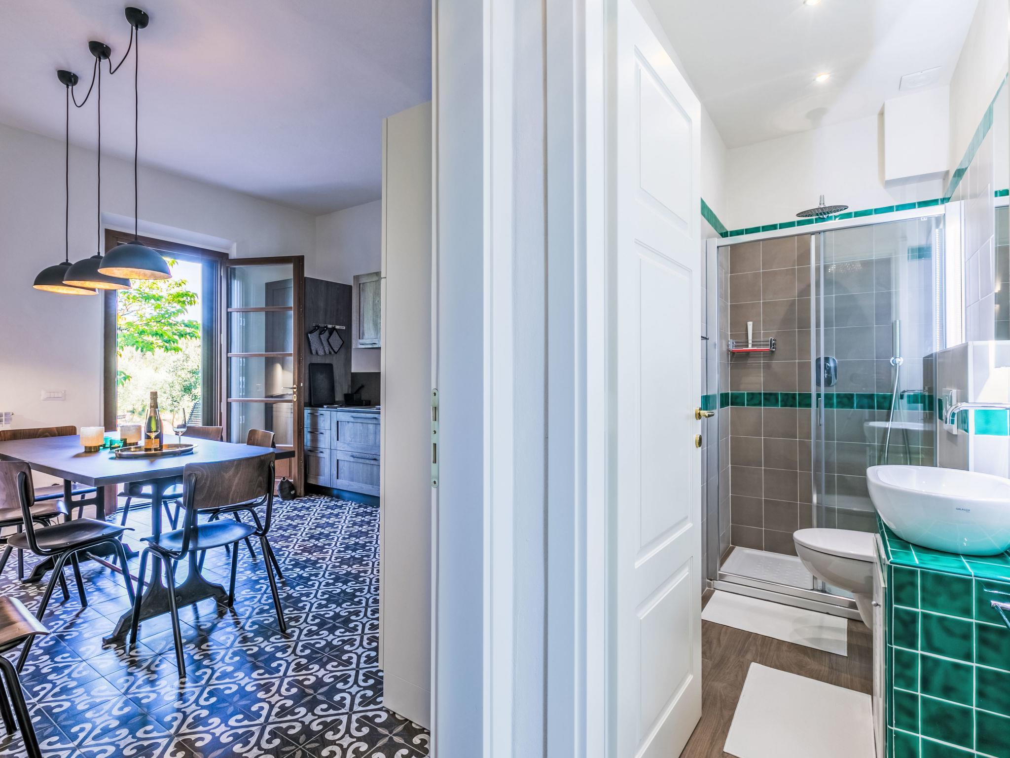 "Vecchio Forno", 4-room house 85 m2, on the ground floor. Spacious, fully renovated in 2023, very comfortable and tasteful furnishings: living/sleeping room with 1 double sofabed (160 cm), TV (flat screen). Exit to the garden. 1 double bedroom. 1 room with 2 beds (80 cm, length 190 cm). Dining room with kitchen corner. Kitchen-/living room (oven, dishwasher, Gas stove, 5 gas rings, toaster, kettle, microwave, freezer, electric coffee machine) with dining table. Exit to the garden. 2 showers/bidet/WC. Heating. 2 large terraces, patio. Terrace furniture, barbecue, deck chairs, box-room. Very beautiful panoramic view of the countryside. Facilities: washing machine, dryer, safe, iron, mosquito net, children's high chair, baby cot for up to 2 year olds, hair dryer. Internet (WiFi, free). Parking at the house. E-charging station. Please note: non-smokers only. Private entrance, smoke alarm, fire extinguisher. The pool mentioned in the description is for private use. IT048027C2IVXQM55M
