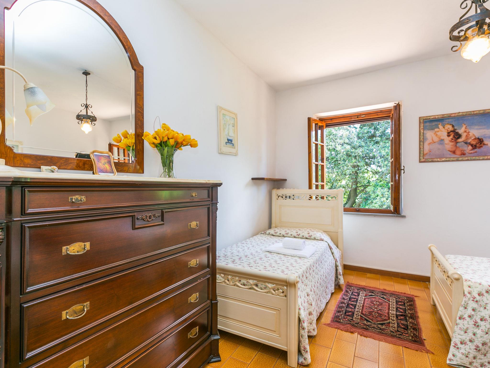 8-room house 300 m2 on 2 levels, on the ground floor. Object suitable for 11 adults + 2 children. Rustic furnishings: entrance hall. Open large living/dining room with satellite TV and CD-player. Exit to the garden, to the loggia. Open living room with open-hearth fireplace (only for decoration). 1 large double bedroom. Kitchen (6 hot plates, oven, dishwasher, microwave). Exit to the garden, to the loggia. Shower/WC, shower/bidet/WC. Upper floor: 2 double bedrooms. 1 room with 1 french bed. 1 room with 3 beds. 1 room with 1 bed and 1 double bed. Exit to the terrace. Bath/bidet/WC. Marvellous panoramic view of the countryside. Facilities: children's high chair. Internet (WiFi, extra). 50 m2 sun terrace on the top floor. One of the bathrooms on the ground floor is quite small. The bedrooms on the top floor have mosquito nets. IT048027B5AAMPOD55