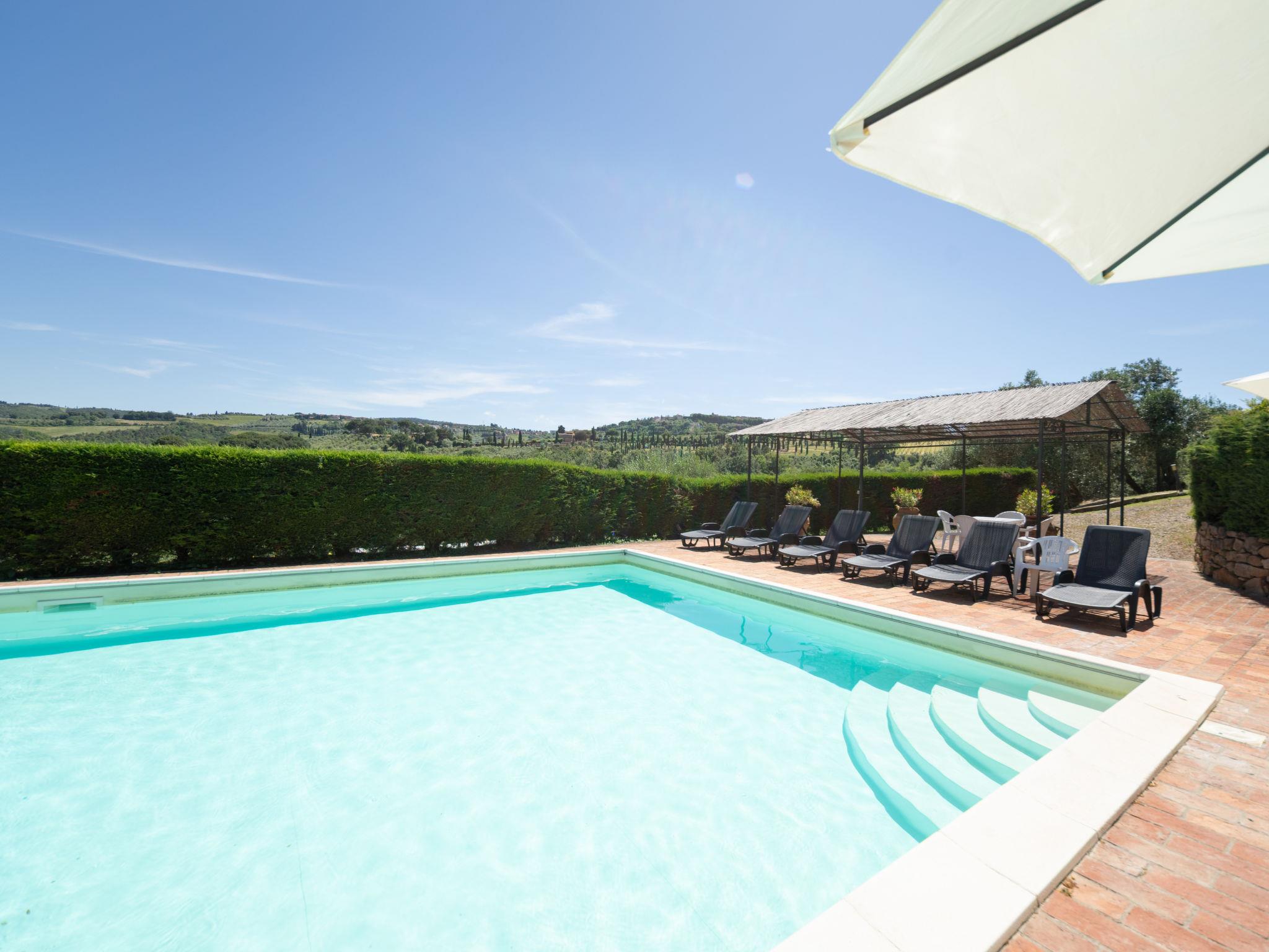 Montaione 19 km from San Gimignano: Agriturismo Casa Bacceli is divided into 7 apartments, one of which is occupied by the owner. The agroturismo is situated on a hill approx. 2 km from the centre of Montaione, in an oasis of peace and tranquility. An ideal place for relaxing holiday walking in the open air and in the Tuscan countryside - a perfect base for visiting the art cities in the region such as Volterra approx. 20 km, Siena and Lucca approx. 50 km, the Etruscan beaches approx. 60 km. Large working farm "Baccelli". 7 apartments in the property. 2 km from the centre of Montaione, 15 km from the centre of San Gimignano, 50 km from the centre of Firenze, in a secluded, quiet, sunny position on top of a hill. For shared use: garden (fenced), swimming pool (15 x 9 m, depth 120 - 200 cm, seasonal availability: 27.Apr. - 28.Sep.). Garden furniture, barbecue. In the complex: WiFi, central heating system, heating to be paid on the spot, heating available only from 01.Nov. - 07.Apr.. Motor access to the house (800 m via unmade road). Parking at the house. Shop 2 km, grocery 2 km, supermarket 2 km, bus stop 2 km, railway station "Castelfiornetino" 12 km. Golf course (18 hole) 17 km, tennis 5 km. Nearby attractions: Certaldo 19 km, San Miniato 30 km, San Casciano in Val di Pesa 40 km, Colle Val d'Elsa 40 km. WI-FI in the pool area and garden.