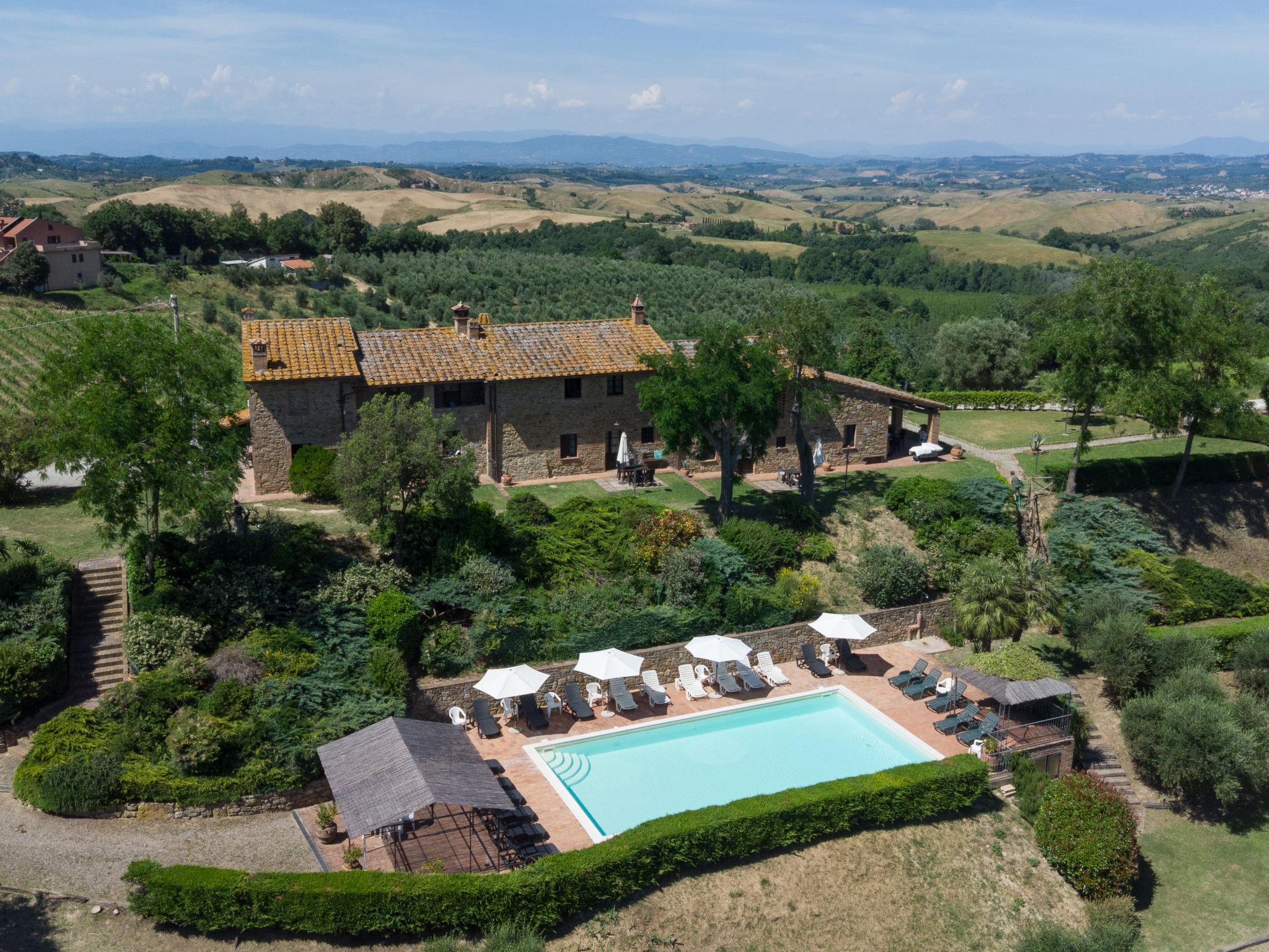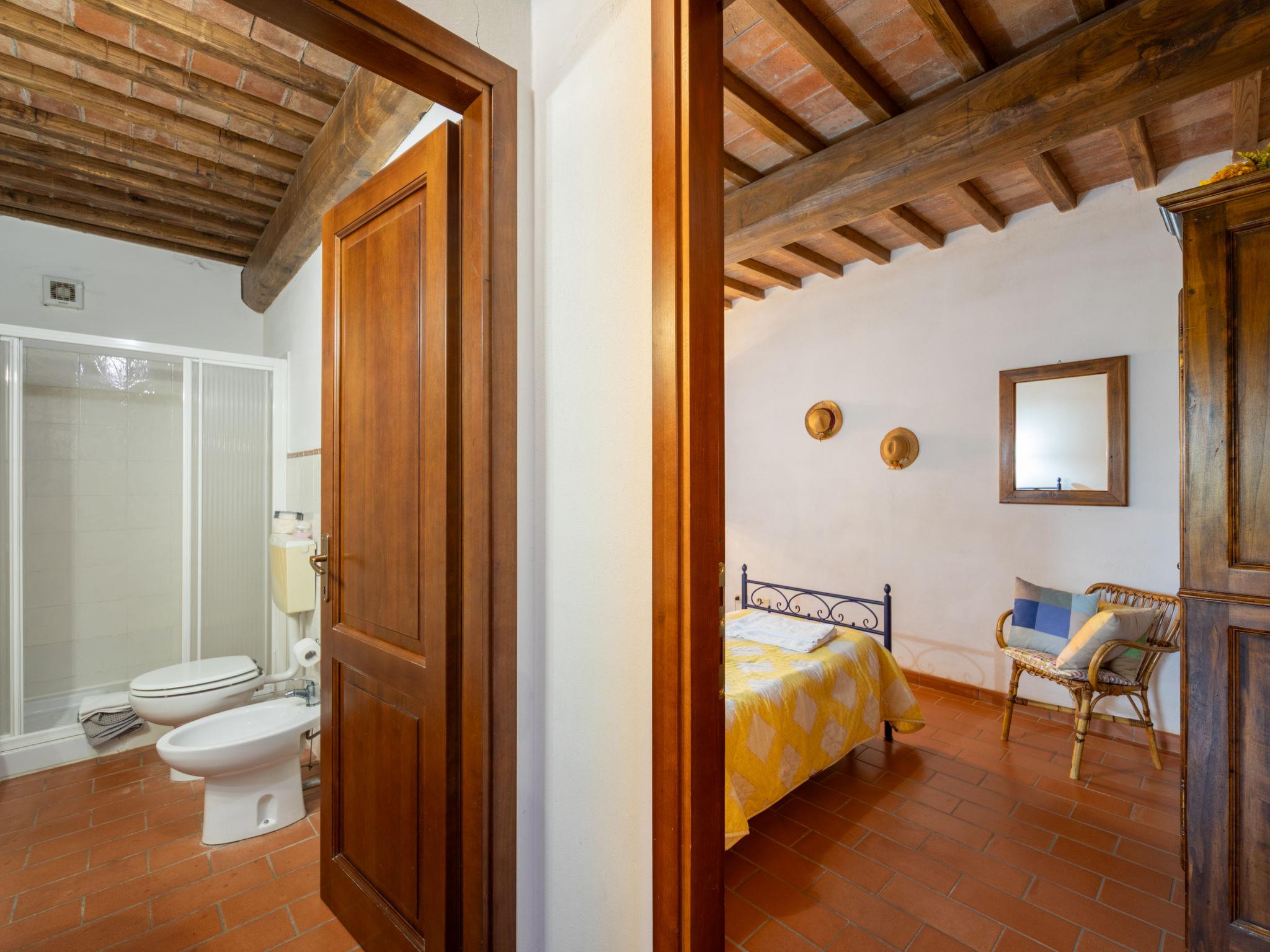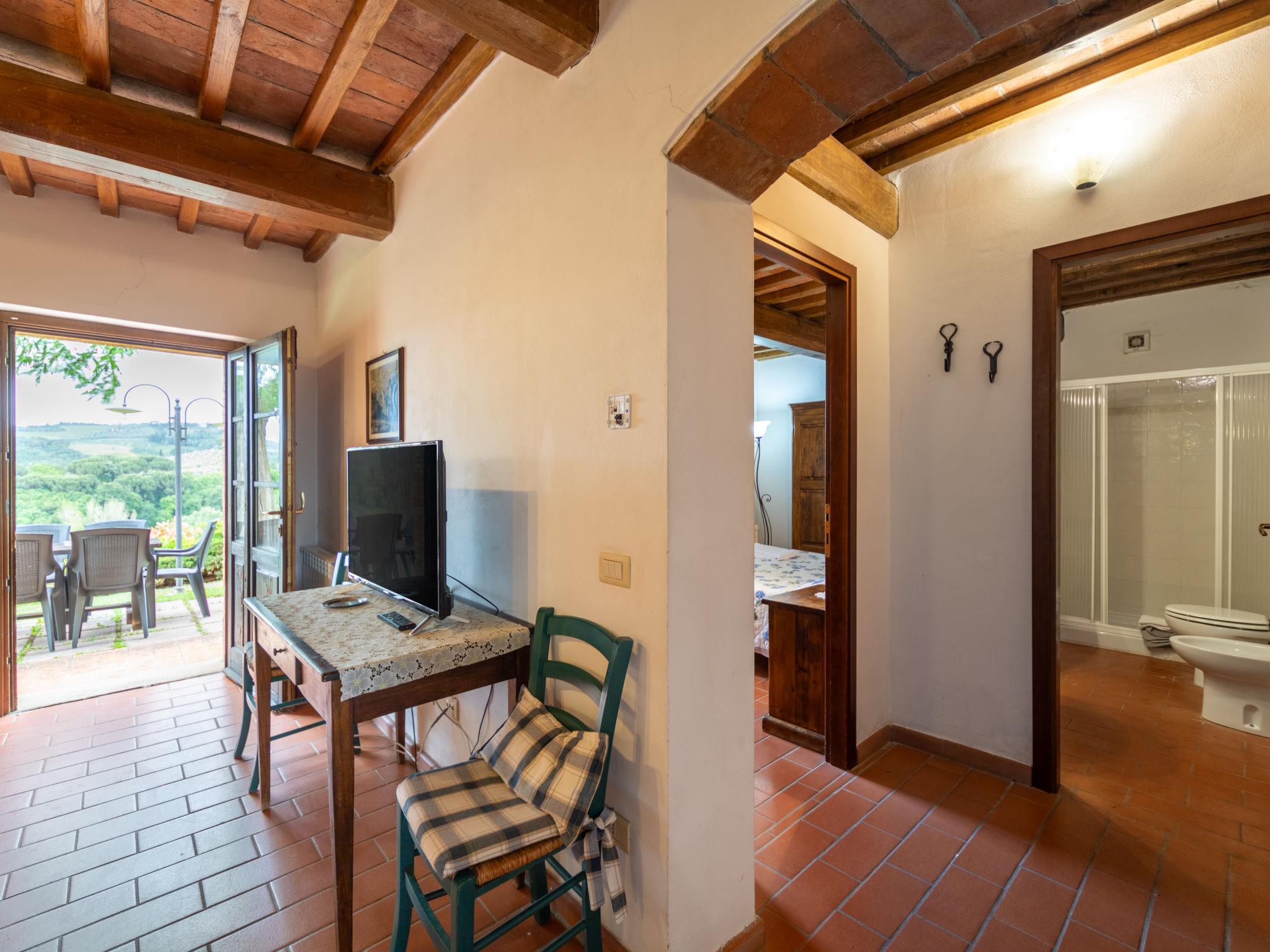 Montaione 19 km from San Gimignano: Agriturismo Casa Bacceli is divided into 7 apartments, one of which is occupied by the owner. The agroturismo is situated on a hill approx. 2 km from the centre of Montaione, in an oasis of peace and tranquility. An ideal place for relaxing holiday walking in the open air and in the Tuscan countryside - a perfect base for visiting the art cities in the region such as Volterra approx. 20 km, Siena and Lucca approx. 50 km, the Etruscan beaches approx. 60 km. Large working farm "Baccelli". 7 apartments in the property. 2 km from the centre of Montaione, 15 km from the centre of San Gimignano, 50 km from the centre of Firenze, in a secluded, quiet, sunny position on top of a hill. For shared use: garden (fenced), swimming pool (15 x 9 m, depth 120 - 200 cm, seasonal availability: 27.Apr. - 28.Sep.). Garden furniture, barbecue. In the complex: WiFi, central heating system, heating to be paid on the spot, heating available only from 01.Nov. - 07.Apr.. Motor access to the house (800 m via unmade road). Parking at the house. Shop 2 km, grocery 2 km, supermarket 2 km, bus stop 2 km, railway station "Castelfiornetino" 12 km. Golf course (18 hole) 17 km, tennis 5 km. Nearby attractions: Certaldo 19 km, San Miniato 30 km, San Casciano in Val di Pesa 40 km, Colle Val d'Elsa 40 km. WI-FI in the pool area and garden.