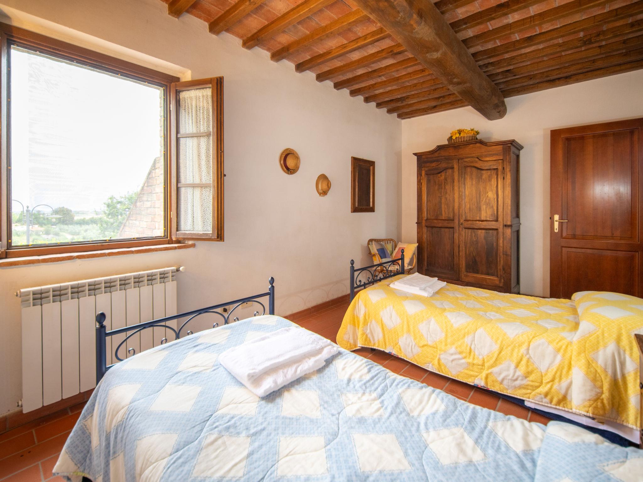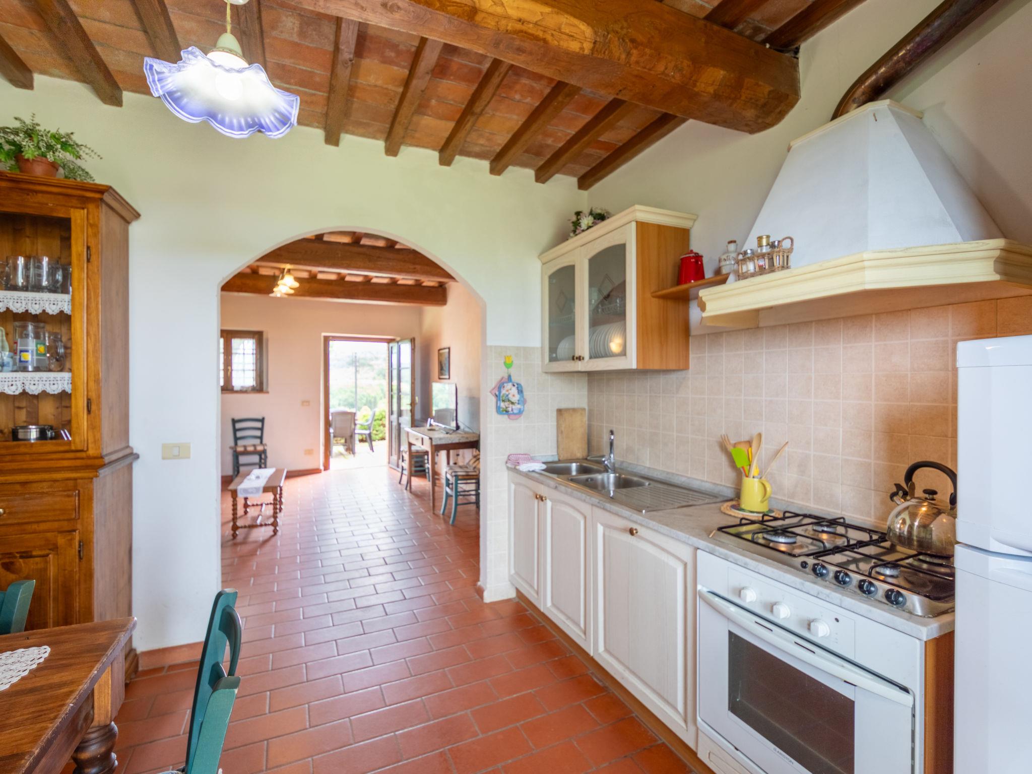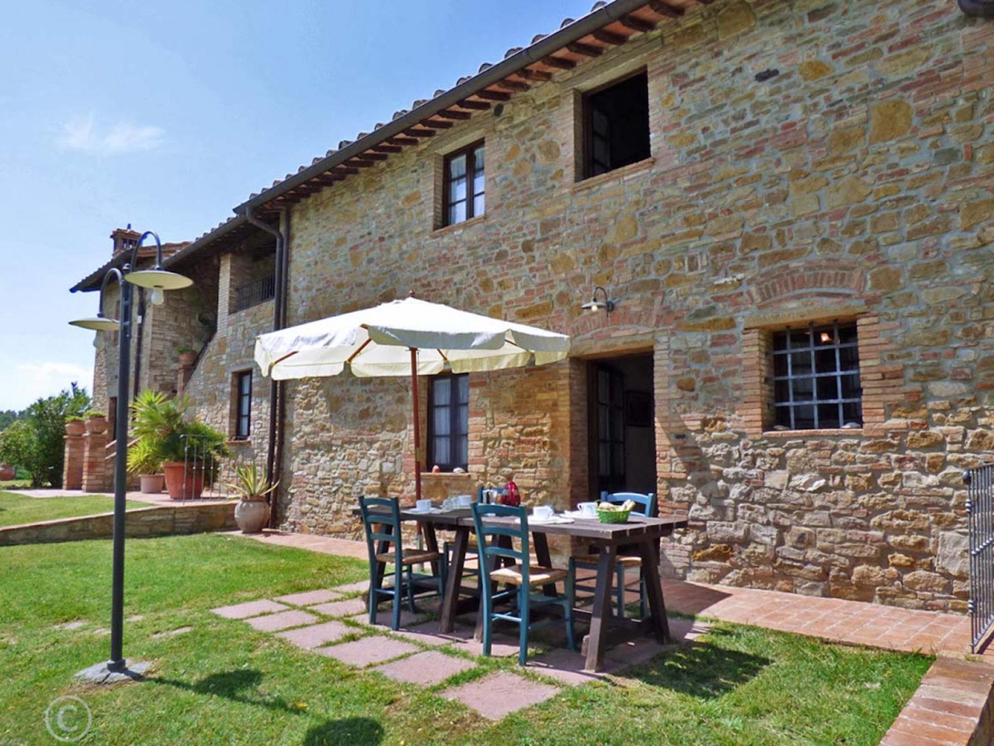 Montaione 19 km from San Gimignano: Agriturismo Casa Bacceli is divided into 7 apartments, one of which is occupied by the owner. The agroturismo is situated on a hill approx. 2 km from the centre of Montaione, in an oasis of peace and tranquility. An ideal place for relaxing holiday walking in the open air and in the Tuscan countryside - a perfect base for visiting the art cities in the region such as Volterra approx. 20 km, Siena and Lucca approx. 50 km, the Etruscan beaches approx. 60 km. Large working farm "Baccelli". 7 apartments in the property. 2 km from the centre of Montaione, 15 km from the centre of San Gimignano, 50 km from the centre of Firenze, in a secluded, quiet, sunny position on top of a hill. For shared use: garden (fenced), swimming pool (15 x 9 m, depth 120 - 200 cm, seasonal availability: 27.Apr. - 28.Sep.). Garden furniture, barbecue. In the complex: WiFi, central heating system, heating to be paid on the spot, heating available only from 01.Nov. - 07.Apr.. Motor access to the house (800 m via unmade road). Parking at the house. Shop 2 km, grocery 2 km, supermarket 2 km, bus stop 2 km, railway station "Castelfiornetino" 12 km. Golf course (18 hole) 17 km, tennis 5 km. Nearby attractions: Certaldo 19 km, San Miniato 30 km, San Casciano in Val di Pesa 40 km, Colle Val d'Elsa 40 km. WI-FI in the pool area and garden.