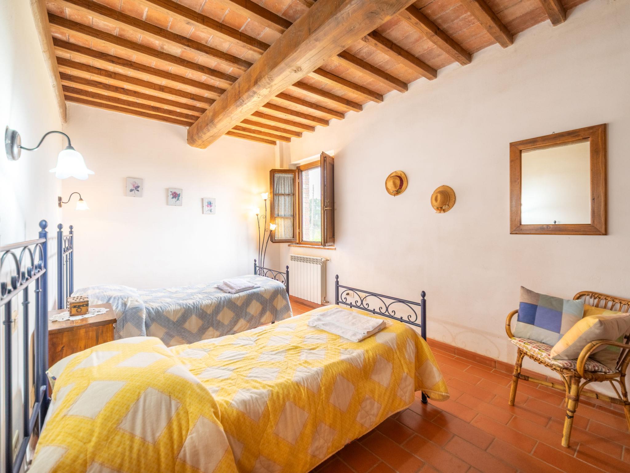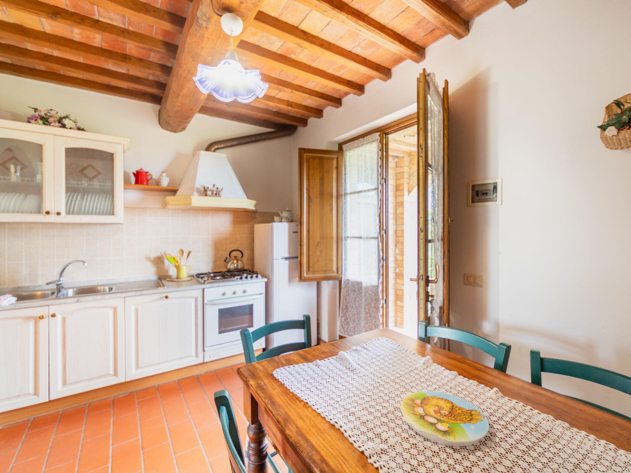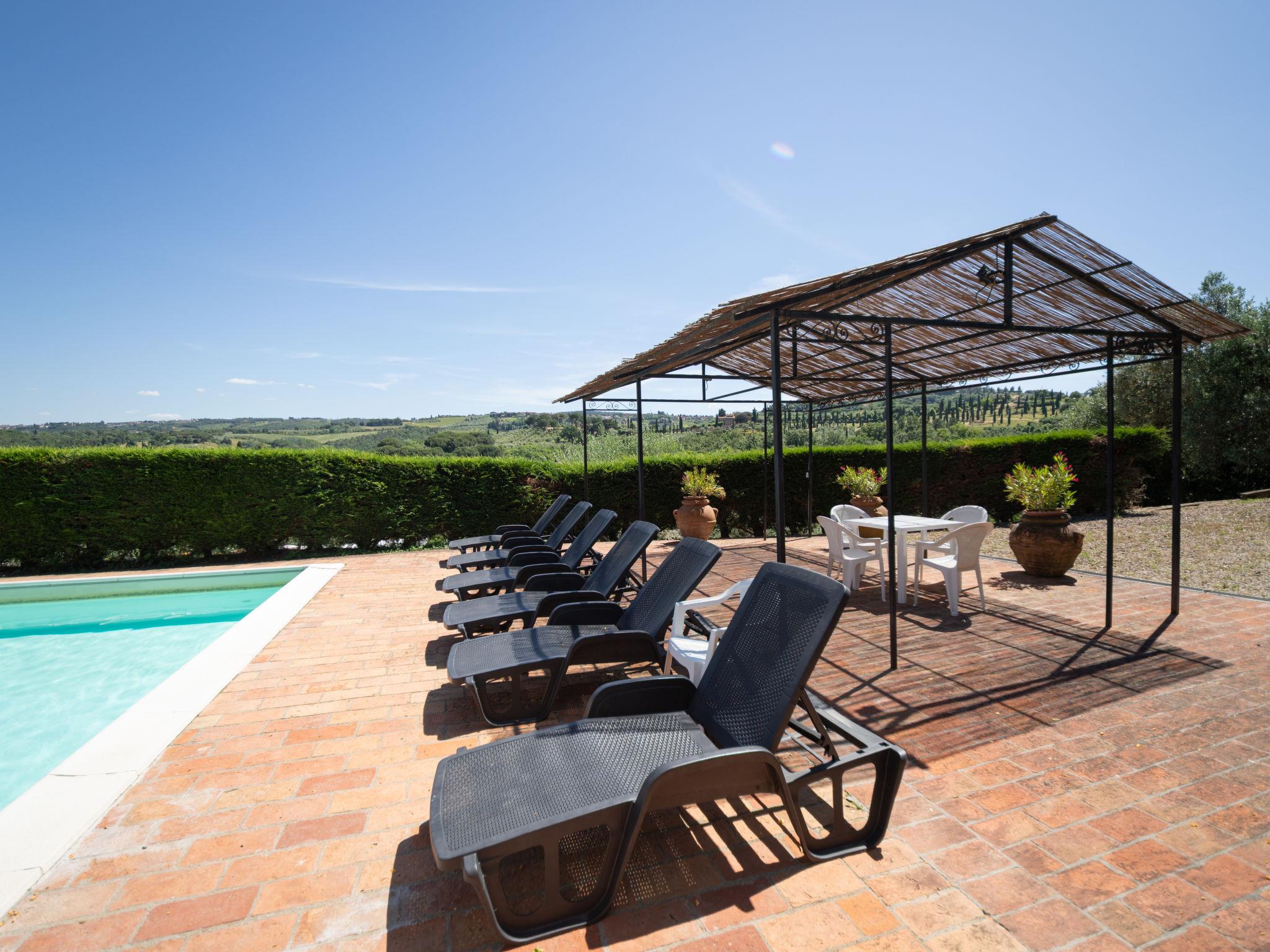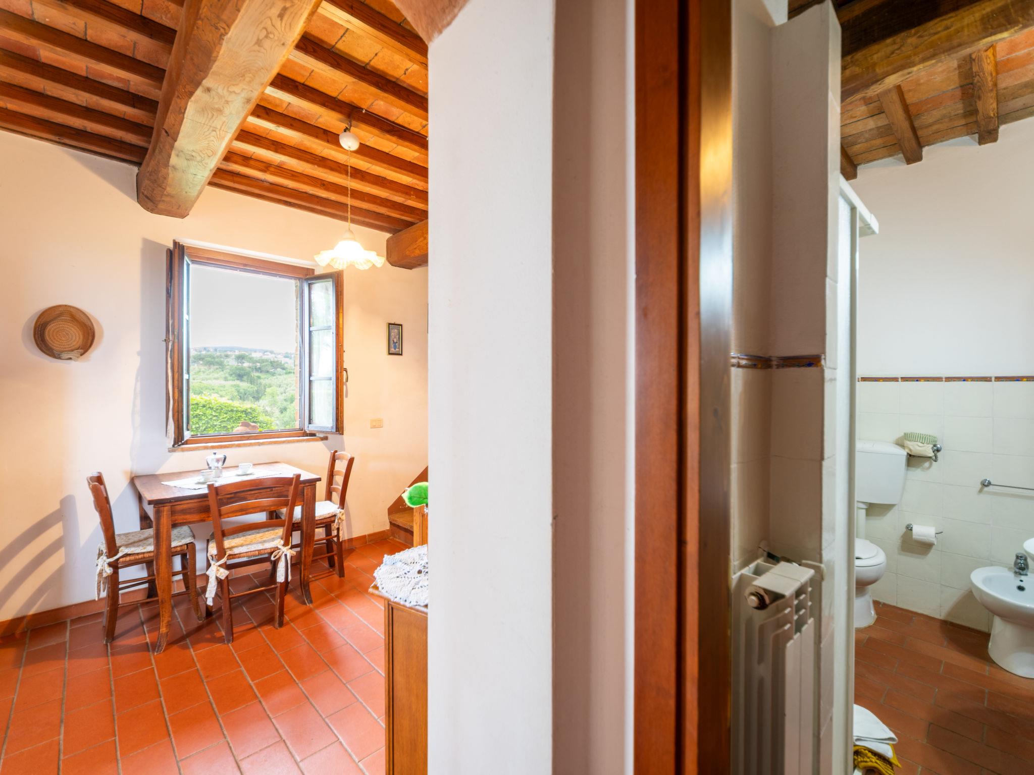 Casa Baccelli, an old farmhouse divided into eight apartments, one of which is inhabited by the owners, is proposed by us as an independent house. The seven apartments on the market communicate with each other only from the outside and each of them has its own kitchenette. Large working farm "Baccelli". 7 apartments in the property. 2 km from the centre of Montaione, 15 km from the centre of San Gimignano, 50 km from the centre of Firenze, in a secluded, quiet, sunny position on top of a hill, in the countryside. For shared use: garden (fenced). Private: swimming pool (15 x 9 m, depth 120 - 200 cm, seasonal availability: 27.Apr. - 28.Sep.). Outdoor shower, garden furniture, barbecue. In the complex: WiFi, heating to be paid on the spot, heating available only from 01.Nov. - 07.Apr.. Motor access to the house (800 m via unmade road). Parking at the house. Shop 2 km, grocery 2 km, supermarket 2 km, bus stop 2 km, railway station "Castelfiornetino" 12 km. Golf course (18 hole) 17 km, tennis 5 km. Nearby attractions: Certaldo 19 km, San Miniato 30 km, San Casciano in Val di Pesa 40 km, Colle Val d'Elsa 40 km. Please note: the owner lives on the same property.