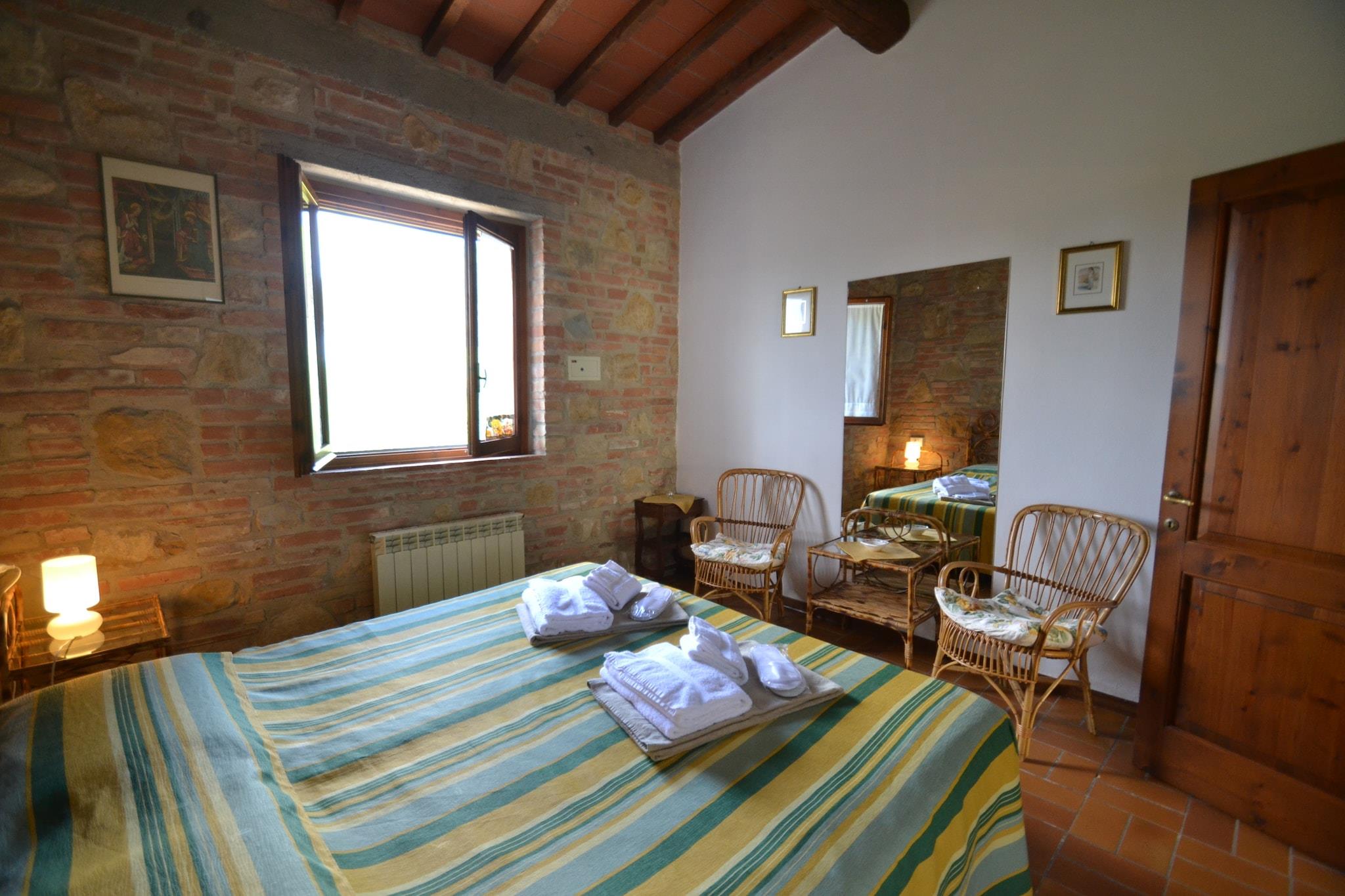 Denne rummelige delte villa på Via Cerroni 7 ligger i de naturskønne bakker i Montaione og er ideel til familier eller grupper. Første sal byder på to åbne køkkener, begge med ovn, mikrobølgeovn, opvaskemaskine, køleskab med fryser, kaffemaskine, kogende vandhane og spisebord. Der er også to stuer/spisestuer med aircondition, to badeværelser og mezzaniner med sovesofaer og tv'er. To verandaer indbyder til udendørs spisning. Ekstra faciliteter inkluderer en brændeovn, carport, udendørs bruser, fælles vaskemaskine, oplader til elbil og kæledyrsvenlig parkering. Den store indhegnede have har en grill, en 12×6 m pool (april-okt), bordtennis, bordfodbold, legeredskaber og et fodboldmål, perfekt til sjov og afslapning. Luftige opholdsstuer, to køkkener og skyggefulde verandaer understøtter en komfortabel, fælles livsstil. Mezzaniner tilbyder ekstra soveplads, og gennemtænkte detaljer gør sammenkomster nemme og behagelige. Kun 6 km væk ligger den naturskønne 27-hullers Castelfalfi Golfklub. Besøg Sacro Monte di San Vivaldo fra det 16. århundrede, eller udforsk Montaiones middelalderlige centrum med San Regolo-kirken. Nyd toscansk mad på Il Rosmarino eller La Tabaccaia. Denne villa blander tradition, komfort og plads til uforglemmelige gruppeophold. Trøffelfestivalen finder sted hvert år den sidste weekend i oktober.