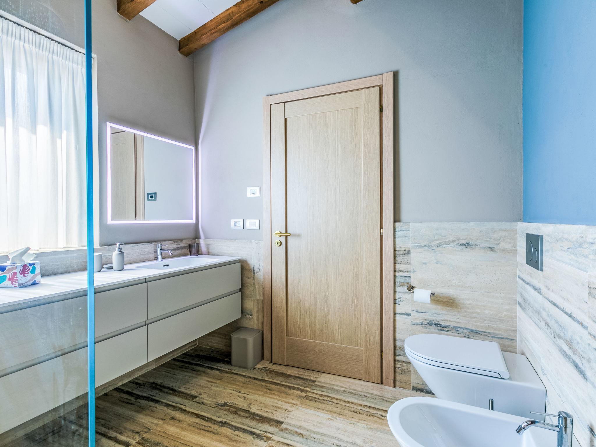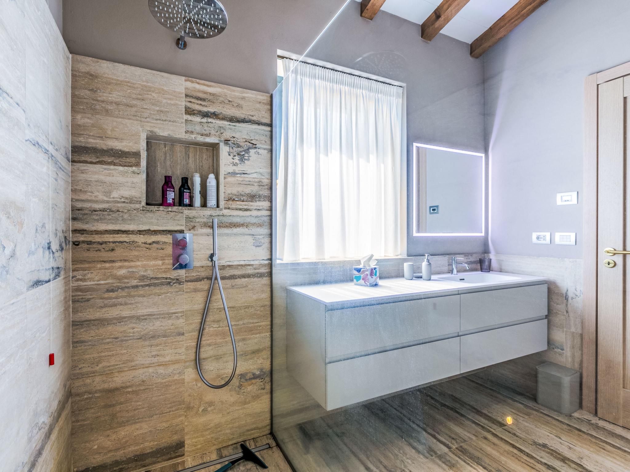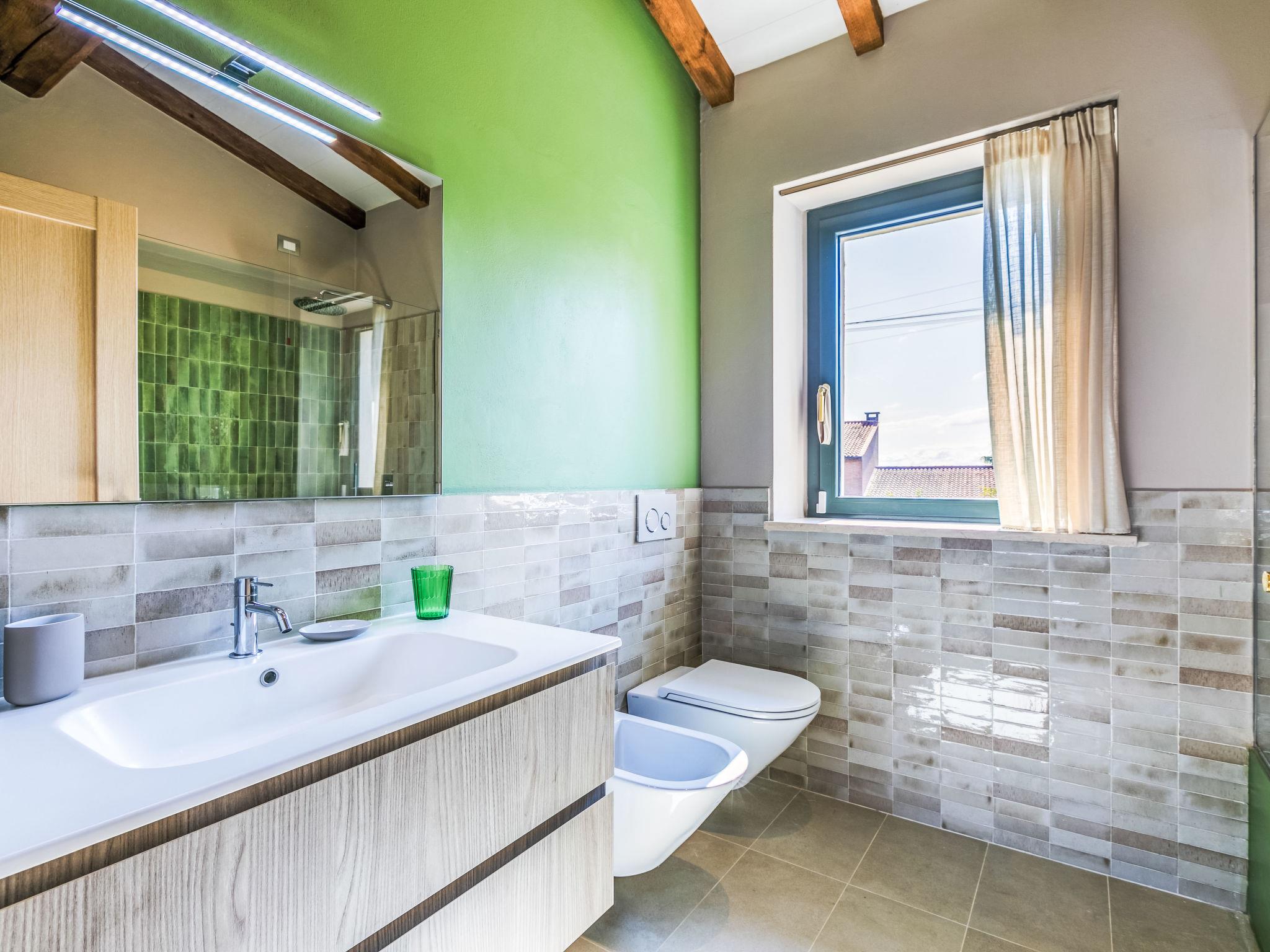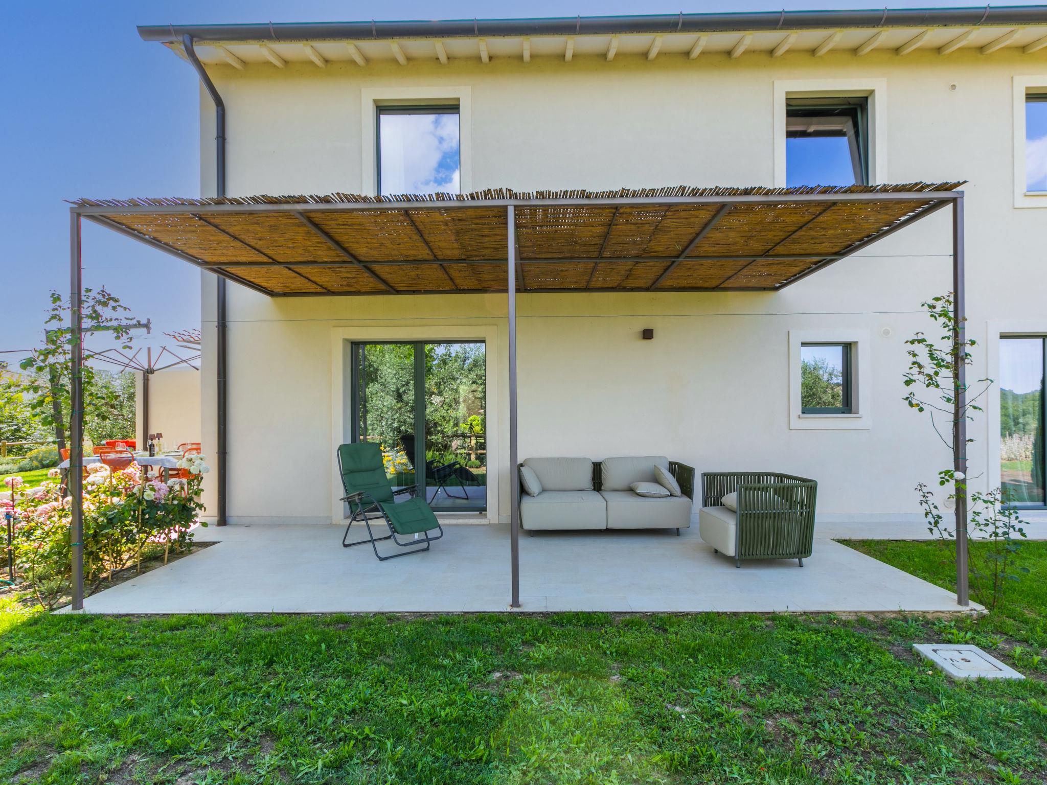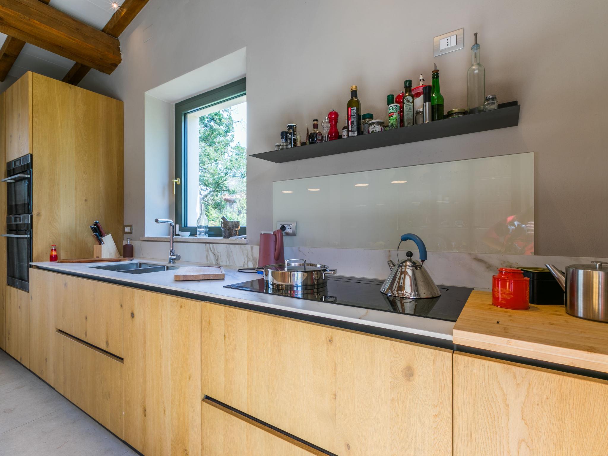 "Villa Montisi", 4-room villa 170 m2 on 2 levels. Spacious and bright, very tasteful and stylish furnishings: open large living/dining room with panoramic window with dining table and TV (flat screen), air conditioning. Exit to the garden, to the terrace. 1 room with panoramic window with 2 beds (80 cm, length 200 cm), air conditioning. Large, open kitchen (oven, dishwasher, 5 induction hot plates, toaster, kettle, microwave, electric coffee machine, Capsules for coffee machine (Nespresso) extra) with air conditioning. Exit to the patio. Bath/WC. Upper floor: open small, Studio. 1 double bedroom with panoramic window Dressing room with shower/bidet/WC and air conditioning. 1 large double bedroom with panoramic window with shower/bidet/WC and air conditioning. Air-conditioning, floor heating. Natural stone floors. 2 terraces, patio, garden, lawn. Terrace furniture, barbecue, deck chairs. Very beautiful panoramic view of the resort. Facilities: washing machine, dryer, iron, children's high chair, baby cot for up to 2 year olds, hair dryer. Internet (WiFi, free). Parking at the house. Please note: non-smokers only. Smoke alarm, fire extinguisher. The pool mentioned in the description is for private use. IT052037C2OY62BVYD