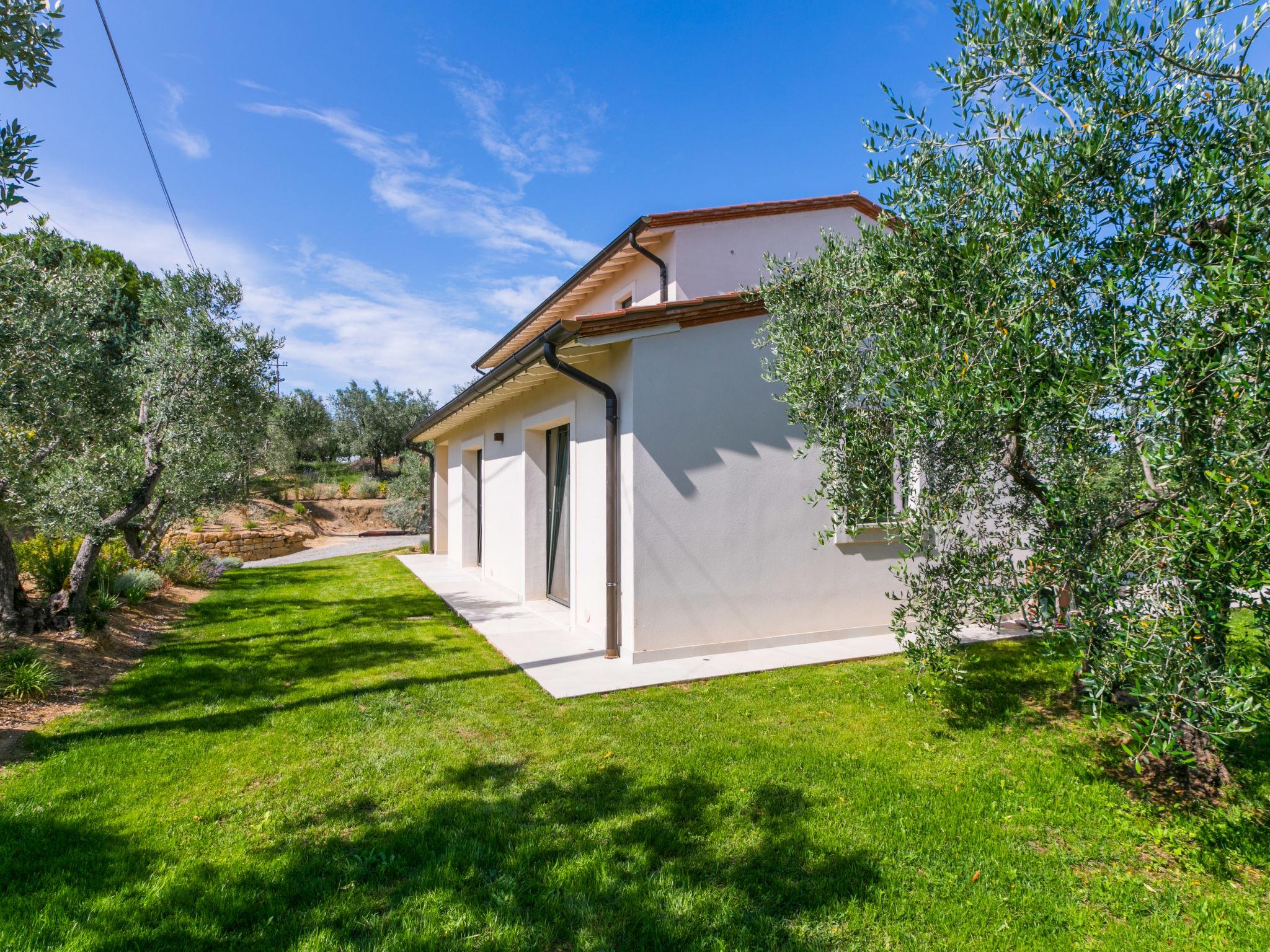 Montisi 15 km from Montalcino: Modern, beautiful house "Villa Montisi", 2 storeys, built in 2020, surrounded by trees and fields. 500 m from the centre of Montisi, in a sunny, elevated position in the residential district, in the countryside. Private: beautiful garden with flowers and trees, swimming pool (4 x 12 m, depth 120 - 150 cm, seasonal availability: 01.May. - 30.Sep.) with internal staircase. Outdoor shower, garden furniture, barbecue, pool maintenance by the owner/gardener. In the house: air conditioning, washing machine, tumble dryer. Storeroom available. Parking at the house on the premises. Shop, grocery 500 m, supermarket 10 km, restaurant 500 m, 5 minute walk to the centre, bus stop "Montisi" 500 m. Nearby attractions: Montalcino 23 km, Pienza 30 km, Montapulciano 25 km, Siena 50 km. Please note: baby equipment (included). Groups of teenagers on request only.