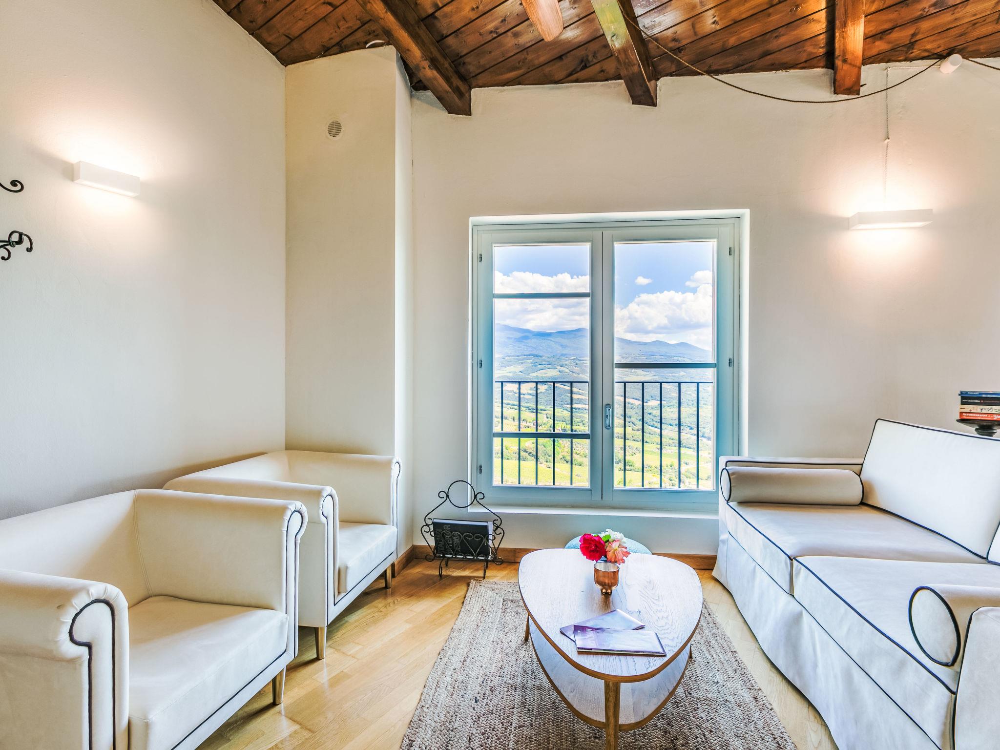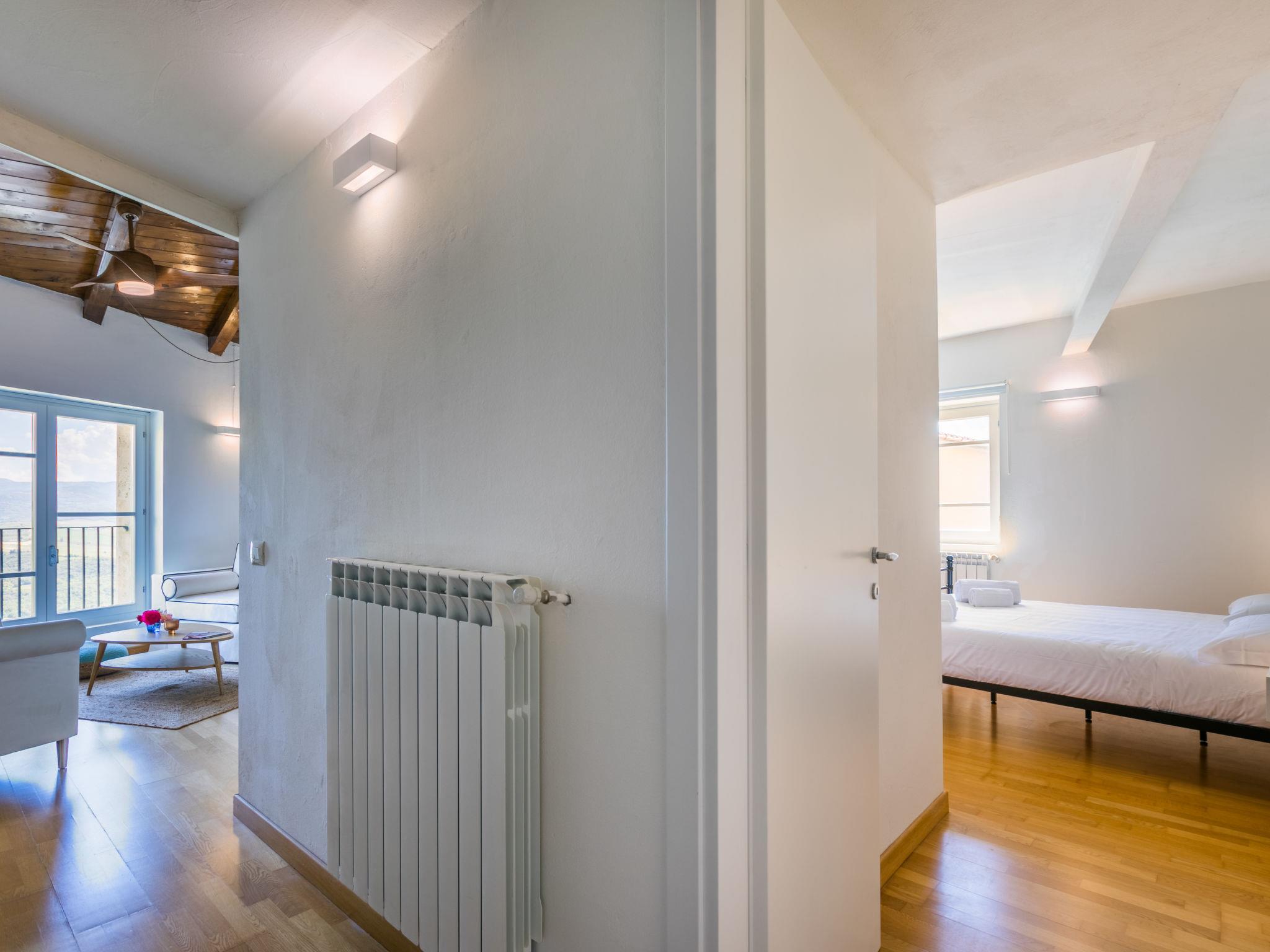 "Casa del Sole", 4-room apartment 98 m2 on 1st floor. Bright, beautiful and tasteful furnishings: living/dining room with panoramic window. 3 double bedrooms, each room with shower/bidet/WC. Open kitchen (oven, dishwasher, 4 induction hot plates, toaster, kettle, microwave, electric coffee machine) with dining table. Gas heating. Natural stone floors. Marvellous panoramic view of the countryside. Facilities: iron, children's high chair, baby cot for up to 2 year olds, hair dryer. Internet (WiFi, free). Parking, garage on the property (1 car) at the house. Please note: non-smokers only. Maximum 1 pet/ dog allowed. Private entrance. IT052037B4IOL5MVE7