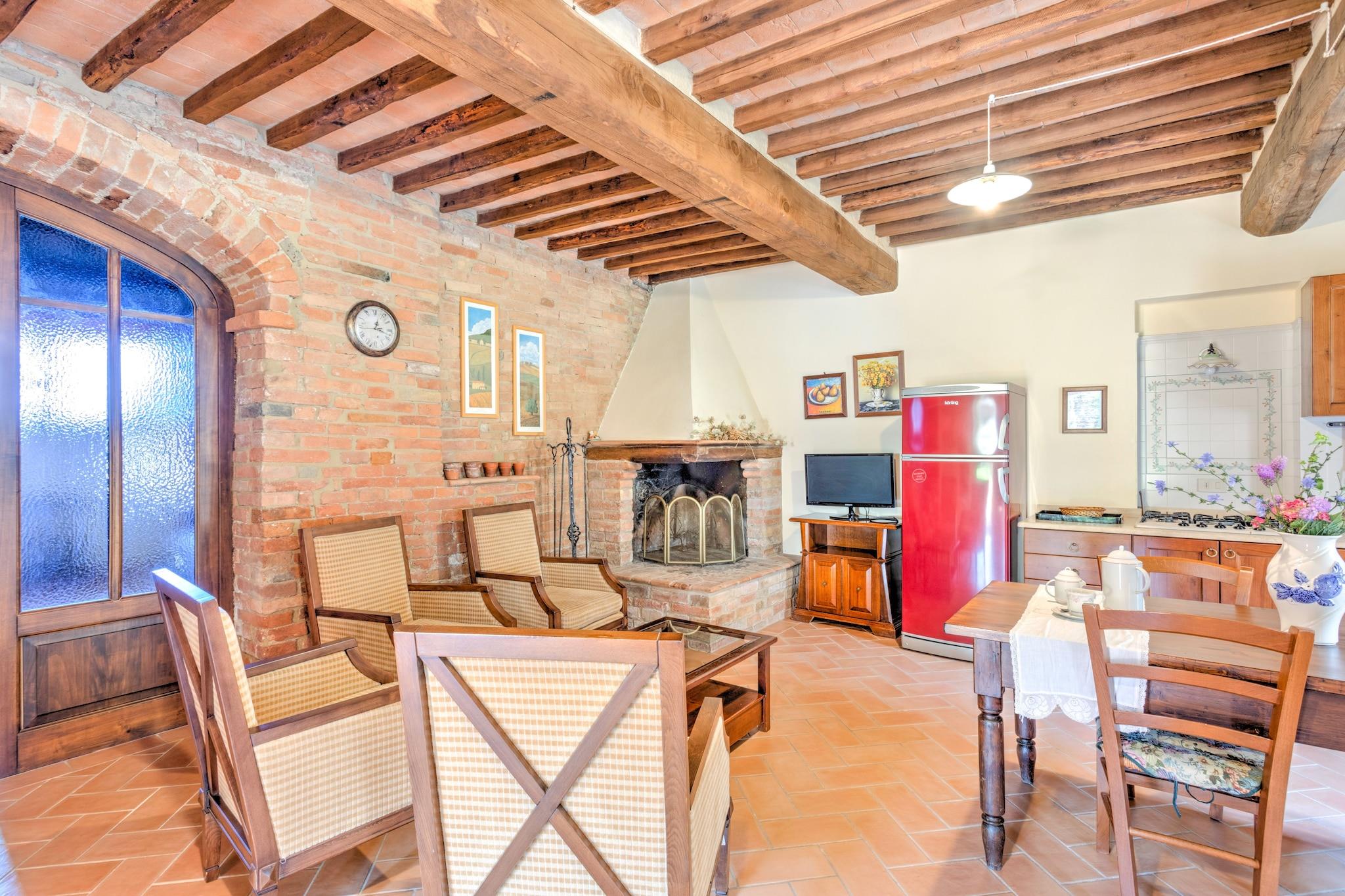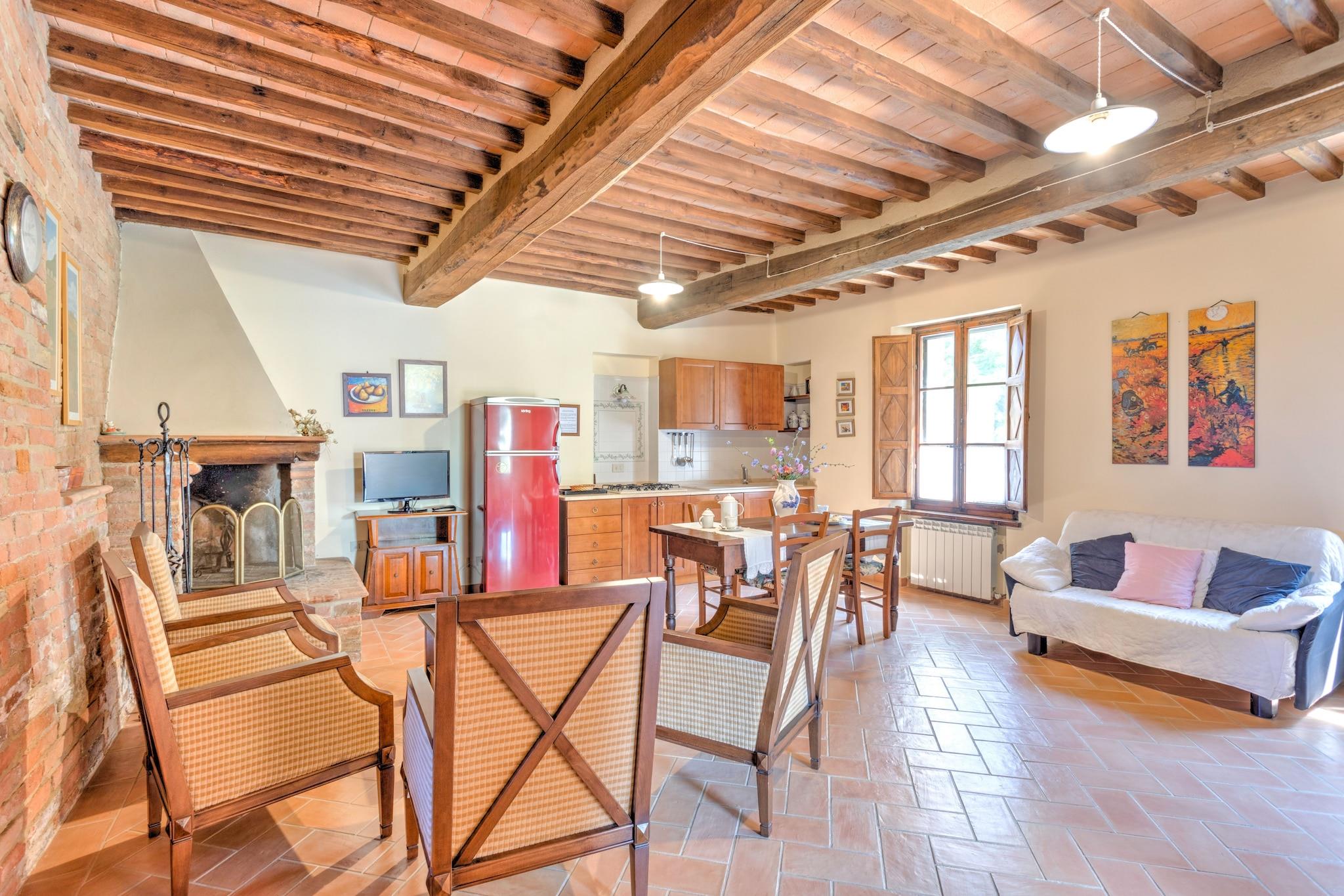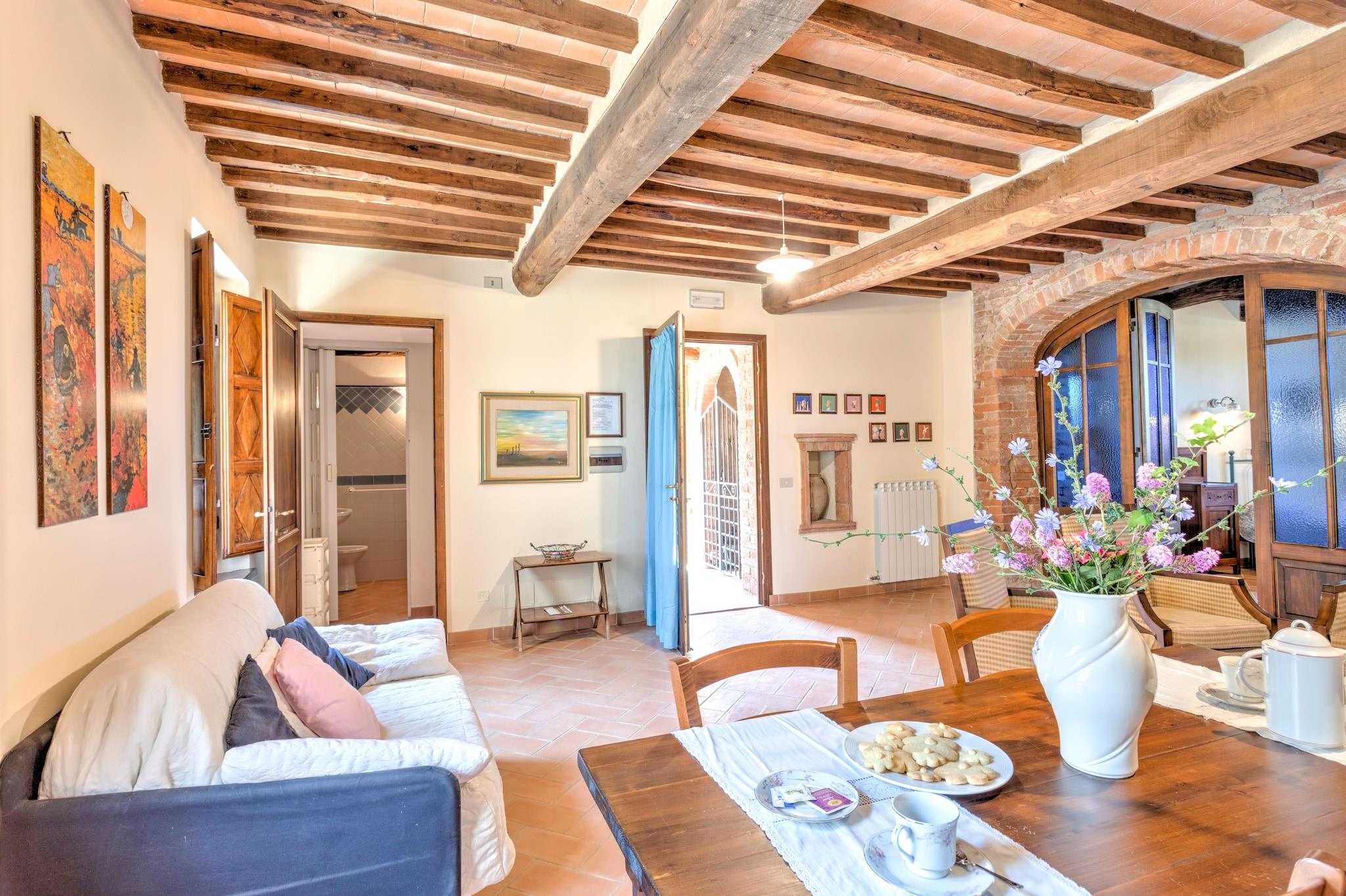 Et autentisk bondegård med i alt syv lejligheder i hjertet af Kreta Senesi og nær Montalcino, et område kendt for sin hvide trøffel og pecorinoost. La Verbena-lejligheden kan prale af charmerende toscanske møbler, og i stuen er der en typisk åben pejs.Det er en ideel base for folk, der ønsker at tilbringe deres ferie i en afslappet atmosfære tæt på de smukke byer Pienza, Montalcino, Montepulciano og Siena. Ejerne har oprettet dette bondegård med stor omhu med ferielejligheder, en restaurant med toscanske og sardinske specialiteter og en fåregård. Det er vidunderligt at se på, hvordan gedeost, Pecorino produceres, og i den nærliggende butik kan du købe ost.