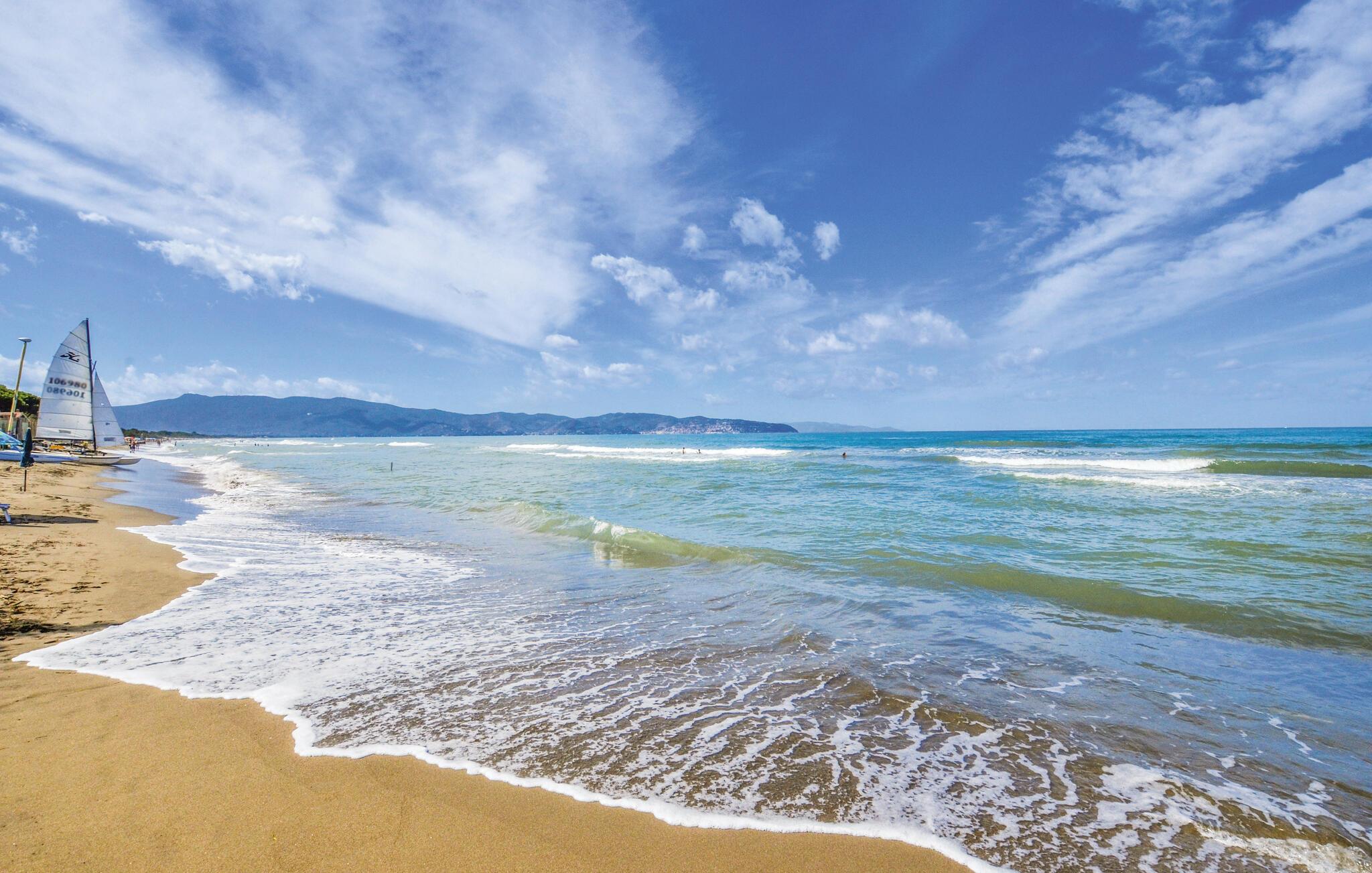Tag lange gåture gennem middelhavslandskabet og udforsk de omkringliggende bakker og naturreservater. Blot et par kilometer væk ligger det etruskiske arkæologiske område Vulci, hvor man kan besøge imponerende ruiner og et museum i det middelalderlige Castello dell’Abbadia. Hvis I elsker havet, kan I hurtigt nå de brede sandstrande i Marina di Montalto. Her kan I svømme i det klare vand, nyde solen eller slentre langs kysten.