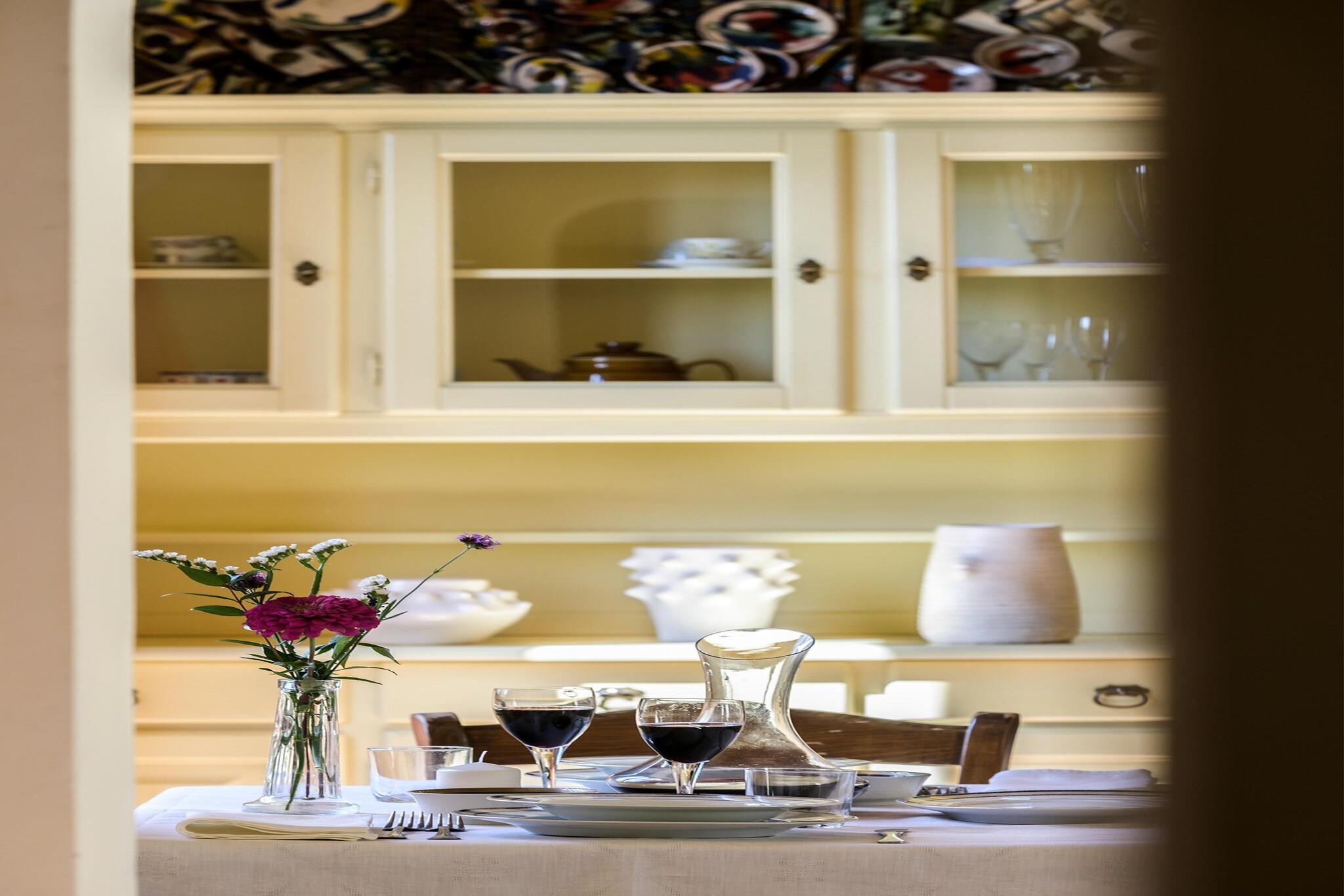 Stueetage: (Stue(dobbeltsovesofa, Fjernsyn(parabol)), åbent køkken(elkedel, brødrister, espressomaskine, mikrobølgeovn, opvaskemaskine , barnestol, ), soveværelse(dobbeltseng), badeværelse(bruser, håndvask, toilet, bidet, føntørrer)) spisebord, fryser(deles med andre gæster), vaskemaskine, varme, have, havemøbler, solstole, grill, parkering, liggestole, swimmingpool(deles med andre gæster, opened from May upto and including Sep), strygebræt, strygejern, havepejs