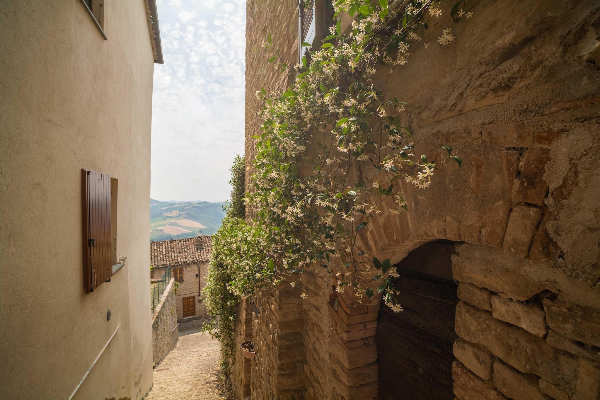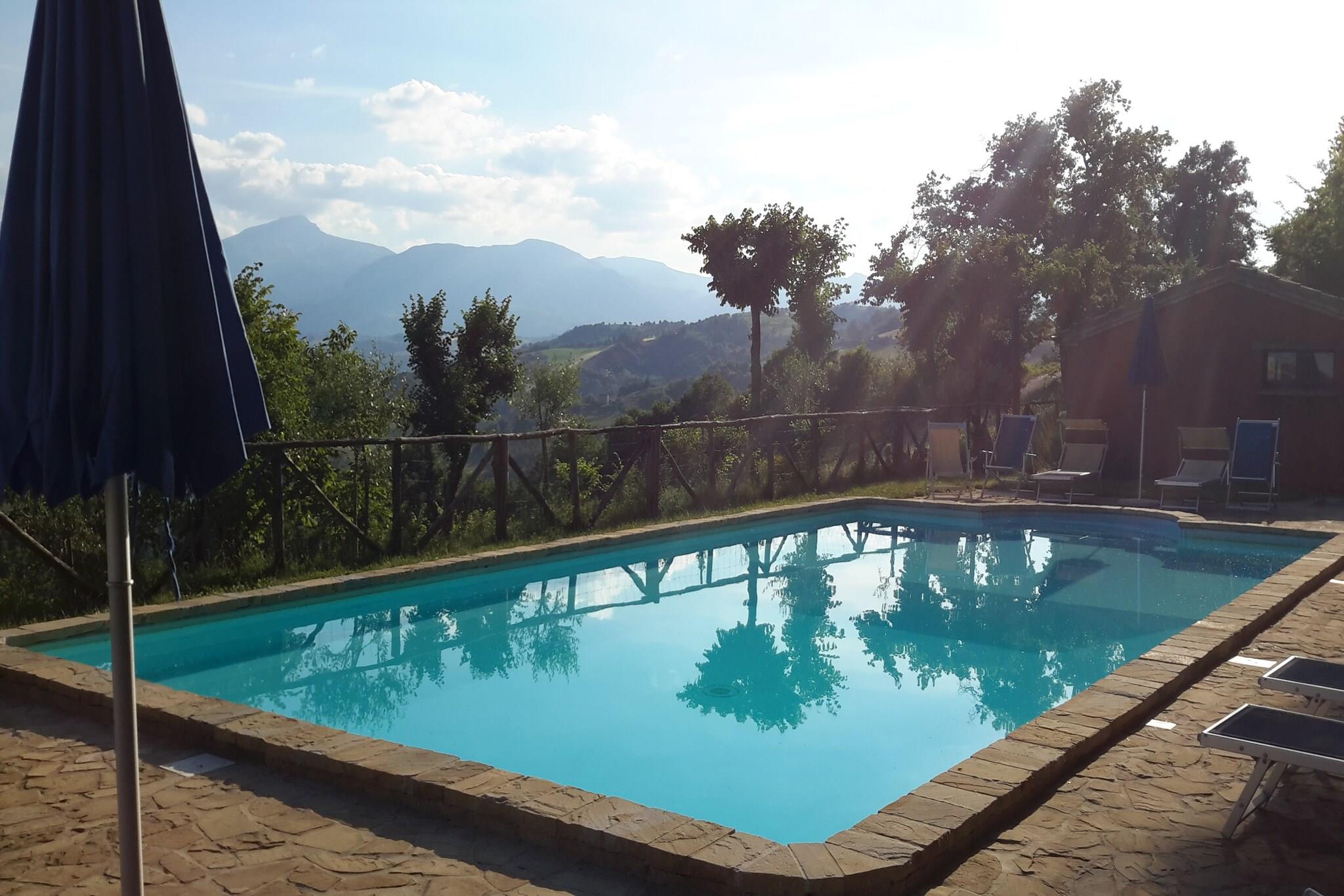 Dette charmerende feriehus ligger i Monti Sibillini Nationalpark og tilbyder et idyllisk tilflugtssted med majestætisk udsigt over bjergene. Slap af på haveterrassen eller ved poolen med en god bog. Huset har en hyggelig stue, et komfortabelt soveværelse, et veludstyret køkken, en højstol, fælles fryser, espressomaskine og er kæledyrvenligt. Det er ideelt for vandrere og kulturinteresserede, der kan udforske stierne i Sibillini-bjergene, de middelalderlige gader i Monte San Martino eller det eventyrlige Gradara Slot. Ascoli Piceno med sin Piazza del Popolo og romerske broer ligger inden for rækkevidde, og udlejning af e-cykler gør det nemt at tage på eventyr med din firbenede ven. Nyd det lokale køkken på nærliggende trattoriaer som Trattoria da Rosa eller Ristorante Il Tiglio, smag regionale vine og håndlavet pasta, eller hold en solnedgangsgrillfest i haven. Nærliggende markeder tilbyder friske råvarer og oste, der er perfekte til at skabe mindeværdige måltider derhjemme.