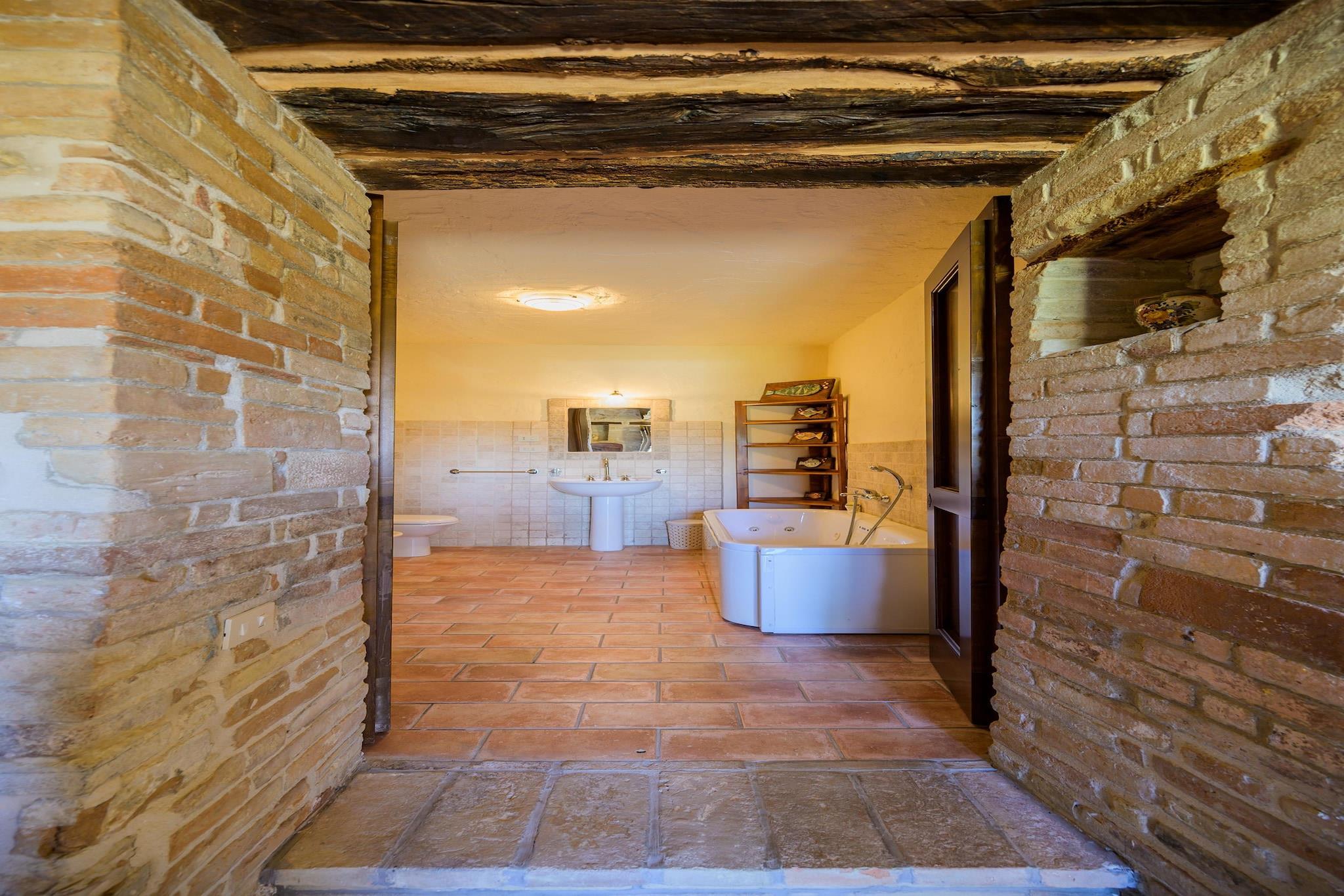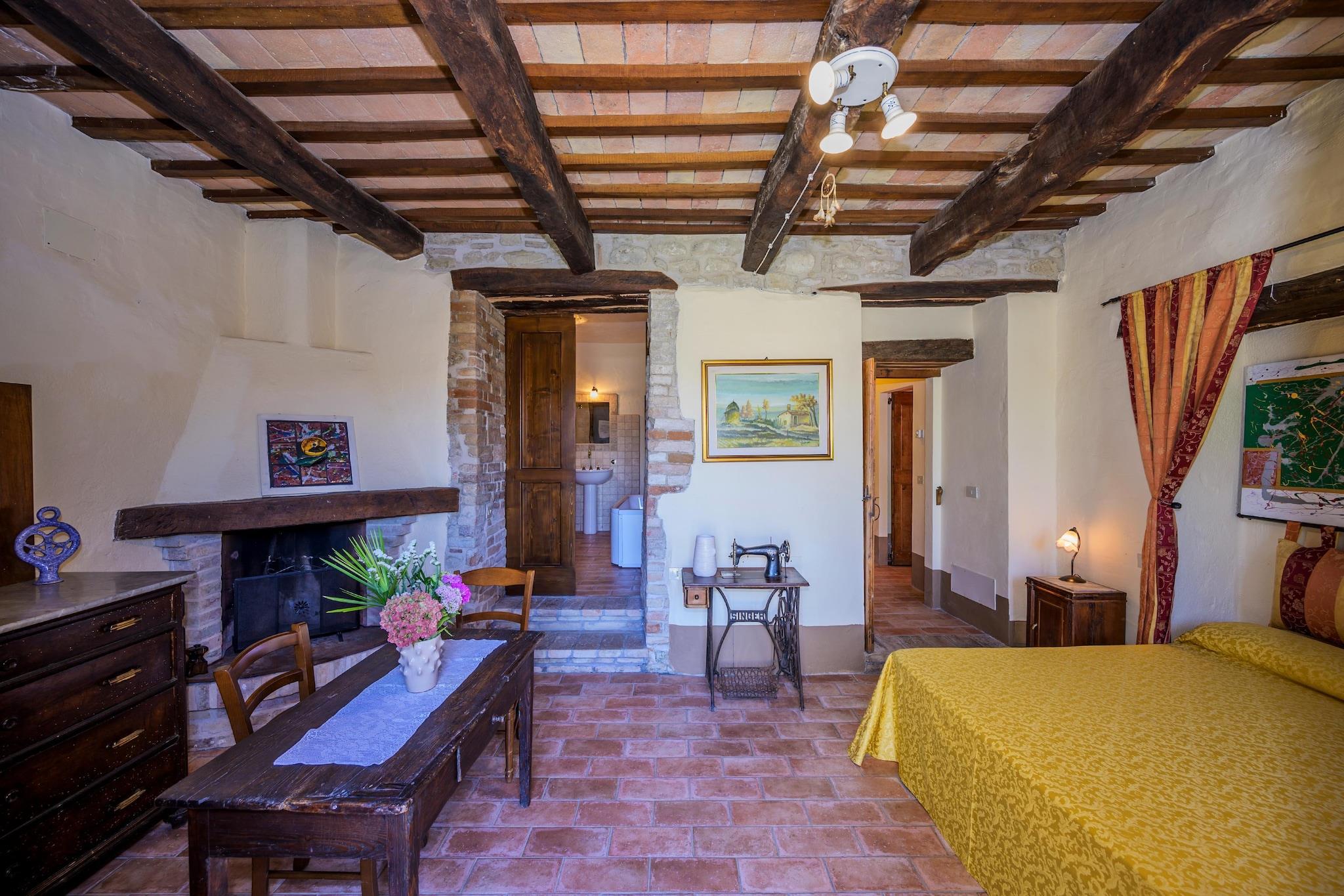 Dette smukke landsted med 2 soveværelser ligger i nærheden af Monte San Martino og tilbyder et roligt tilflugtssted for op til 6 gæster. Omgivet af bølgende bakker har det en privat swimmingpool med liggestole, en frodig have med havemøbler og en separat indgang for ekstra privatliv. Indenfor finder du en hyggelig opholdsstue, et fuldt udstyret køkken med kaffemaskine, elkedel, brødrister og fryser samt et komfortabelt soveværelse med et skab. Blandt de gennemtænkte detaljer er gratis toiletartikler, toiletpapir, en tørresnor, en høj stol og en ventilator til rådighed efter anmodning. Familier og kæledyr er velkomne, og der er familieværelser til rådighed for alle. Beliggenheden er perfekt til at kombinere natur, historie og udendørsaktiviteter. Udforsk de brostensbelagte gader i Monte San Martino eller nyd udflugter til Piazza del Popolo, Chiesa di San Francesco, Gradara Slot og Ponte di Porta Solestà. Strandelskere kan tage 40 km til Porto San Giorgio for sjov ved havet. Der tilbydes betalte aktiviteter, herunder leje af elcykler og mountainbikes, guidede cykelture og udflugter, vandreture, vandreture (udflugter) og endda hestevæddeløb uden for stedet. Privat indtjekning, bagageopbevaring, nøgleadgang og valgfri lufthavnstransport sikrer et problemfrit og behageligt ophold. Lokale smagsoplevelser og afslapning fuldender oplevelsen. Nyd en grillfest ved solnedgang eller book vin og champagne mod et ekstra gebyr. Besøg nærliggende markeder og trattoriaer kun 2 km væk for at opdage friske råvarer, håndlavet pasta og regionale vine. Med sine rolige omgivelser, solarium, parasoller og nærhed til natur og kultur er dette landsted den perfekte base for din ferie i Le Marche.