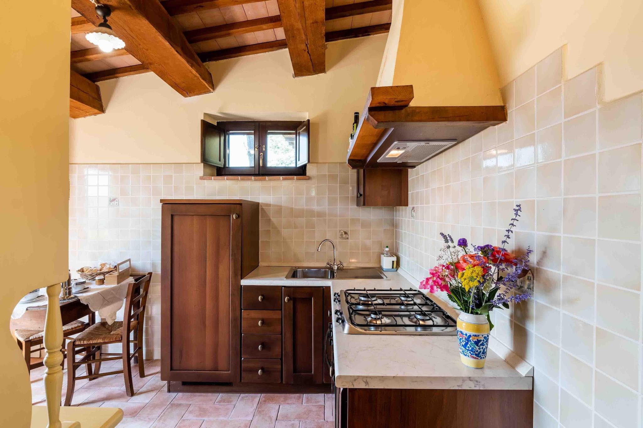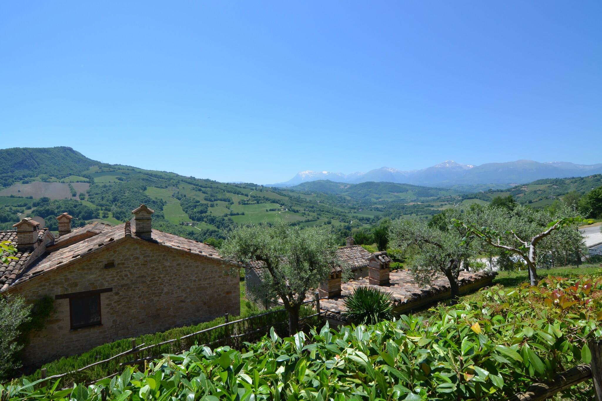 Denne charmerende lejlighed med 1 soveværelse ligger nær den smukke middelalderkommune Monte San Martino og tilbyder en idyllisk oase for par og fredsøgende. Nyd en fantastisk panoramaudsigt over de bølgende grønne bakker og en stor swimmingpool, hvor du kan slappe af efter en dag med udforskning. Lejligheden er en del af en privat bygning med separat indgang og har en hyggelig opholdsstue, et veludstyret køkken med kaffemaskine, elkedel, brødrister og fryser samt et komfortabelt soveværelse med et skab. Blandt de gennemtænkte detaljer er gratis toiletartikler, toiletpapir, tørresnor, højstol på forespørgsel og ventilator på forespørgsel. Familieværelser er tilgængelige, og kæledyr er velkomne, hvilket sikrer et varmt og fleksibelt ophold. Beliggenheden er ideel til at blande natur, kultur og udendørsaktiviteter. Udforsk de brostensbelagte gader i Monte San Martino og de nærliggende historiske byer Sarnano, Smerillo og San Ginesio, alle inden for 20 km. Dagsture til Ascoli Piceno og Macerata (45 km) eller til ikoniske steder som Gradara Slot, Piazza Arringo, Piazza del Popolo og Chiesa di San Francesco lover uforglemmelige minder. Gæsterne kan nyde en bred vifte af betalte aktiviteter, herunder udlejning af mountainbikes og elcykler, guidede cykelture og udflugter, vandreture, vandreture (udflugter) og endda hestevæddeløb uden for stedet. Tilbage på ejendommen kan du slappe af med havemøbler, liggestole, en bærbar grill, solarium og parasoller for en afslappende dag under den italienske sol. Privat indtjekning, bagageopbevaring, nøgleadgang og en valgfri lufthavnstransport gør dit ophold bekvemt. Vin og champagne er tilgængelige mod et ekstra gebyr, perfekt til en romantisk aften på din terrasse.