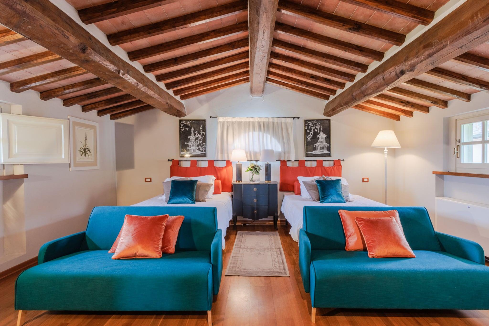 Denne charmerende villa i Monte San Quirico tilbyder et idyllisk tilflugtssted med 3 soveværelser og plads til komfortabelt at rumme op til 6 gæster. Ejendommen er smagfuldt møbleret og fuldt udstyret og er på 90 m² omgivet af natur og har en privat have - perfekt til at nyde fredelige toscanske dage. Villaen ligger i et roligt område omgivet af skovklædte omgivelser, inden for rækkevidde af lokale restauranter og naturlige attraktioner. Nyd at spise i nærheden på Ristorante Fattoria Sardi, In Cantina Agriturismo eller Il Guercio, som alle ligger kun få minutter væk. Serchio-floden ligger kun 3 km væk til vandreture i naturen eller cykling, og det historiske centrum af Lucca ligger kun 7 km væk - ideelt til dagsture og sightseeing. Villaen inkluderer alt hvad du behøver for et behageligt ophold: en dejlig have med havemøbler og grill, en hyggelig pejs, fælles swimmingpool, myggenet overalt, aircondition og Wi-Fi. Der er også vaskemaskine, tørretumbler og privat udendørs parkering på stedet. Det separate gaskøkken er fuldt udstyret med moderne apparater, herunder køleskab, mikrobølgeovn, ovn, fryser, opvaskemaskine, kaffemaskine, brødrister, elkedel og juicer - ideelt til at tilberede lokale ingredienser fra nærliggende markeder. Uanset om du udforsker Toscanas perler som Pisa, Montecatini, Forte dei Marmi, Cinque Terre eller blot slapper af i rolige omgivelser, tilbyder denne villa den perfekte balance mellem komfort, bekvemmelighed og naturlig skønhed. Bemærk: Turistskat skal betales på ejendommen.