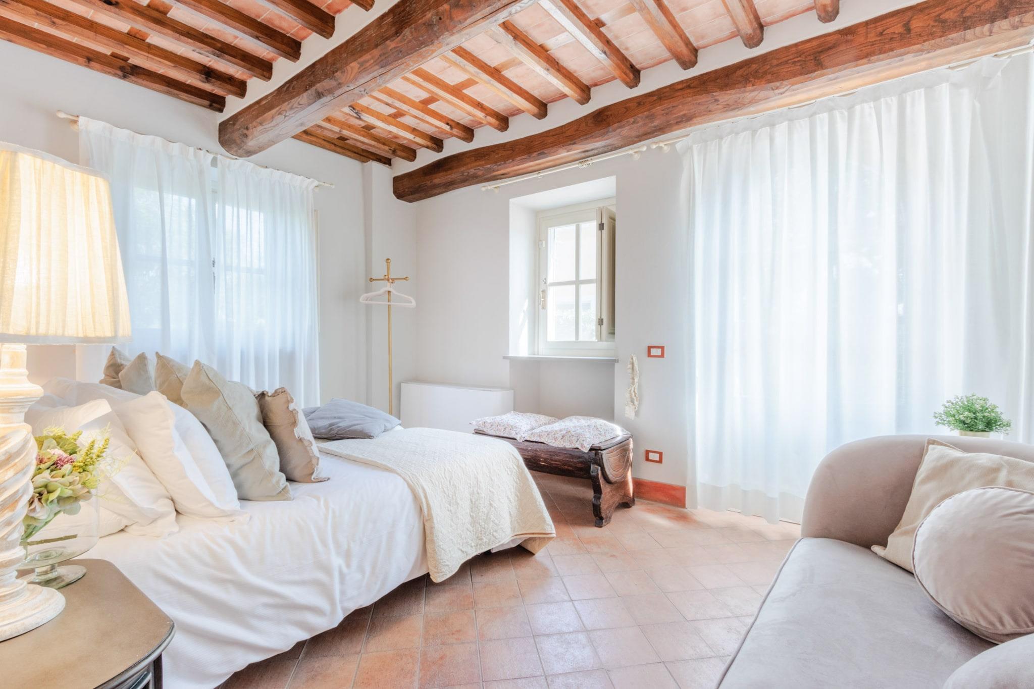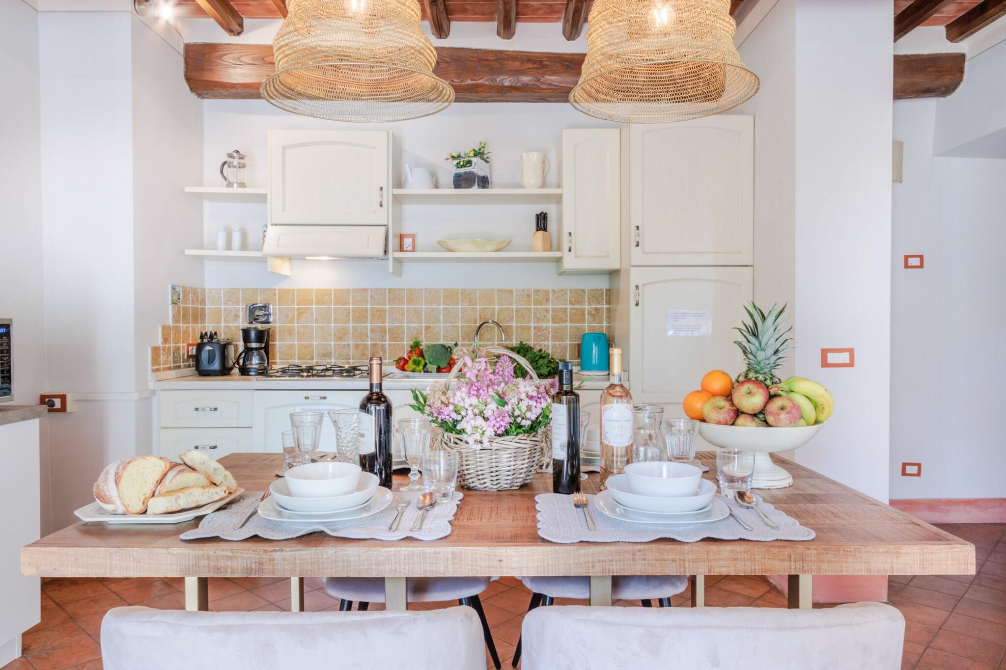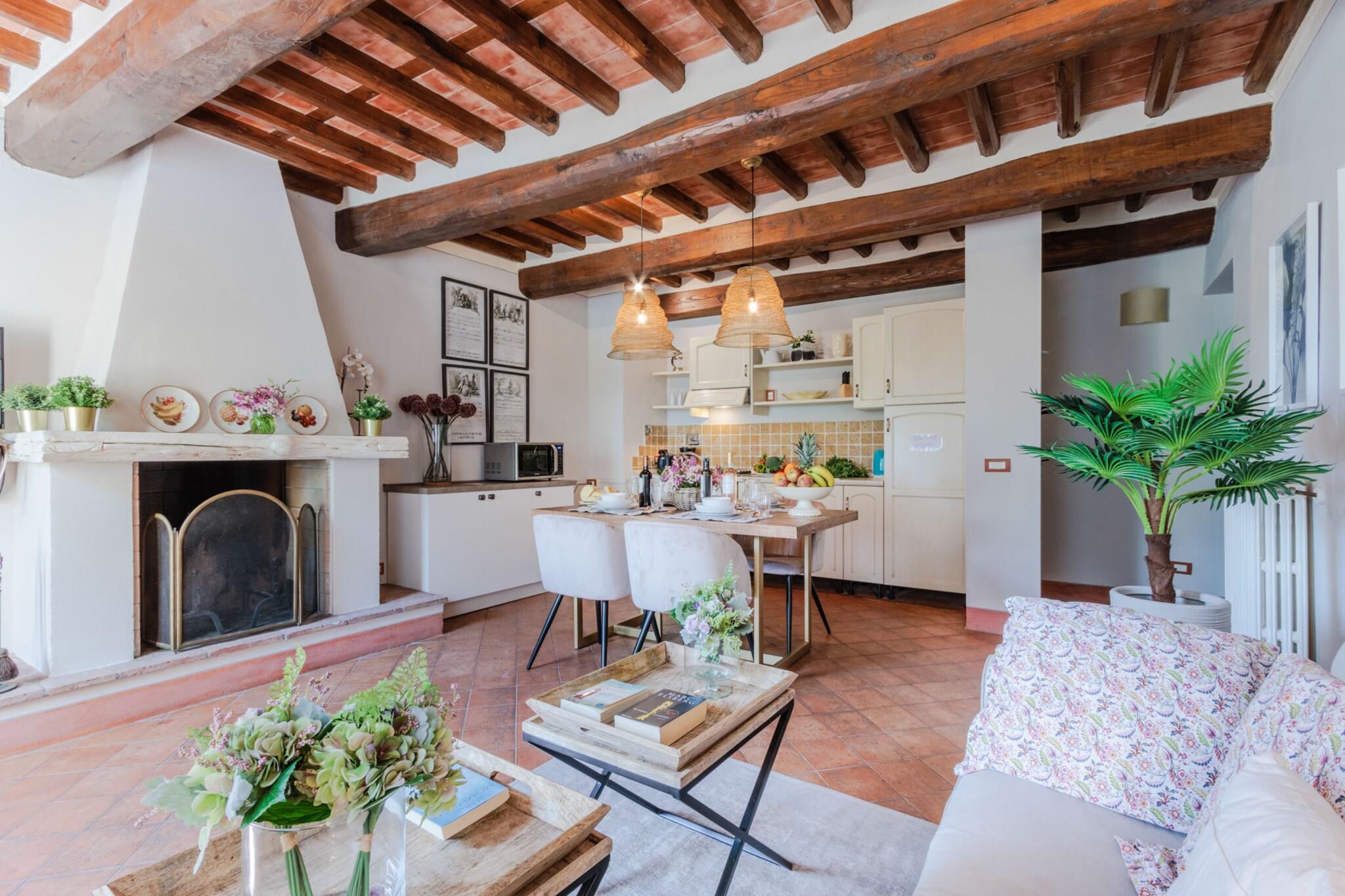 Et ophold på Fattoria Sardi Wine Resort er som at træde ind i dit eget toscanske postkort. Beliggende i de bølgende vinmarker i Monte San Quirico - kun 3 km fra Luccas historiske bymure - blander dette antikke bondehus tidløs charme med moderne komfort. Omgivet af rækker af Sangiovese-, Cabernet- og Merlot-vinstokke indfanger omgivelserne alt, hvad der gør Toscana uforglemmeligt: gyldne bakker, duftende landskab og en fredelig rytme, der inviterer dig til at sætte farten ned. Denne lejlighed, der ligger i stueetagen, er et smukt renoveret tilflugtssted med sin egen private have. Indenfor finder du en lys opholdsstue, et fuldt udstyret køkken med spiseplads, to indbydende dobbeltværelser og to elegante badeværelser med bruseniche. Indretningen er tro mod den toscanske tradition - træ, sten og bløde jordfarver - men føles alligevel frisk og stilfuld. Gå udenfor, og du kan nyde din have med et glas vin fra ejendommen eller slentre over til den fælles swimmingpool, omgivet af vinmarker og solrige landskaber. Dine dage her kan være så afslappede eller eventyrlystne, som du vælger. Gå en tur gennem vingården og lær hemmelighederne bag vinfremstilling, slap af ved poolen, eller smag sæsonbestemte gourmetretter på ejendommens restaurant. Når du er klar til at udforske, ligger Lucca kun få minutter væk med sine livlige piazzaer og monumenter i verdensklasse, mens Firenze, Pisa og strandene i Viareggio alle er nemme dagsture. Uanset om du er her for at slappe af eller udforske, er dette en ægte toscansk oplevelse - autentisk, fredfyldt og uforglemmelig. Bemærk: Turistskat skal betales på ejendommen.