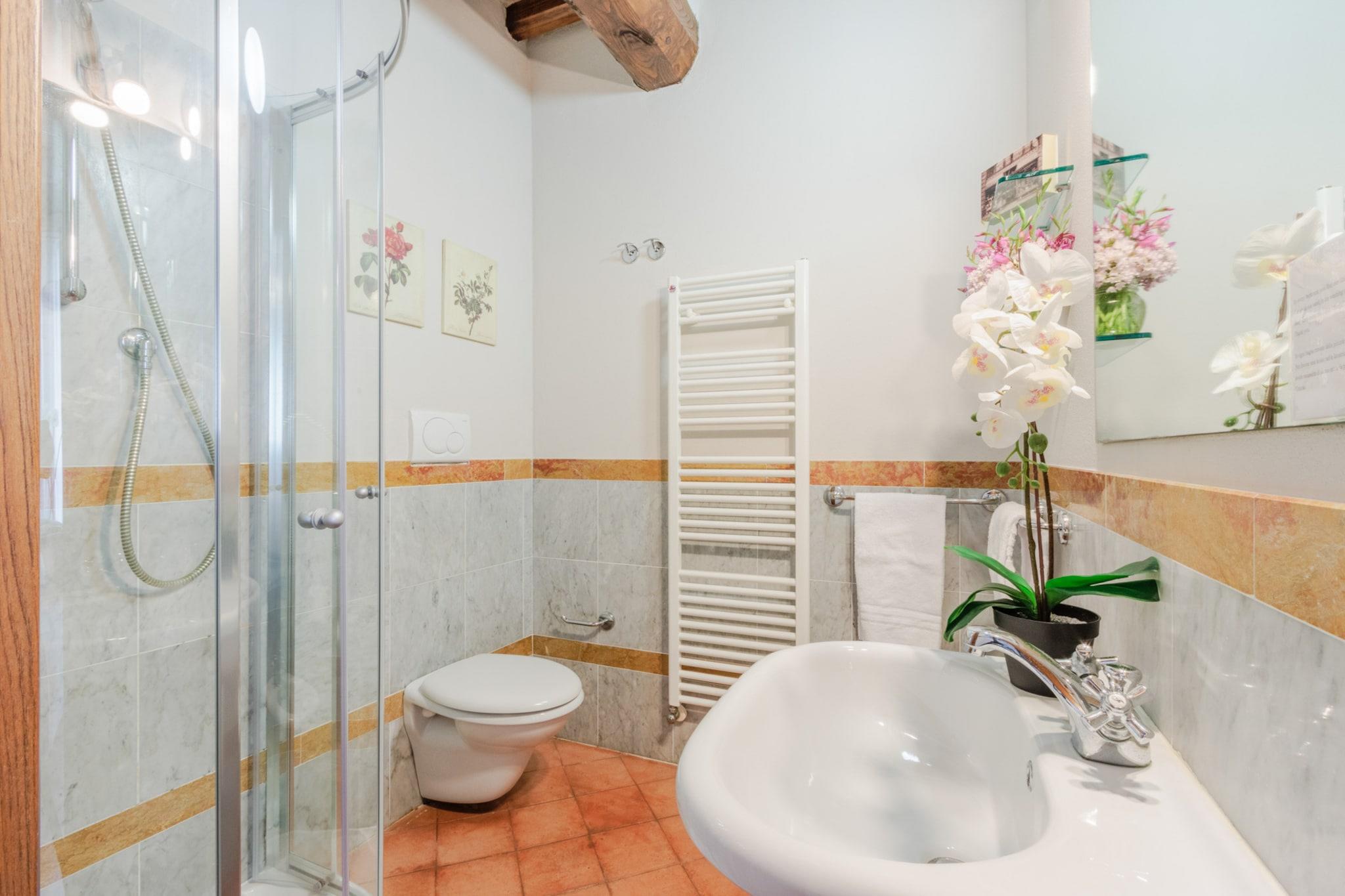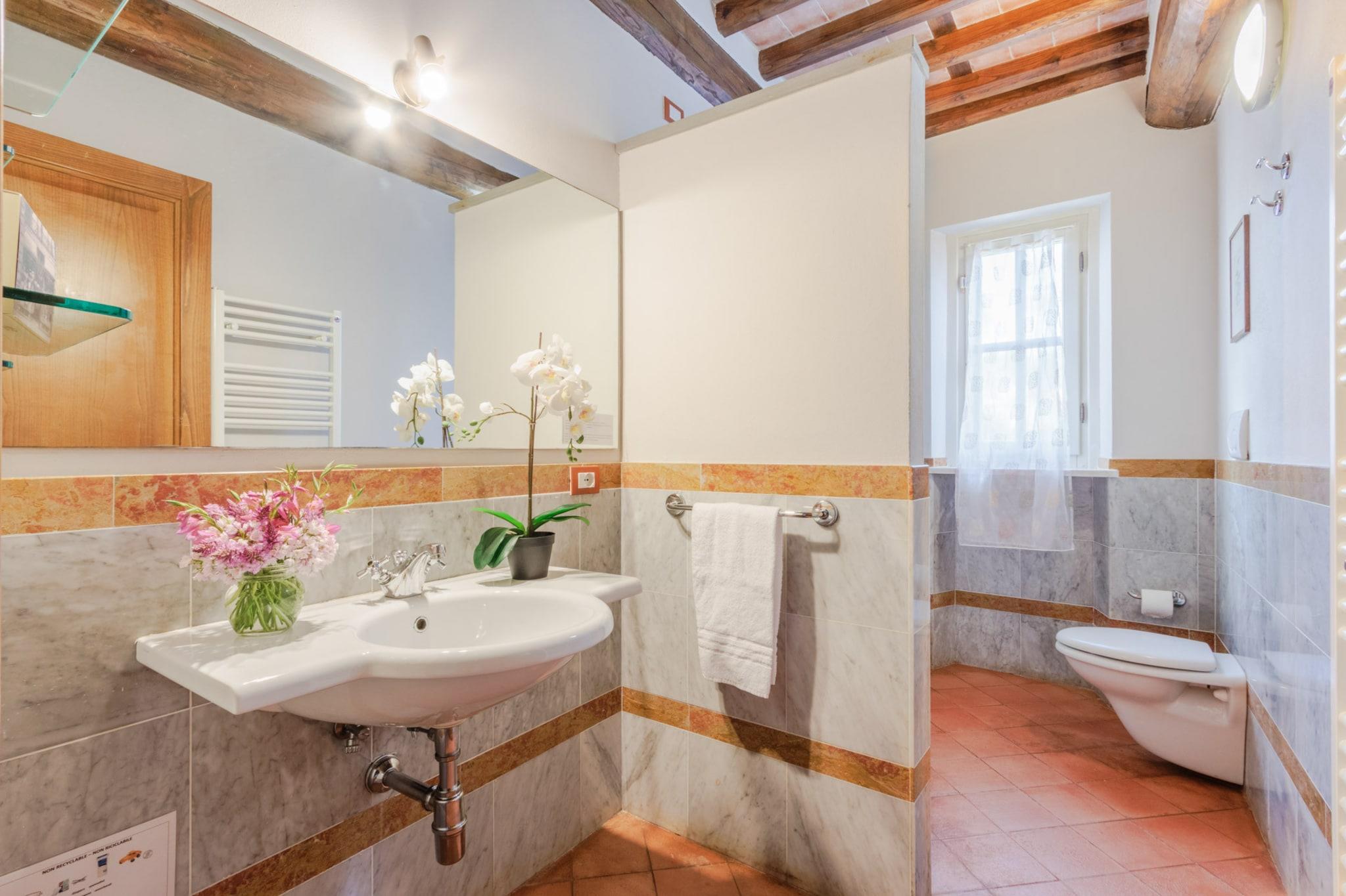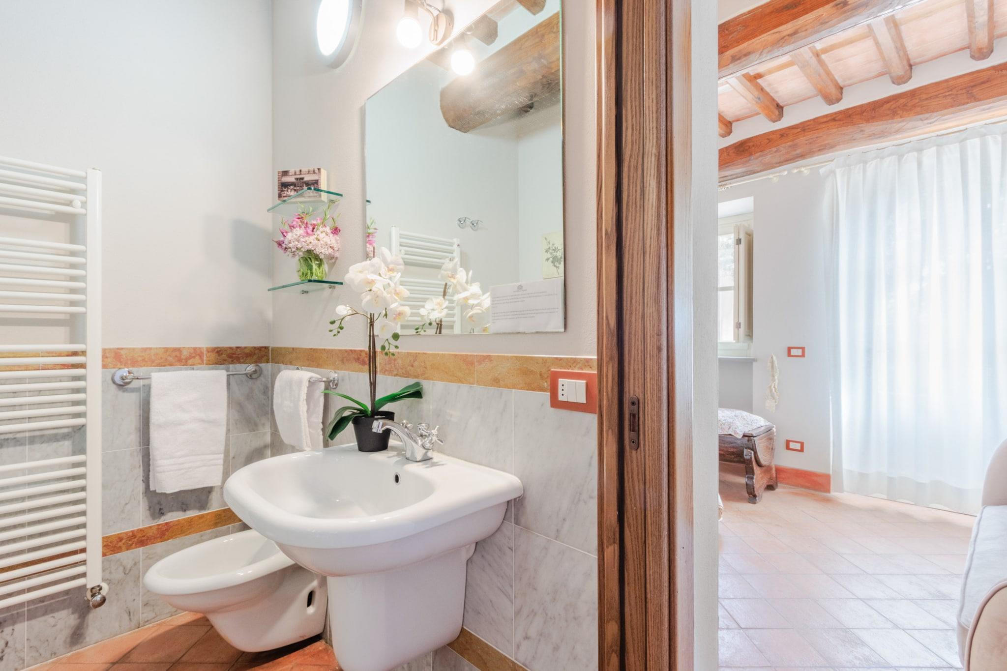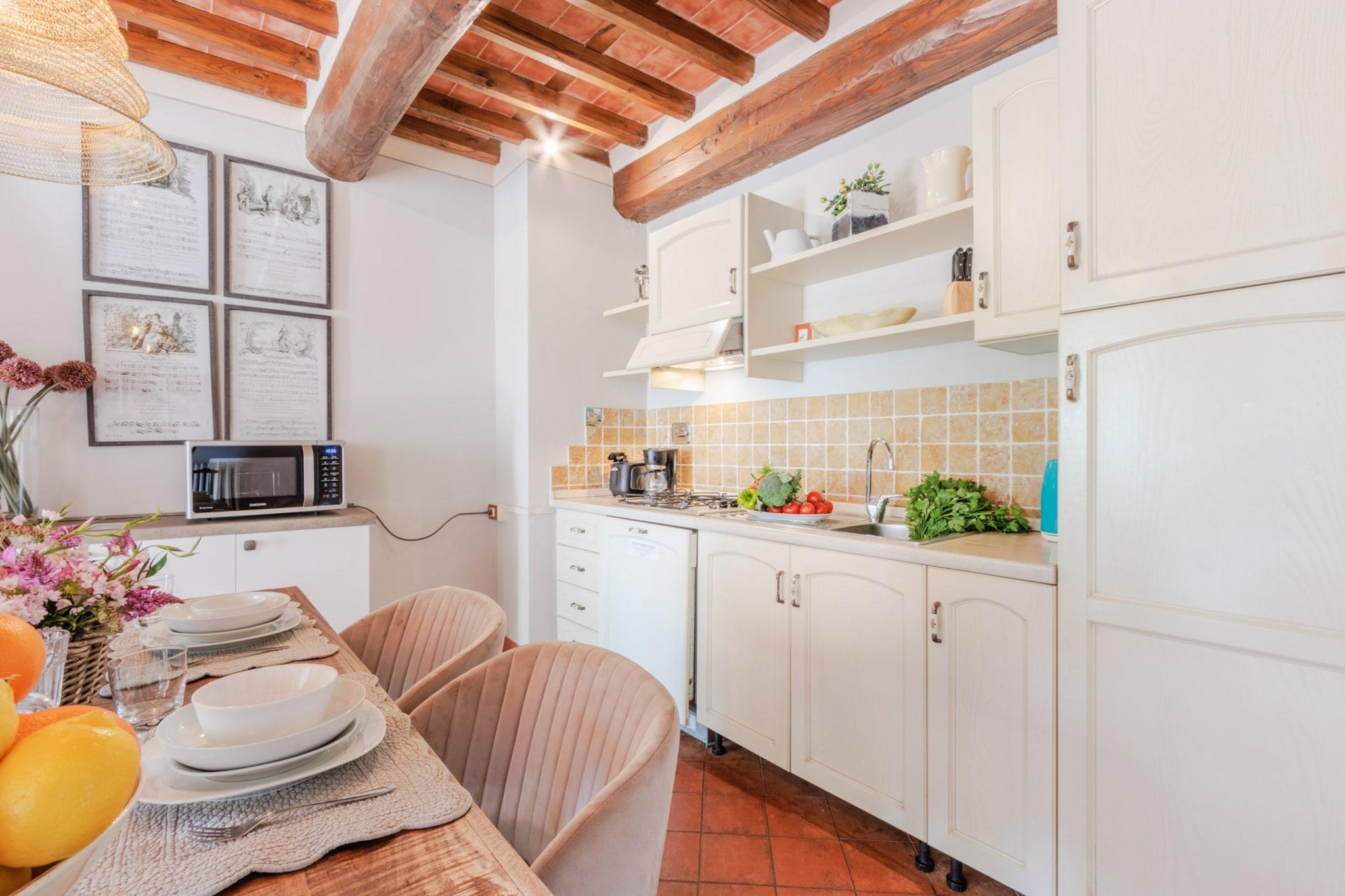 Et ophold på Fattoria Sardi Wine Resort er som at træde ind i dit eget toscanske postkort. Beliggende i de bølgende vinmarker i Monte San Quirico - kun 3 km fra Luccas historiske bymure - blander dette antikke bondehus tidløs charme med moderne komfort. Omgivet af rækker af Sangiovese-, Cabernet- og Merlot-vinstokke indfanger omgivelserne alt, hvad der gør Toscana uforglemmeligt: gyldne bakker, duftende landskab og en fredelig rytme, der inviterer dig til at sætte farten ned. Denne lejlighed, der ligger i stueetagen, er et smukt renoveret tilflugtssted med sin egen private have. Indenfor finder du en lys opholdsstue, et fuldt udstyret køkken med spiseplads, to indbydende dobbeltværelser og to elegante badeværelser med bruseniche. Indretningen er tro mod den toscanske tradition - træ, sten og bløde jordfarver - men føles alligevel frisk og stilfuld. Gå udenfor, og du kan nyde din have med et glas vin fra ejendommen eller slentre over til den fælles swimmingpool, omgivet af vinmarker og solrige landskaber. Dine dage her kan være så afslappede eller eventyrlystne, som du vælger. Gå en tur gennem vingården og lær hemmelighederne bag vinfremstilling, slap af ved poolen, eller smag sæsonbestemte gourmetretter på ejendommens restaurant. Når du er klar til at udforske, ligger Lucca kun få minutter væk med sine livlige piazzaer og monumenter i verdensklasse, mens Firenze, Pisa og strandene i Viareggio alle er nemme dagsture. Uanset om du er her for at slappe af eller udforske, er dette en ægte toscansk oplevelse - autentisk, fredfyldt og uforglemmelig. Bemærk: Turistskat skal betales på ejendommen.