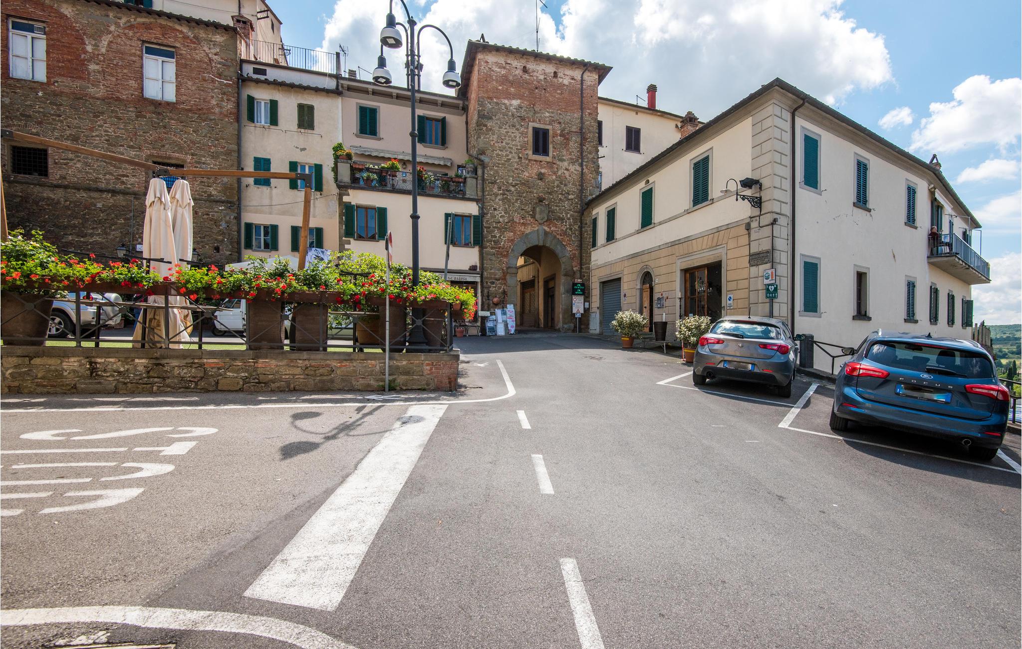 Smuk lejlighed i det historiske centrum af Monte San Savino, en gammel etruskisk landsby, der stadig bevarer spor fra middelalderen og den etruskiske periode. Byen ligger på den vestlige side af Val di Chiana på et bjerg foran Esse-dalen. Lejligheden ligger i stueetagen i en bygning og er funktionel og ideel til en familieferie eller for to par, der ønsker at besøge Toscana. Gæsterne har adgang til et privat og udstyret udendørsareal (25 m²). I Monte San Savino kan du besøge den smukke kirke Sant'Agostino, det tidligere benediktinerkloster, de historiske mure og Logge dei Mercanti. Du kan leje cykler 2,5 km fra ejendommen. Placering: tennisbane 450 m, offentlig udendørs pool 4 km, offentlig indendørs swimmingpool 20 km. Rapolanos termiske faciliteter ligger 25 km væk. Lake Trasimeno med sine veludstyrede strande og charmerende øer ligger 47 km væk; Arezzo 22 km, Siena med det berømte Piazza del Campo 56 km, Firenze med det verdensberømte Uffizi-galleri 86 km.