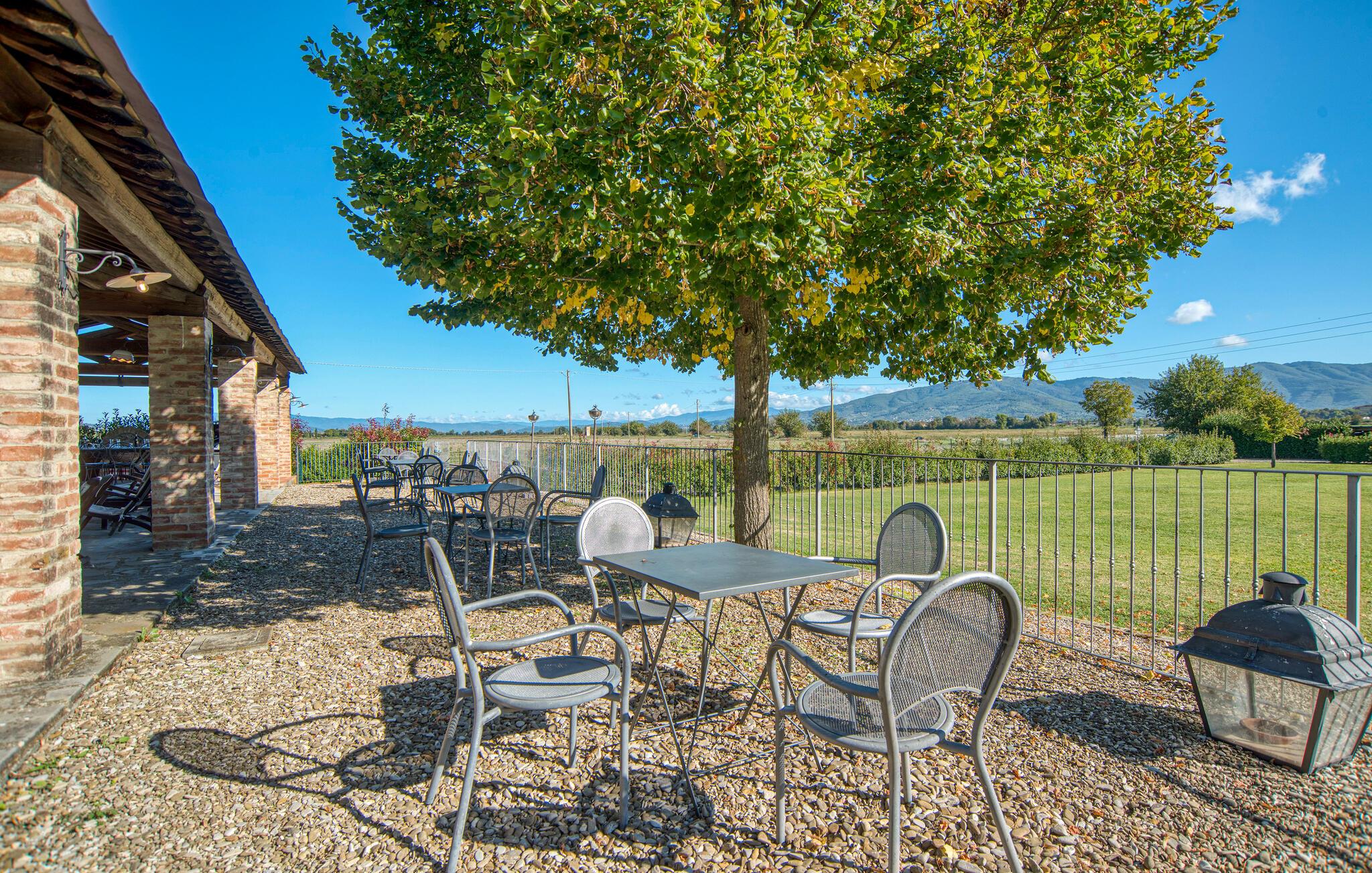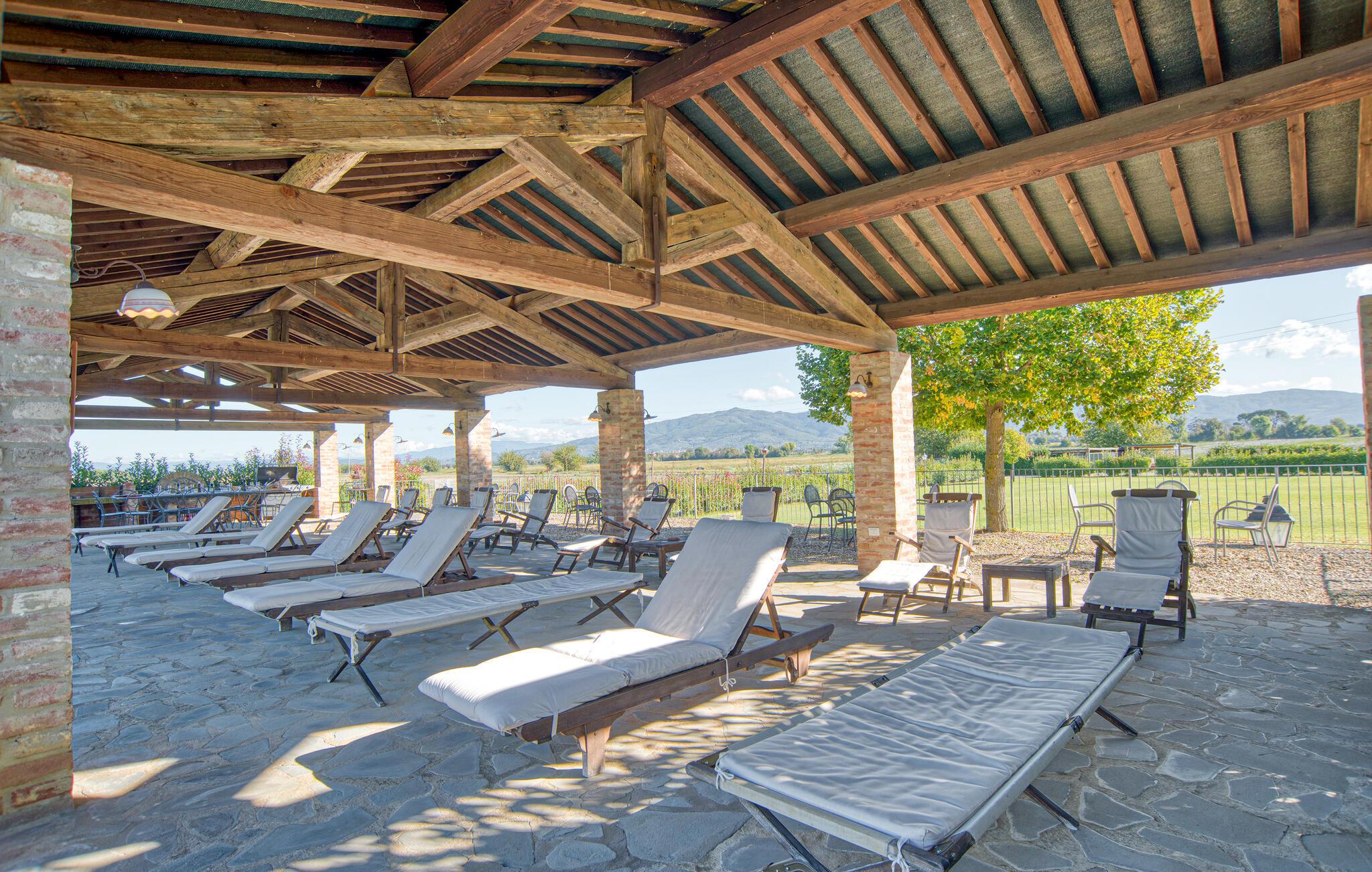 Overalt kan du nyde en bred panoramaudsigt over Chiana-dalen med dens mange smukke byer og udflugtsmål: Ud over den charmerende by Monte San Savino (8 km) ligger den gamle etruskiske by Cortona 25 km væk på bjerget, mod øst; sydvest for vinbyen Montepulciano (35 km) og den berømte renæssanceby Pienza (40 km); Arezzo med sin smukke gamle bydel og det store antikmarked (hver 1. weekend i måneden) er kun 20 km væk. Siena med det smukkeste torv i verden, Piazza del Campo, kan nås på mindre end en time (50 km). Den lidt kuperede Chiana-dal med sine mange små stier og gader er ideel til cykling - en cykelsti fører langs den centrale Canale Maestro over dalen. Det er ca. 30 km til søen Trasimeno - børnevenlige sandstrande og en bådtur til de små øer venter her. Madlavningskurser og madlavningsservice efter anmodning på stedet. I Montagnano (1,5 km) får du alt, hvad du har brug for dine daglige behov.