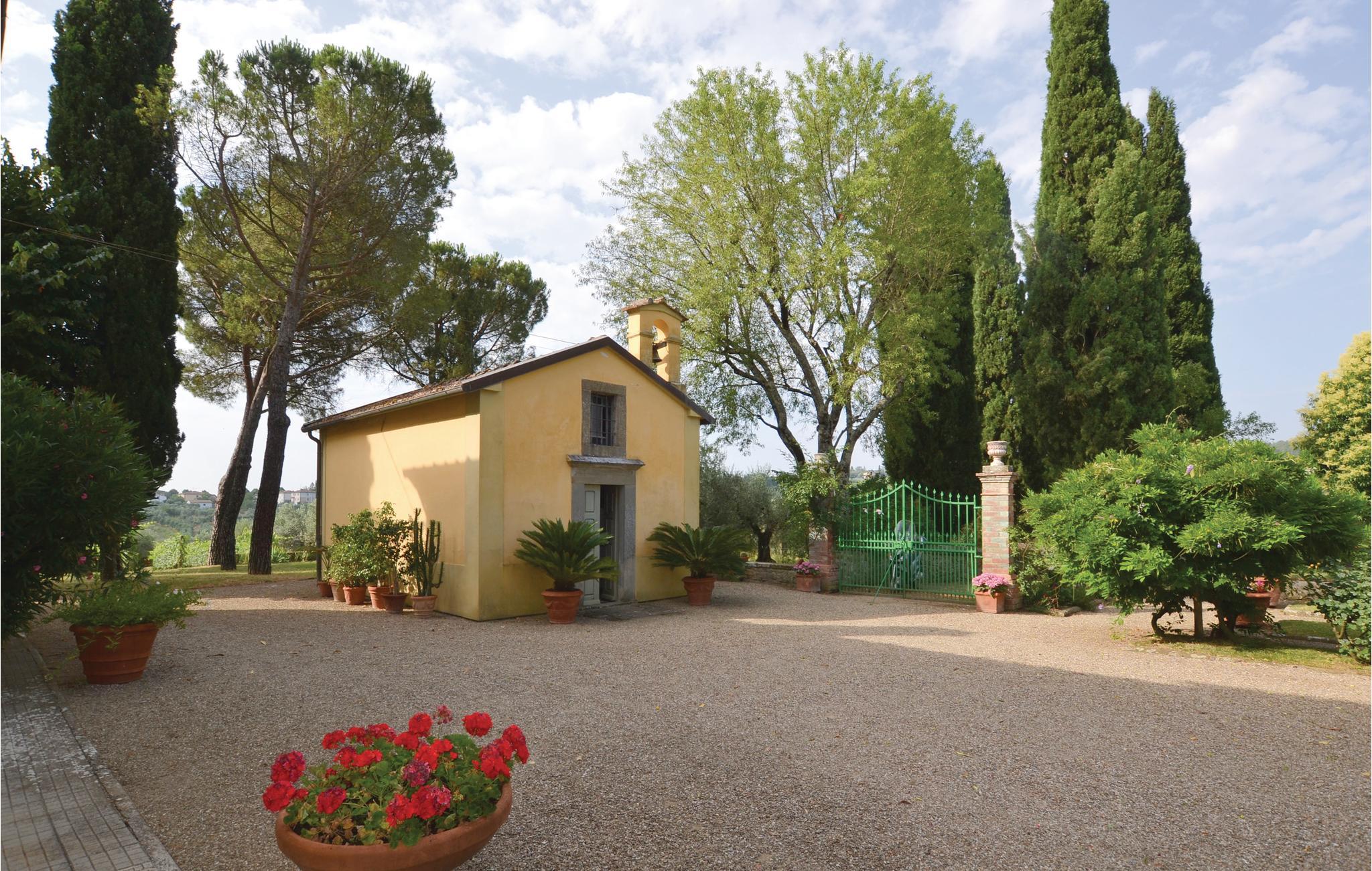 Lidt udenfor Monte San Savino (1,5 km) venter dette indbydende feriehus i bakkerne. Huset er en sidebygning af en historisk villa, omgivet af en parklignende grund med pool (delt med ITA902). I kommer ind i den store, lyse stue over en privat terrasse. I stuen er der også en åben pejs og et lille køkken, og en vindeltrappe fører op til første sal (som I når over en bekvem ydertrappe). Det funktionelle køkkenhjørne råder også over en udgang til haven. På første sal er soveværelserne med badeværelse. Barneseng mod forespørgsel. Der er forskellige siddepladser på grunden, så I kan nyde jeres espresso under roseoverdækket pergola og et glas vin i høje træers skygge. Også til fods når I nemt den pæne by Monte San Savino, hvor der er forskellige barer, gode restauranter og isboder. Hvis I vil opleve mere byatmosfære kan I også tage til Arezzo (20 km, også med toget), Cortona 30 km, Siena 50 km og Firenze 80 km. I Monte San Savino er der rige muligheder om sommeren for kulturelle arrangementer, især koncerter i rosenhaven. Om onsdagen er der et rigt liv på markedet. Bordfodbold til rådighed i fællesområde.