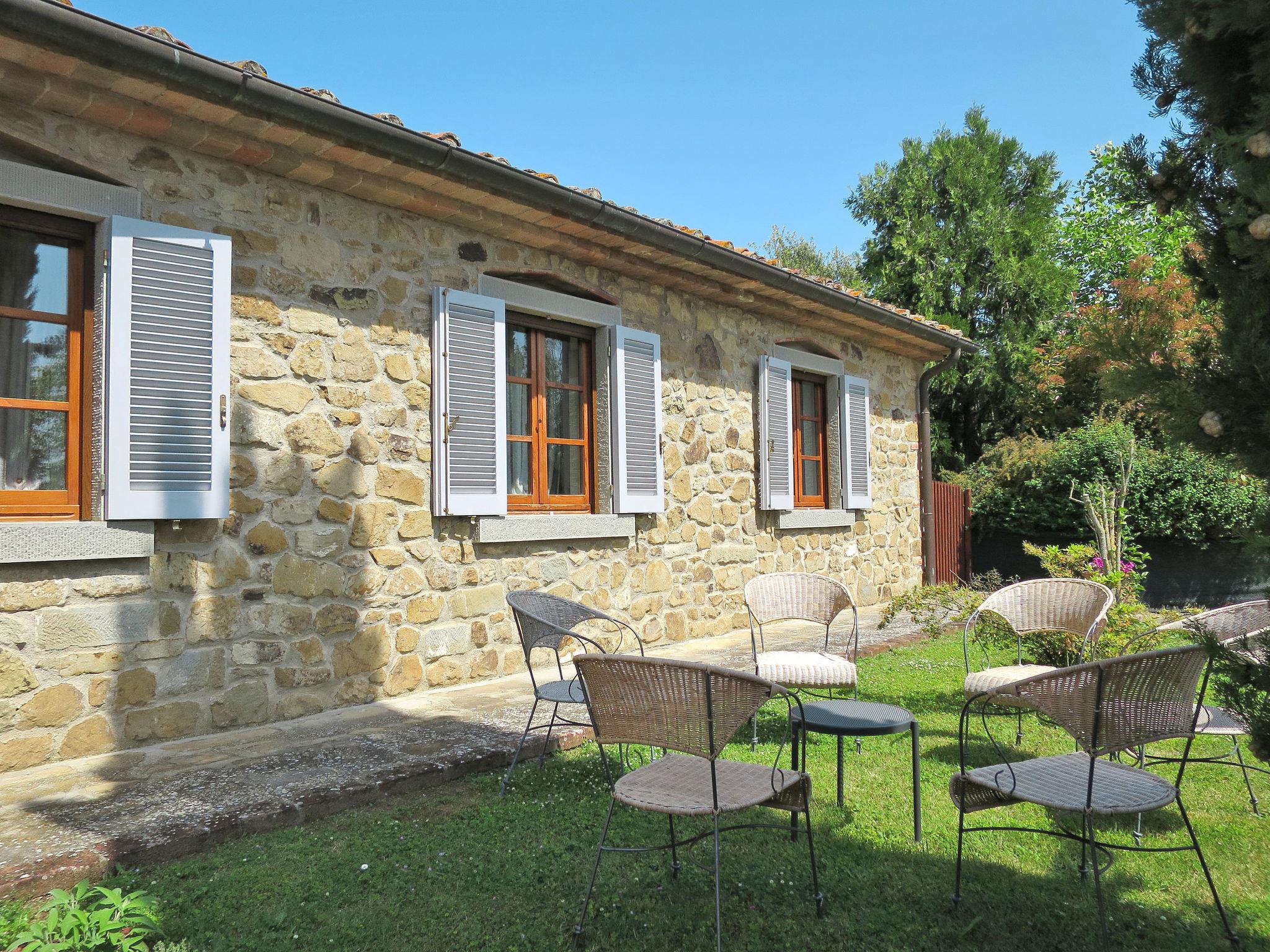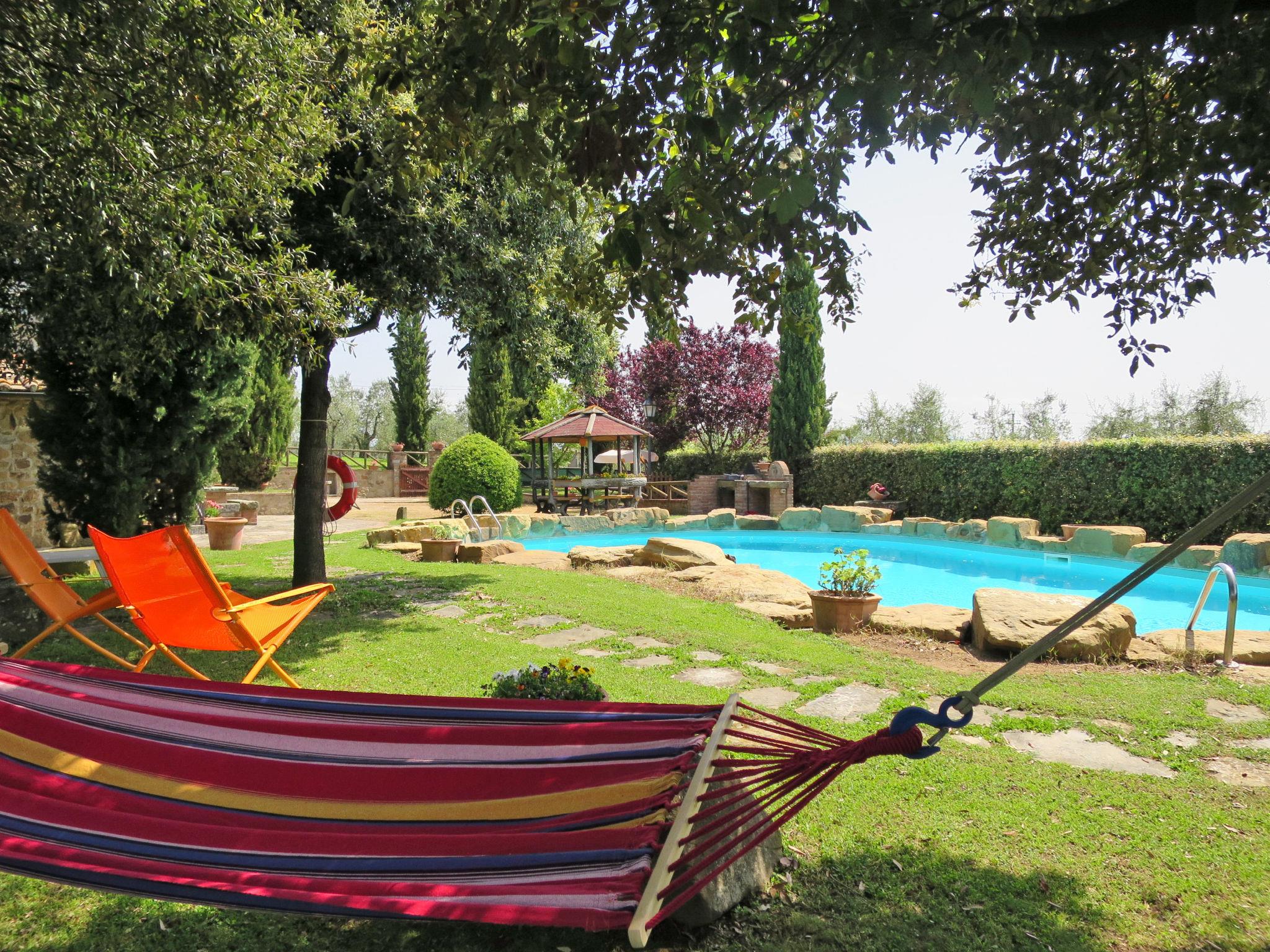 Rustic country house "Casa Clotilde", 2 storeys, renovated. 4 km from the centre of Monte San Savino, 5 km from the centre of Civitella Val di Chiana, in a quiet, sunny position, 500 m from the lake, in the countryside. For shared use: natural pond. Private: property 350 m2 (fenced), garden lawn and trees, swimming pool (13 x 7 m, depth 120 - 180 cm, seasonal availability: 09.Apr. - 30.Sep.). Outdoor shower, volleyball, arbour, garden furniture, barbecue. In the house: internet access, central heating system. Breakfast and half board possible on request (extra). Pre-arrival grocery service. Roofed, parking (for 2 cars) at the house. Shop 1 km, restaurant 1 km, bar 1 km, bus stop 800 m, railway station "Albergo" 1 km. Riding stable 700 m. Nearby attractions: Arezzo 15 km, Montepulciano 40 km, Equestrian Center Arezzo 10 km. Well-known lakes can easily be reached: Trasimeno 50 km. Please note: fishing [permit required] (extra). Local sale of farm products.
