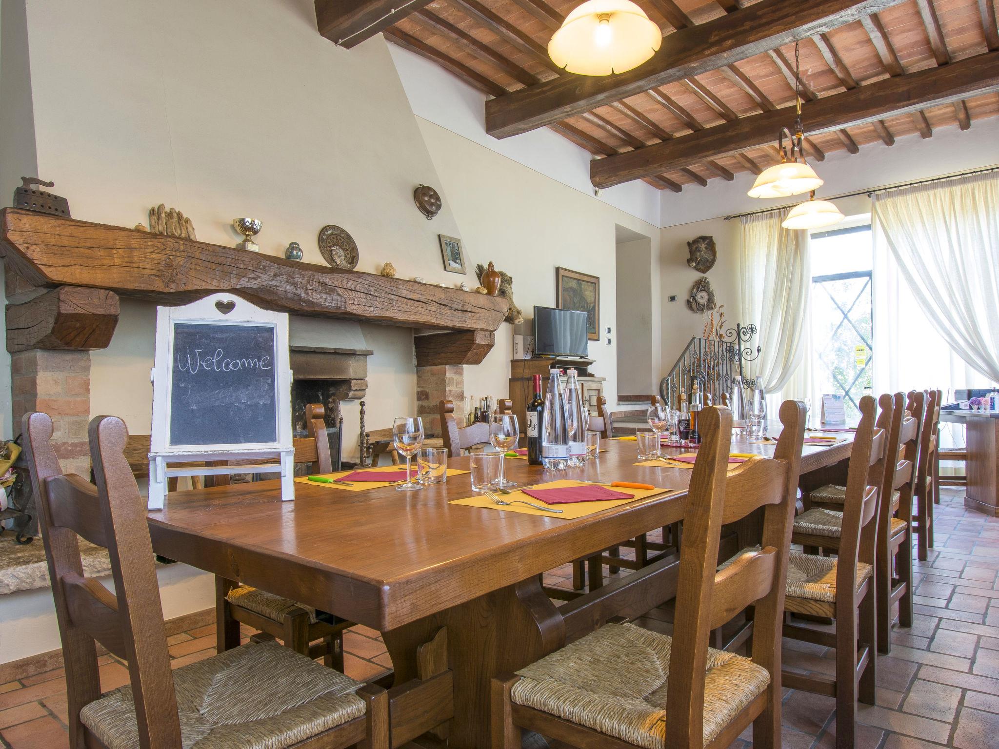Rustic house "Le Terrazze", 2 storeys, terraced. 4 km from the centre of Monte San Savino, 5 km from the centre of Civitella Val di Chiana, 500 m from the lake. For shared use: property 2 ha, natural pond. Private: property 600 m2 (fenced), garden lawn and trees, swimming pool (12 x 5 m, seasonal availability: 09.Apr. - 30.Sep.). Outdoor shower, table tennis, arbour, garden furniture. In the house: internet access. Breakfast and half board possible on request (extra). Pre-arrival grocery service. Parking on the premises. Shop, restaurant, bar 600 m, bus stop 800 m, railway station "Albergo" 1 km. Riding stable 700 m. Nearby attractions: Arezzo 15 km, Montepulciano 40 km, Equestrian Center Arezzo 10 km. Well-known lakes can easily be reached: Trasimeno 50 km. Please note: fishing [permit required] (extra). Local sale of farm products. The owner lives on the same property. Animals in the neighbourhood.