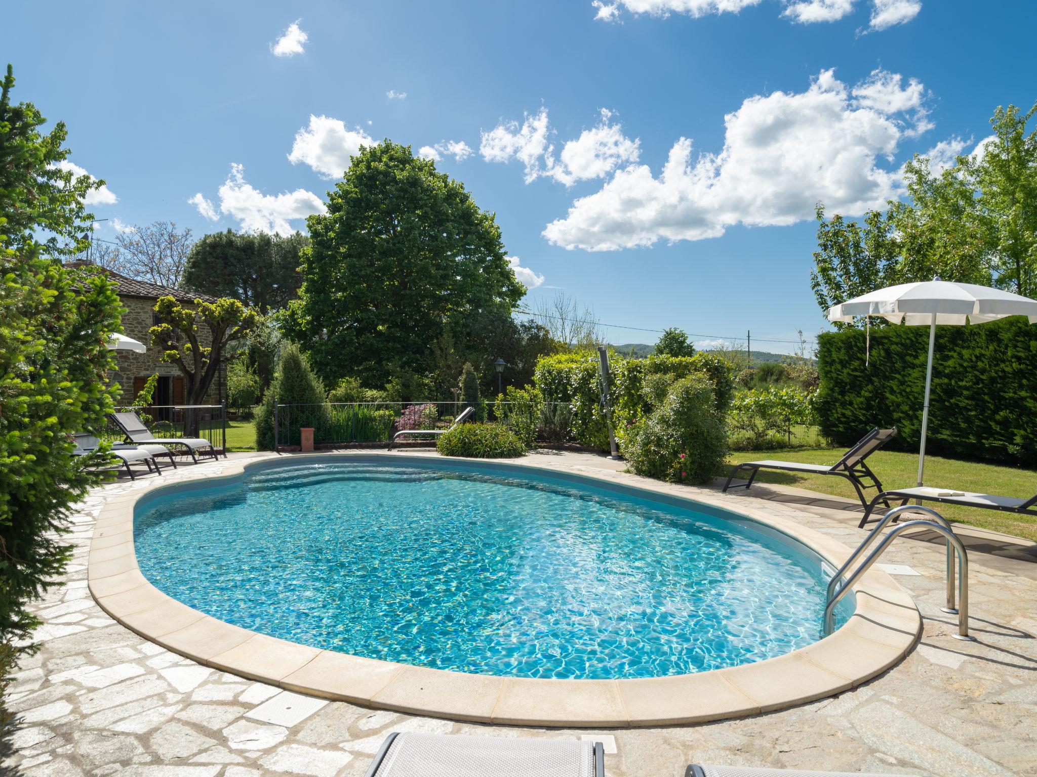 Cosy cottage, recently renovated, divided into two spaciuos parts, each with private garden of 400 m2. Under conservation act. A large fenced garden surrounds this house and the owners house which lay nearby. Swimming pool with outdoor hot water shower. View of the sunflowers fields, typical of the tuscan landcape. Sunset over the famous Gargonza castle. Private gate. Video entry phone for each apartments. The interiors are well kept, have terracotta and parquet floorings, beamed ceilings, stone archways, bedrooms had ceiling fan. Wrought iron beds. Siena 50 km. Florence 60 km. Rome is approx 2 hours by car. Cosy working farm "Casale il Giglio", renovated in 2004. 5 km from the centre of Monte San Savino, 19 km from the centre of Arezzo, 30 km from the centre of Terme di Rapolano, in the countryside. For shared use: swimming pool (11 x 5 m, depth 100 - 175 cm, seasonal availability: 27.Apr. - 12.Oct.) with salt-electrolysis pool-cleaning system. Unconventional pool shape. Outdoor shower, table tennis, boccia. Private: garden 400 m2 (fenced). Garden furniture. In the complex: WiFi, table football, heating to be paid on the spot, heating available only from 01.Nov. - 15.Apr.. Available: bicycles (4). Parking at the house. Shop 5 km, restaurant 5 km, café 5 km, bus stop 800 m, railway station "Monte San Savino" 5 km. Riding stable 10 km. Please note: car recommended. Suitable for families, suitable for seniors. The owner lives on the same property. The complex has another 1 house for rent.