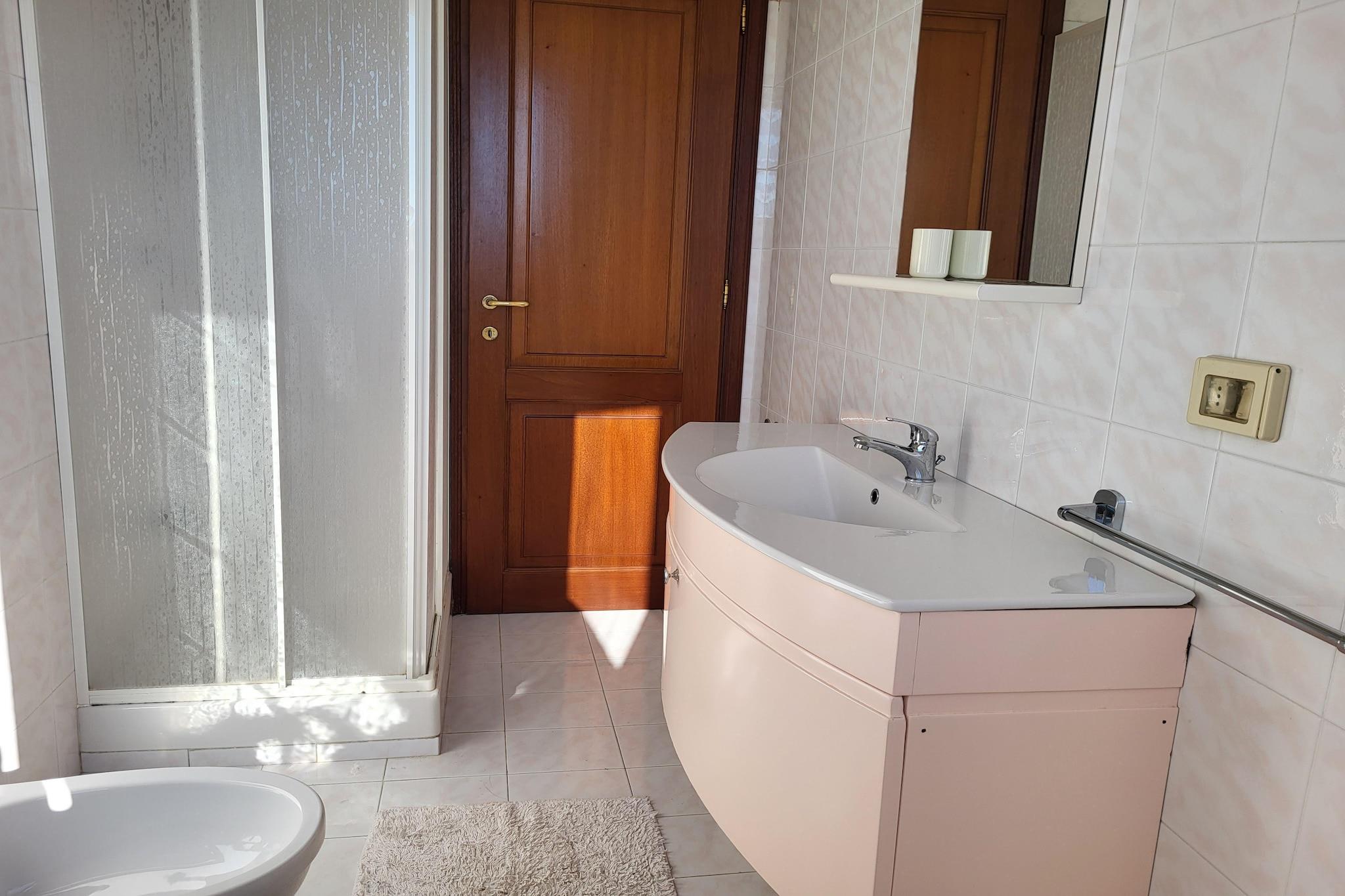 Stueetage: (Stue(dobbeltsovesofa, pejs), åbent køkken(kogeplade, elkedel, kaffemaskine, ovn, opvaskemaskine , køle-fryseskab), Soveværelse med badeværelse(dobbeltseng, bruser, håndvask, toilet), Soveværelse med badeværelse(dobbeltseng, bruser, håndvask, toilet), Soveværelse med badeværelse(enkeltseng, enkeltseng, bruser, håndvask, toilet)) Gæsteophold Stueetage: (åbent køkken(kogeplade, ovn, køle-fryseskab), stue / spisestue(spisebord), soveværelse(dobbeltseng), badeværelse(bruser, håndvask, toilet, bidet)) have, havemøbler, grill, parkering, swimmingpool(deles med andre gæster, 14 x 7 m., opened from Jun upto and including Sep)