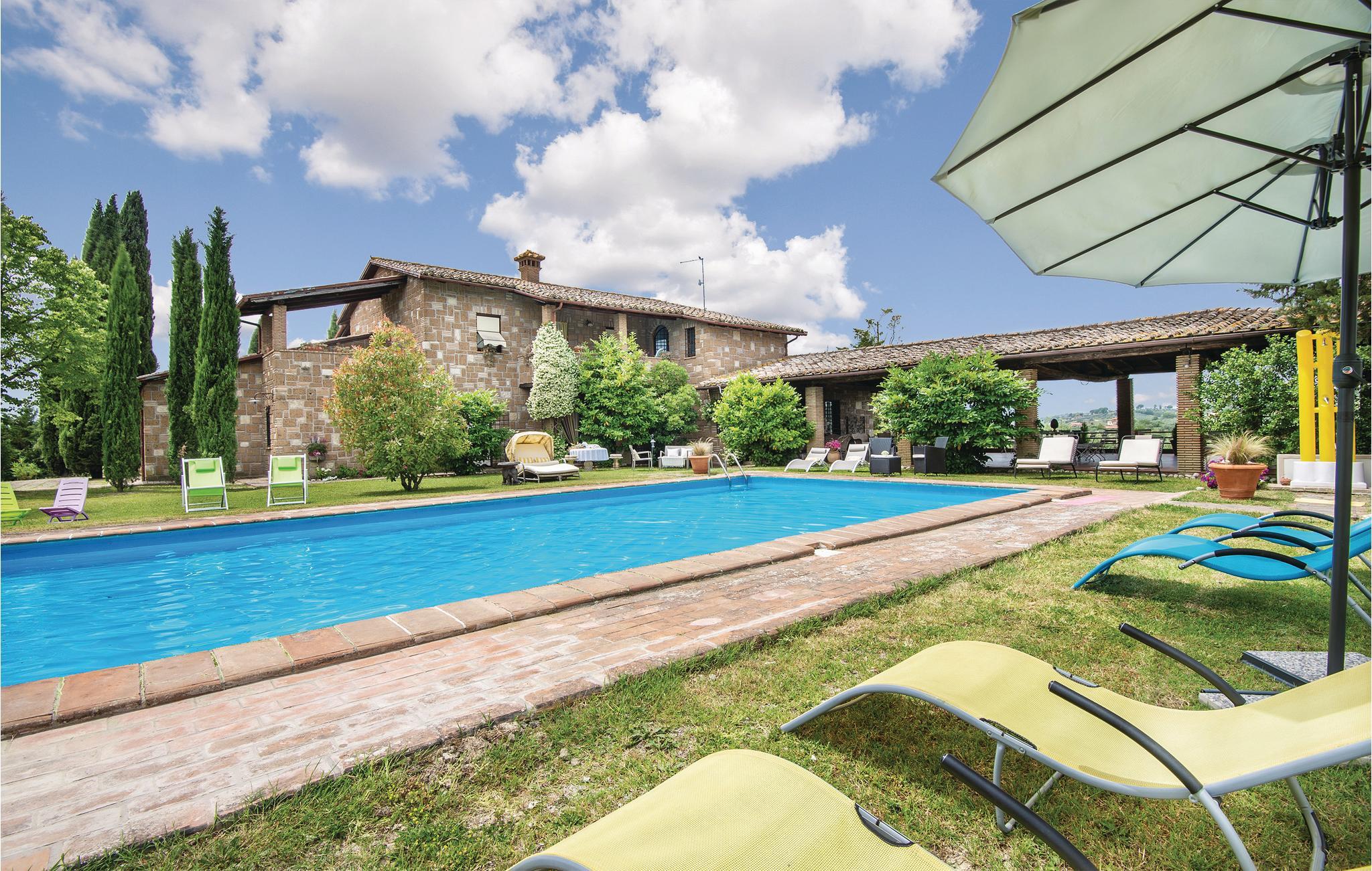Pragtfuld ferielejlighed i et tofamiliehus i Montebuono (Terni 35 km) med udsigt ud over de omliggende bakker. Elegant indrettet med rigtig god smag helt ned i de små detaljer og med et privat udendørs område med helt privat pool, med skøn veranda hvor I kan spise i det fri og nyde udsigten til det karakteristiske landskab. Landsbyen Montebuono er en meget charmerende og atmosfærefyldt by med gamle tårne og bygninger. Ideelt udgangspunkt til ture til fx Rieti (43 km), Spoleto (70 km), Todi (71 km), Viterbo (60 km) og Rom (73 km). I kan parkere på grunden. Ejer bor i husets stueetage mens I bor på første sal.