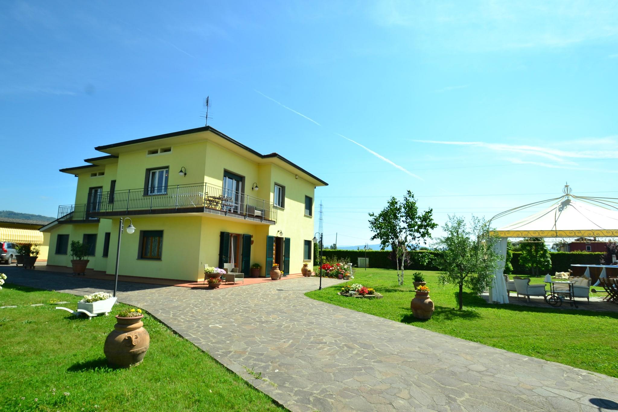 Villaen ligger i rolige og afslappende omgivelser på landet ved foden af bakken Monte Carlo. På grund af sin særlige position, omgivet af haver og marker, vil lejlighederne overraske dig med en fantastisk udsigt og en romantisk solnedgang på Monte Carlo eller den betagende udsigt over Valdinievole. Det vil give en uudslettelig hukommelse af dit ophold. Lejlighederne opretholdes i alle detaljer, stilfulde møbler giver dig en komfortabel og luksuriøs oplevelse; Køkkenet er udstyret med alt hvad du behøver, en traditionel ovn, mikroovn, opvaskemaskine, køleskab og fryser. Værelserne er lyse og rummelige og komfortable, vi kan tilføje barnesenge på forespørgsel. Den private have på 2000m2 er fuldt indhegnet og har rigelig parkering. Den store have har en swimmingpool, parasoller, et lysthus, grill og selvfølgelig stole og borde til lækre toscanske middage udenfor. Området omkring villaen er godt udstyret med barer, restauranter og supermarkeder inden for gåafstand eller en kort køretur. Motorvej adgang inden for 2 km, der forbinder hurtigt til de smukkeste byer i Toscana; såsom Lucca, Firenze, Pisa og Siena. På grund af denne strategiske beliggenhed er den ideel til et afslappende men også kulturelt ophold i Toscana.