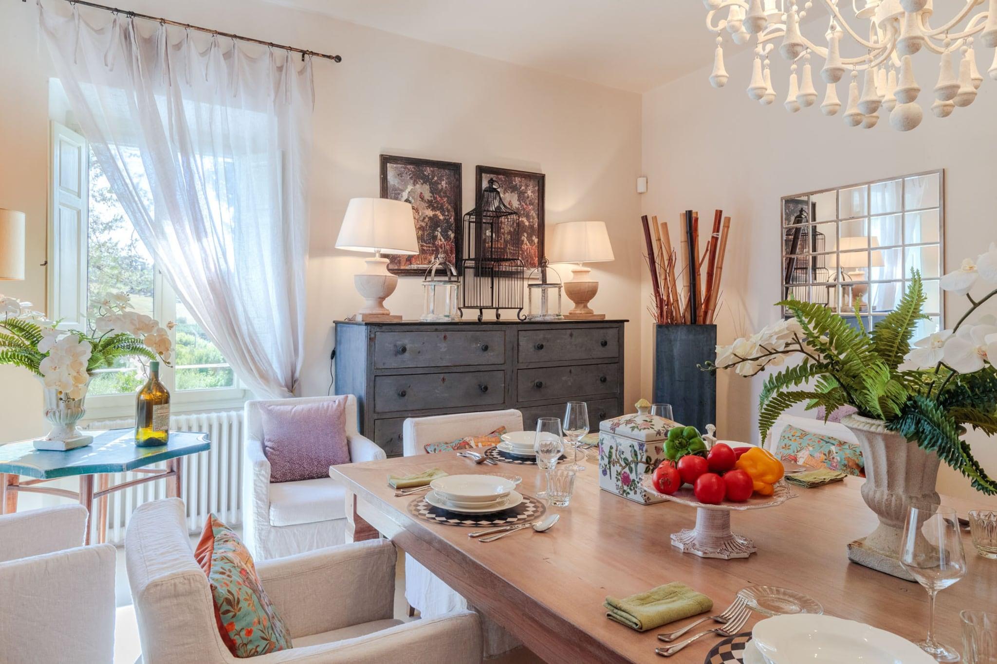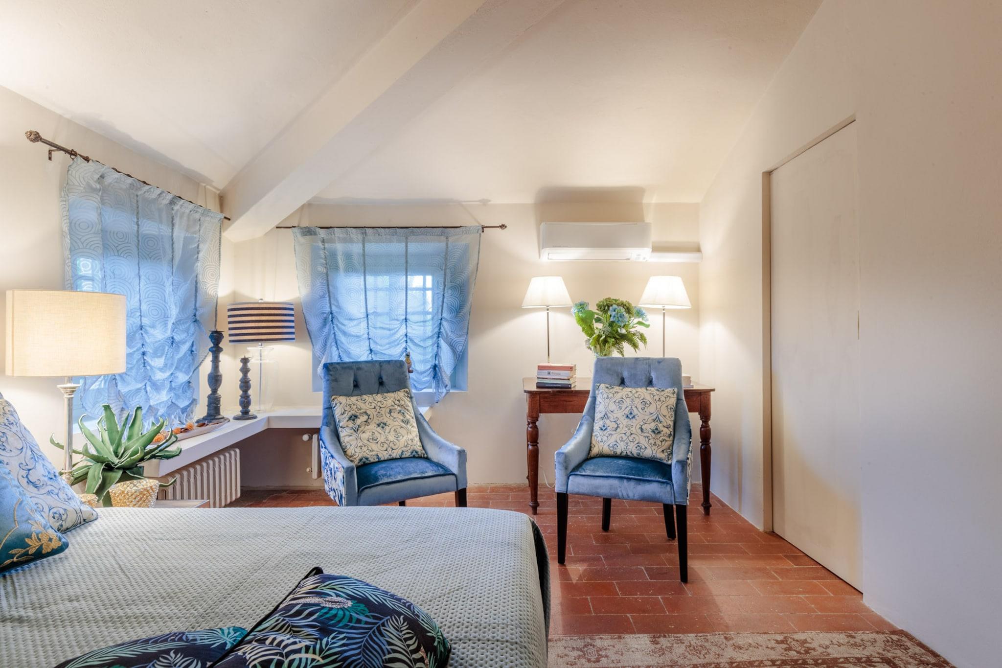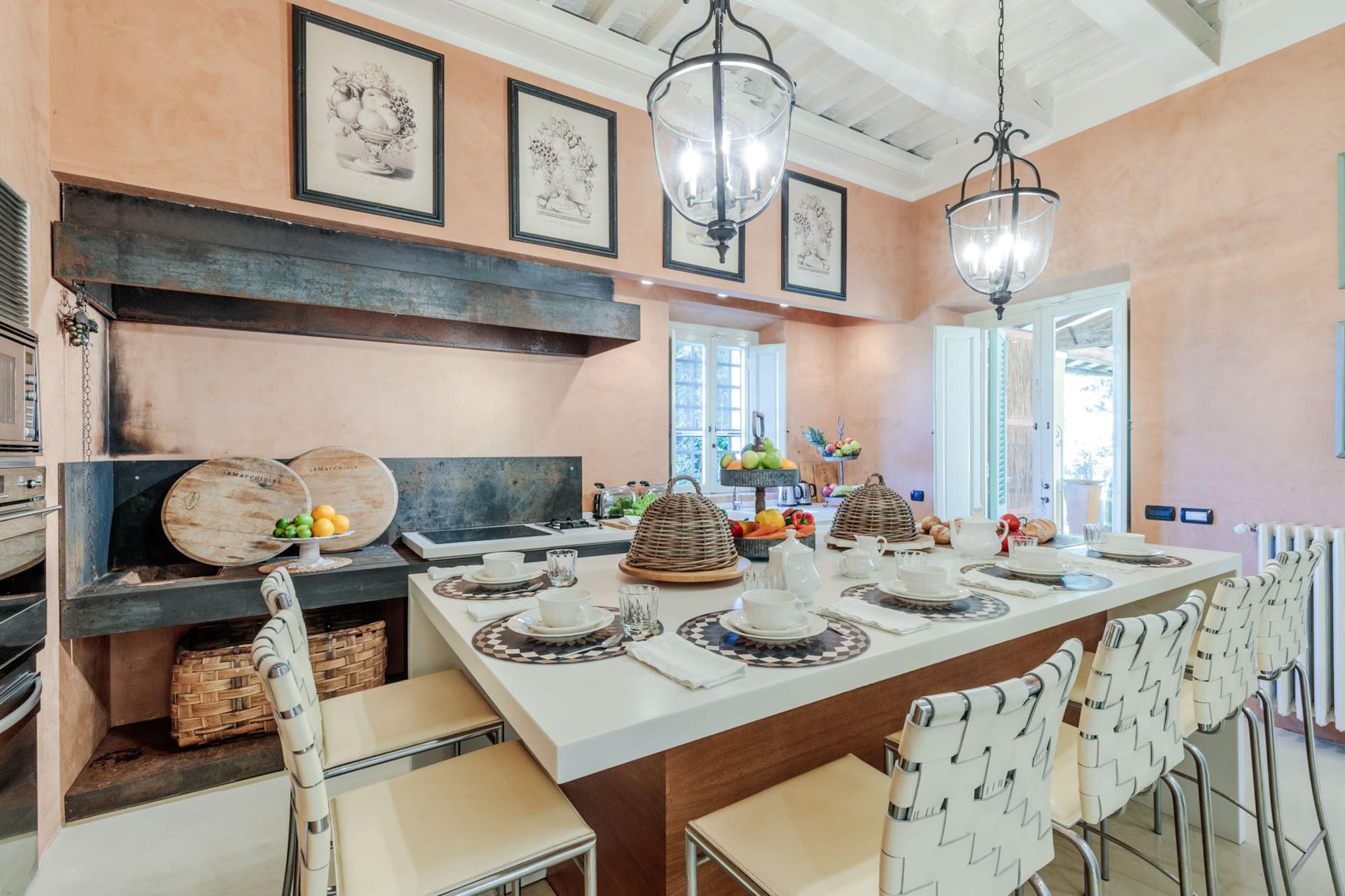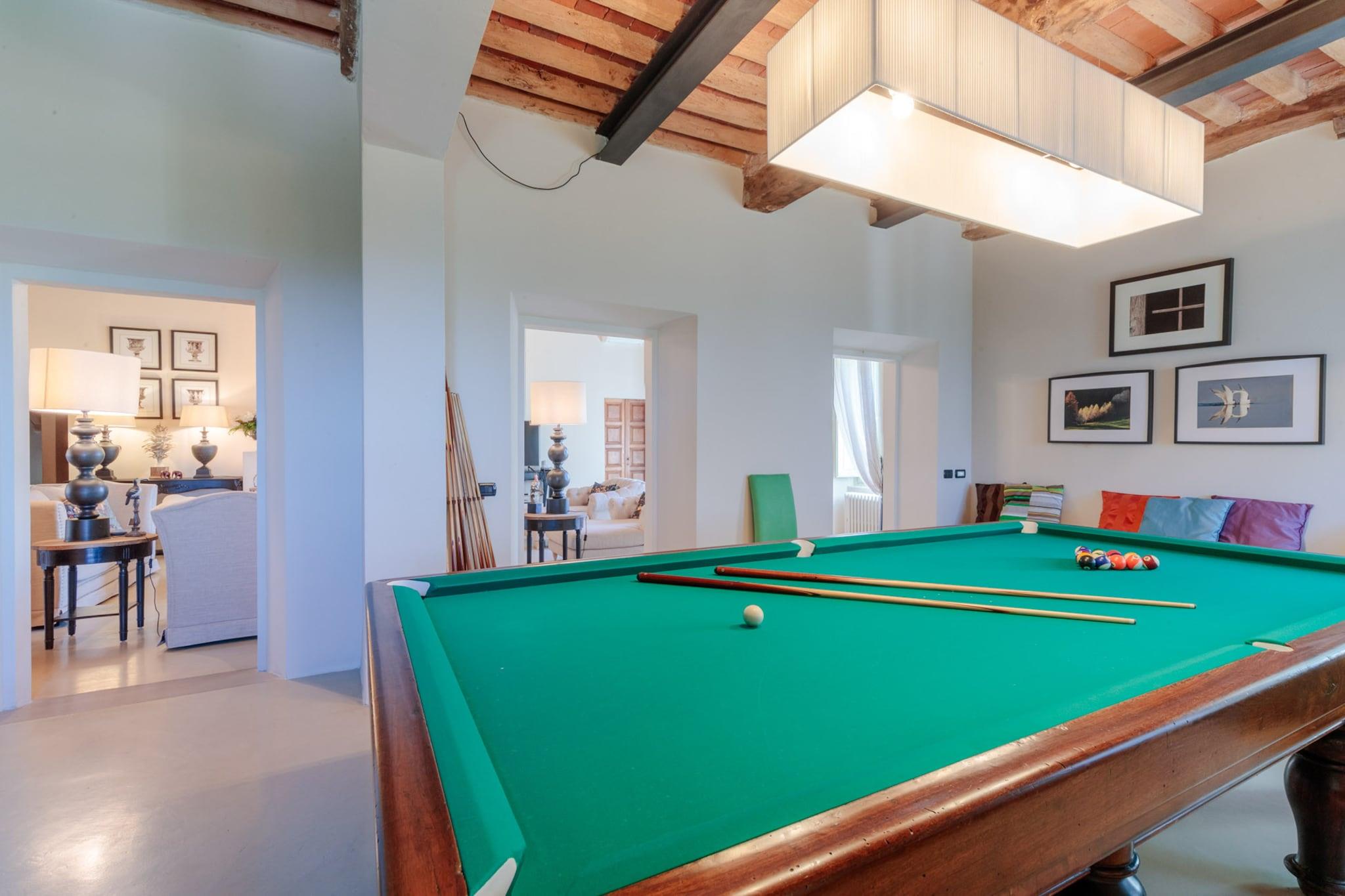 Oplev essensen af toscansk livsstil i denne smukt renoverede bondegårdsvilla, oprindeligt bygget i det 16. århundrede. Med bølgende bakker, frodige vinmarker og ikoniske cypresslunde som baggrund blander dette fantastiske tilflugtssted problemfrit traditionel charme med moderne bekvemmeligheder. Ejendommen ligger på landet i Lucca nær den historiske landsby Montecarlo og har et privat spa og en storslået panoramaterrasse, der er perfekt til spisning under åben himmel, mens man nyder den betagende udsigt over det omkringliggende landskab. Villaens grund tilbyder en oase af ro, omgivet af stenmure og høje hække for ekstra privatliv. Uanset om man slapper af ved infinity-poolen, nyder en aperitif på luksuriøse dobbeltsolsenge eller holder en grillfest for op til 20 gæster ved den udendørs spiseplads, indbyder hvert hjørne til afslapning og nydelse. Interiøret kan prale af den nyeste teknologi med fladskærms-tv, pålidelig Wi-Fi og et poolbord til underholdning, alt imens villaens fortryllende historiske karakter bevares. Gæsterne kan nemt udforske de nærliggende attraktioner, med både Lucca og Firenze kun en kort køretur væk, og fordybe sig i den lokale kultur langs den berømte vinrute i Montecarlo. For aktive gæster er der en dedikeret pickleballbane tilgængelig i dagslystimerne. Villaen tilbyder også indkvartering til bryllupper og særlige begivenheder mod et ekstra gebyr, hvilket sikrer en malerisk kulisse for enhver fest. Med indkvartering på første og anden sal plus det tilhørende høloft tilbyder denne villa idylliske omgivelser til afslapning og uforglemmelige oplevelser i hjertet af Toscana. Bemærk: Turistskat skal betales på ejendommen.