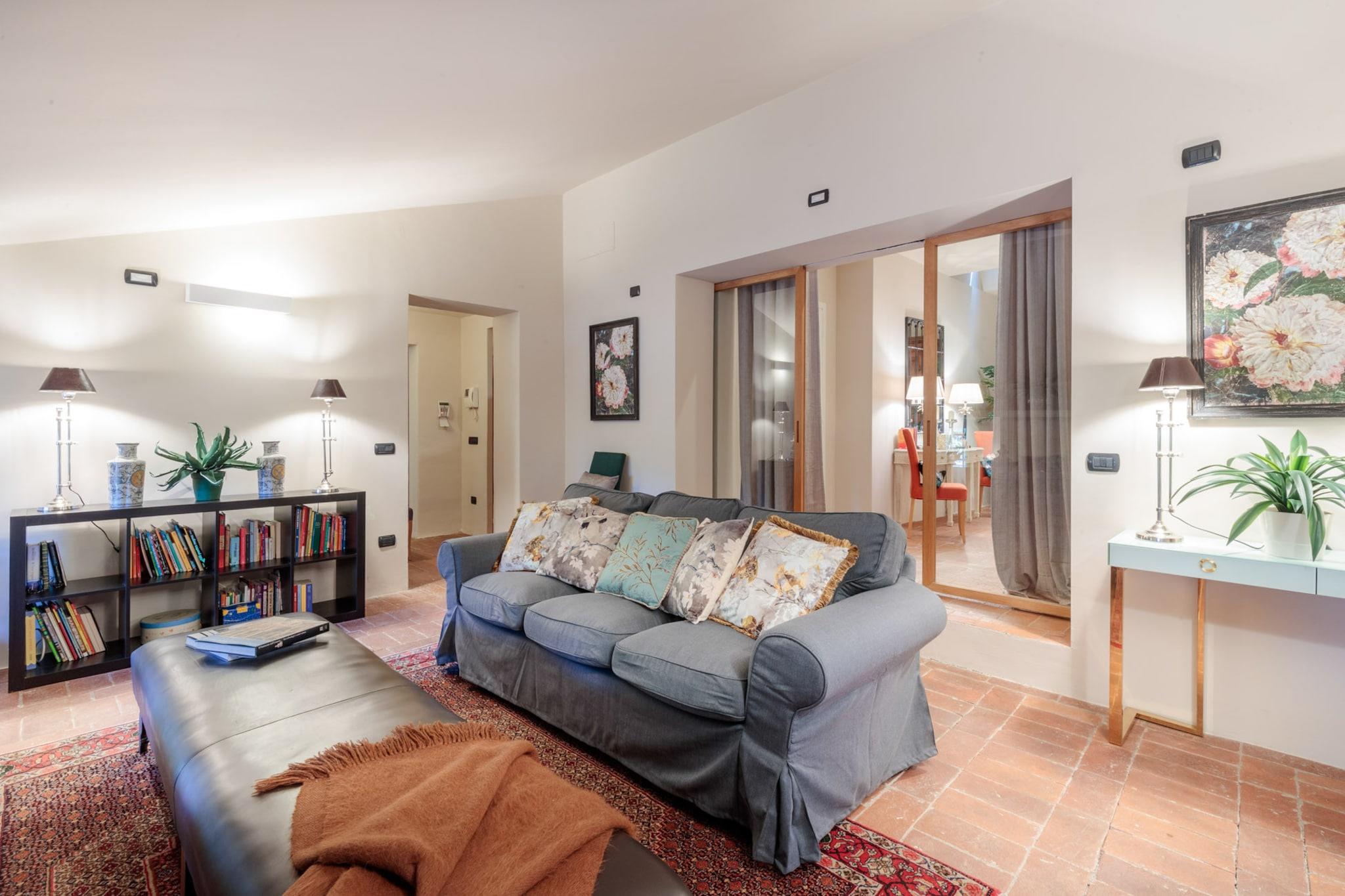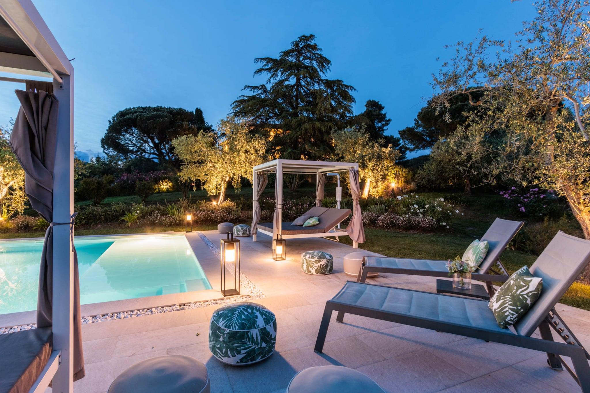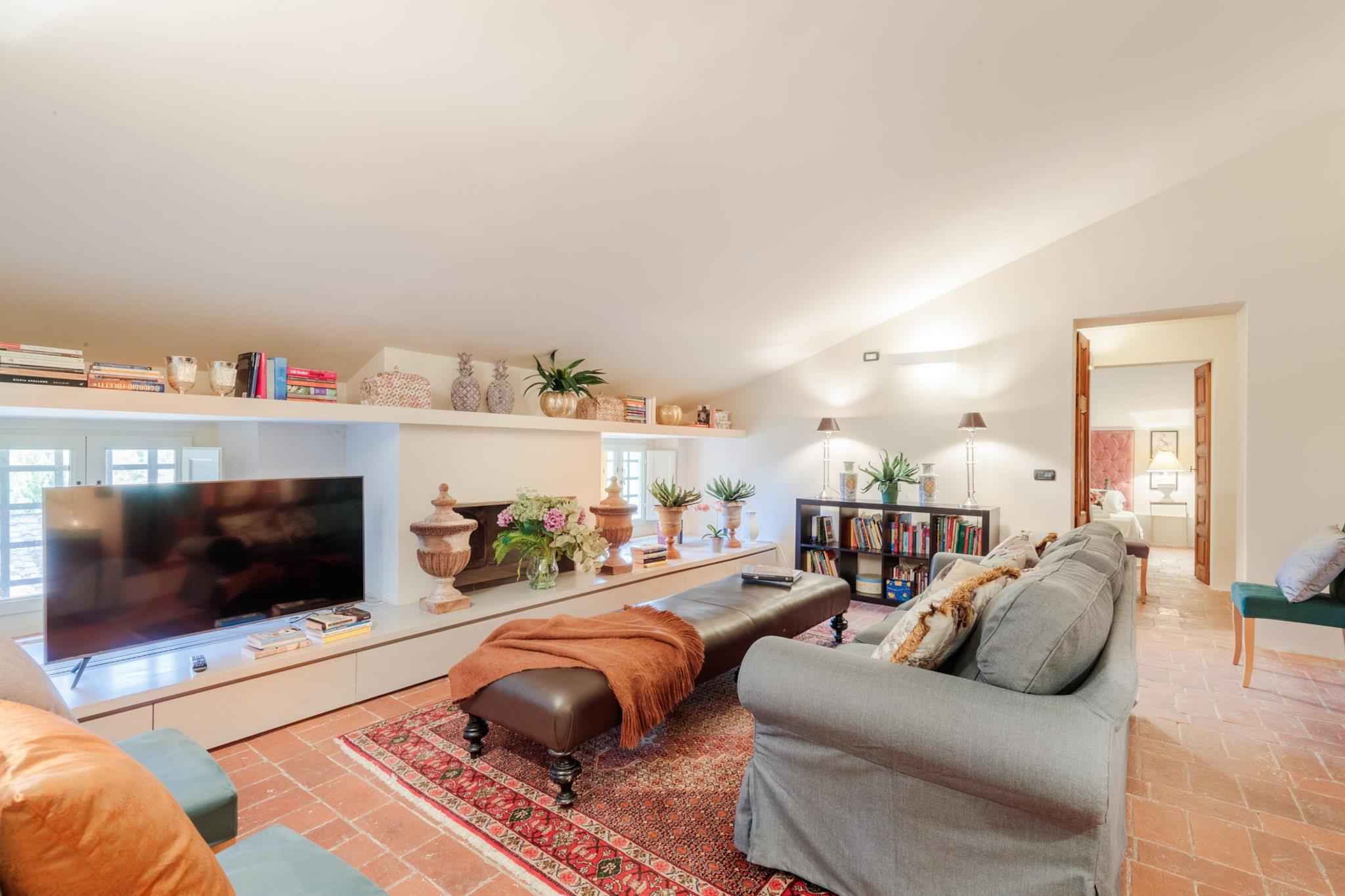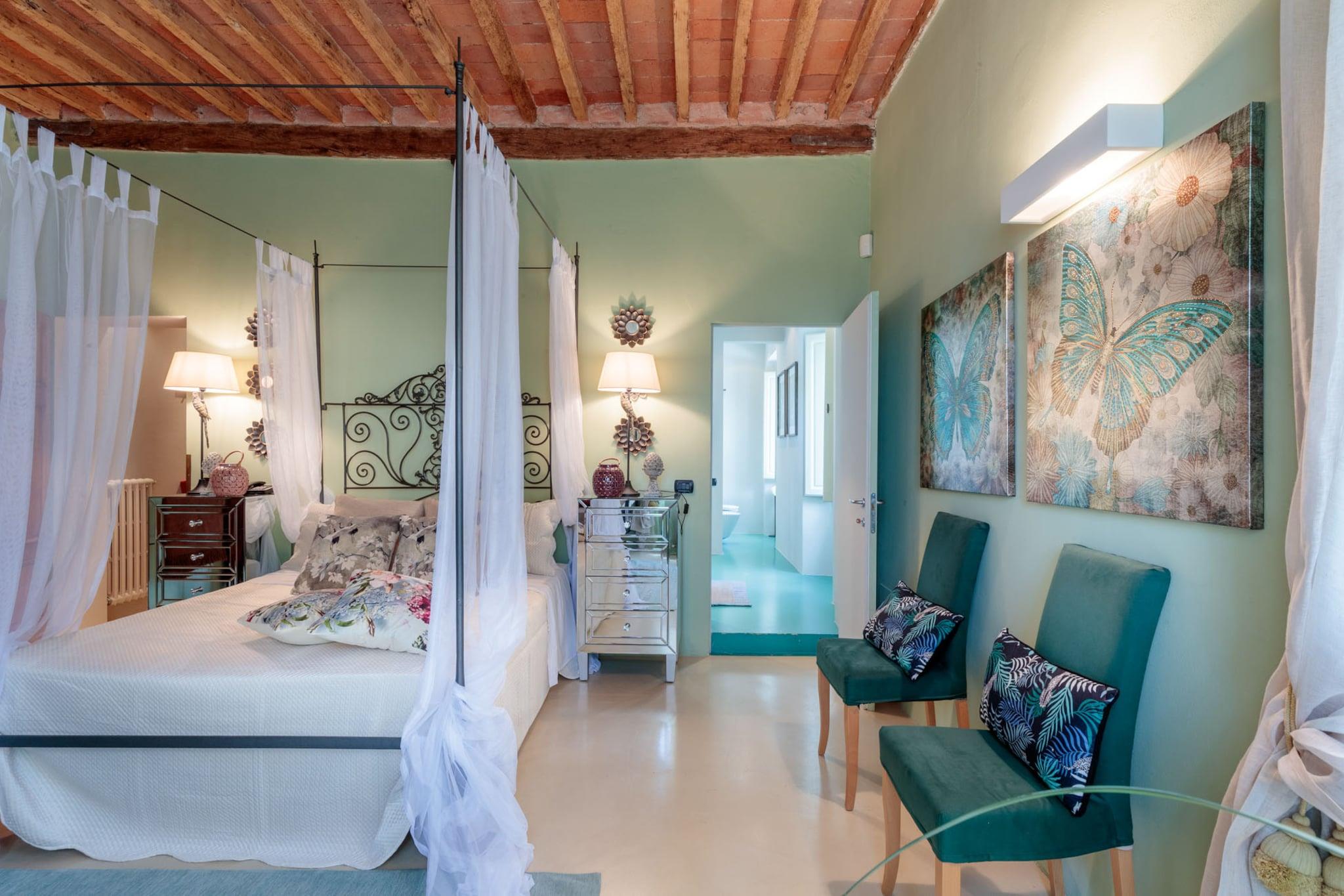 Oplev essensen af toscansk livsstil i denne smukt renoverede bondegårdsvilla, oprindeligt bygget i det 16. århundrede. Med bølgende bakker, frodige vinmarker og ikoniske cypresslunde som baggrund blander dette fantastiske tilflugtssted problemfrit traditionel charme med moderne bekvemmeligheder. Ejendommen ligger på landet i Lucca nær den historiske landsby Montecarlo og har et privat spa og en storslået panoramaterrasse, der er perfekt til spisning under åben himmel, mens man nyder den betagende udsigt over det omkringliggende landskab. Villaens grund tilbyder en oase af ro, omgivet af stenmure og høje hække for ekstra privatliv. Uanset om man slapper af ved infinity-poolen, nyder en aperitif på luksuriøse dobbeltsolsenge eller holder en grillfest for op til 20 gæster ved den udendørs spiseplads, indbyder hvert hjørne til afslapning og nydelse. Interiøret kan prale af den nyeste teknologi med fladskærms-tv, pålidelig Wi-Fi og et poolbord til underholdning, alt imens villaens fortryllende historiske karakter bevares. Gæsterne kan nemt udforske de nærliggende attraktioner, med både Lucca og Firenze kun en kort køretur væk, og fordybe sig i den lokale kultur langs den berømte vinrute i Montecarlo. For aktive gæster er der en dedikeret pickleballbane tilgængelig i dagslystimerne. Villaen tilbyder også indkvartering til bryllupper og særlige begivenheder mod et ekstra gebyr, hvilket sikrer en malerisk kulisse for enhver fest. Med indkvartering på første og anden sal plus det tilhørende høloft tilbyder denne villa idylliske omgivelser til afslapning og uforglemmelige oplevelser i hjertet af Toscana. Bemærk: Turistskat skal betales på ejendommen.