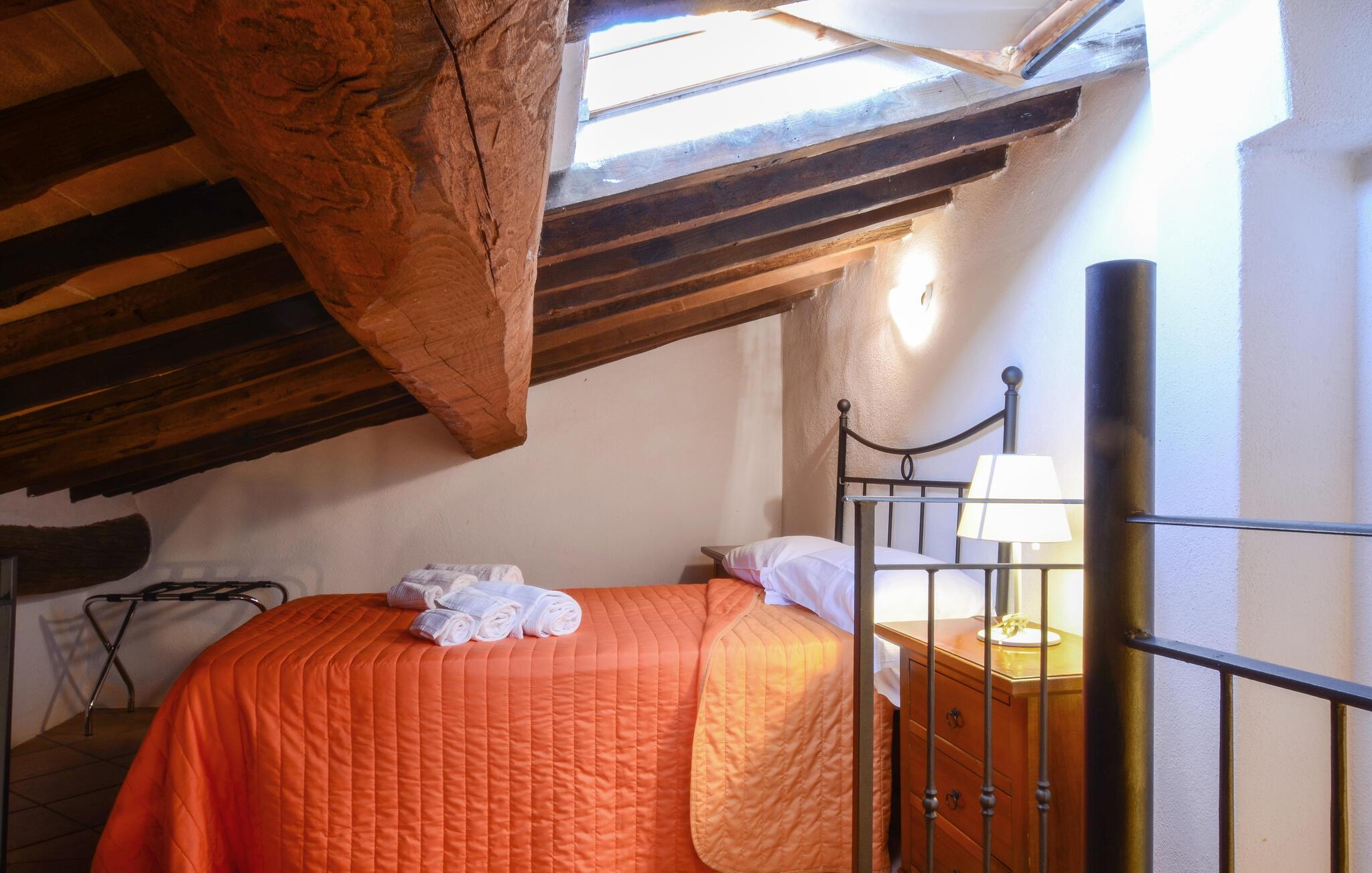 Denne autentiske og unikke ferielejlighed byder jer velkommen til en omhyggeligt restaureret ejendom fra det 15. århundrede og tilbyder et komfortabelt tilflugtssted i idylliske omgivelser, hvor I kan lægge hverdagen langt bag jer. Tilbered lækre pastaretter, planlæg jeres udflugter over et glas vin og læn jer tilbage om aftenen med et brætspil eller en god bog på sofaen.