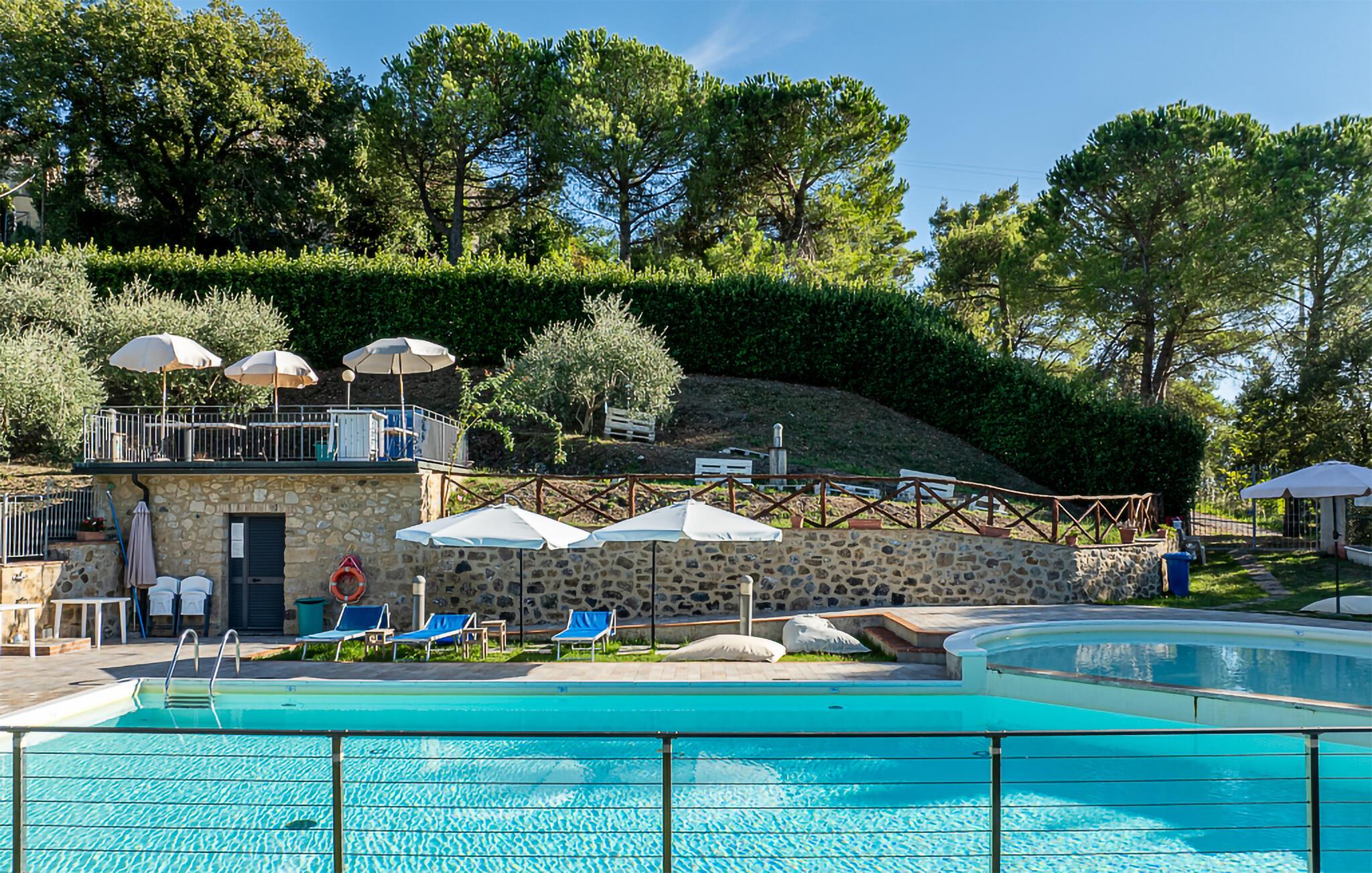 I de varme sommermåneder inviterer den store, fælles pool jer til at nyde solen i timevis. Lad op på en liggestol, og server jer selv måltider i det romantiske spiseområde under vinrankerne.
