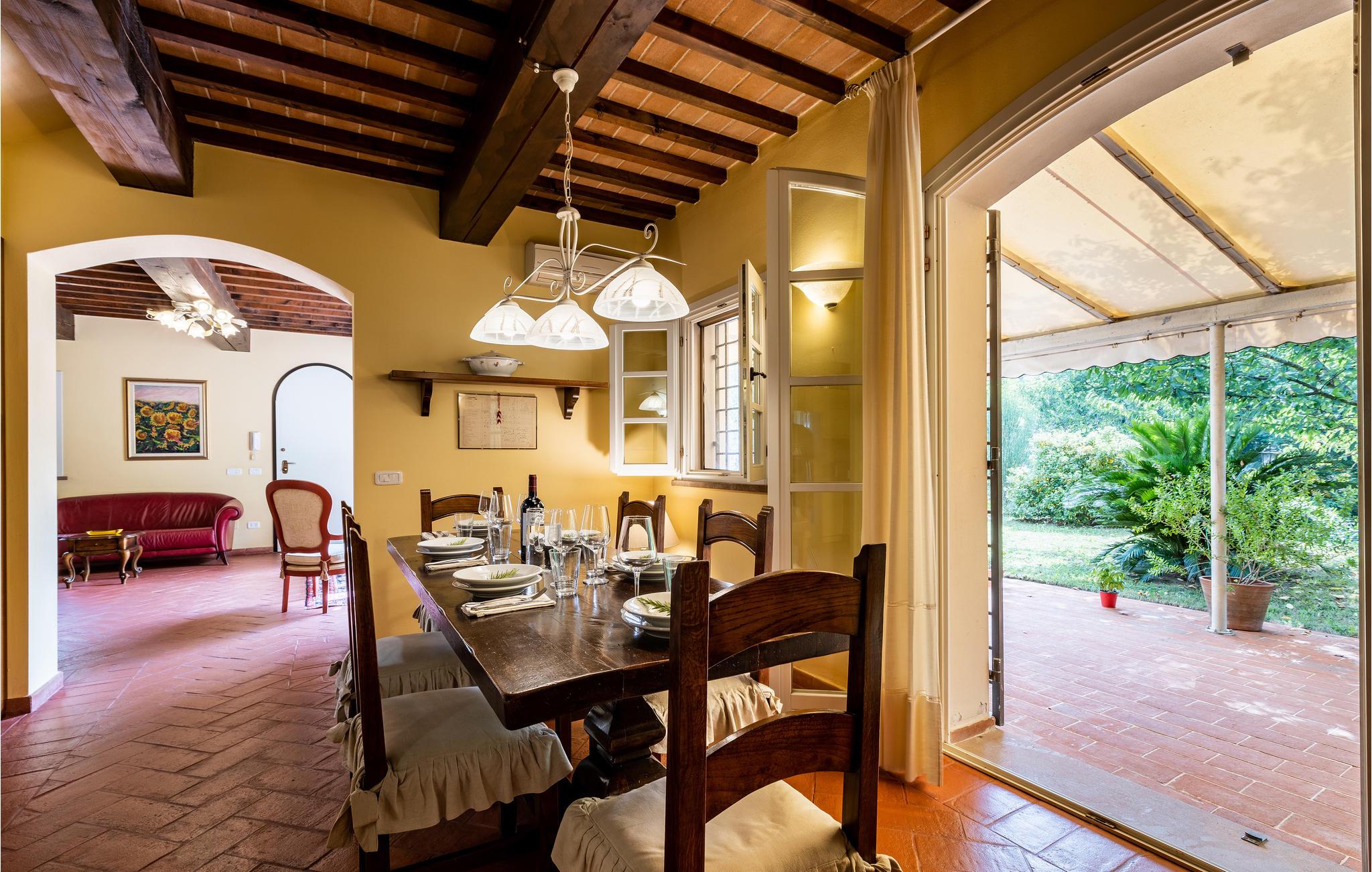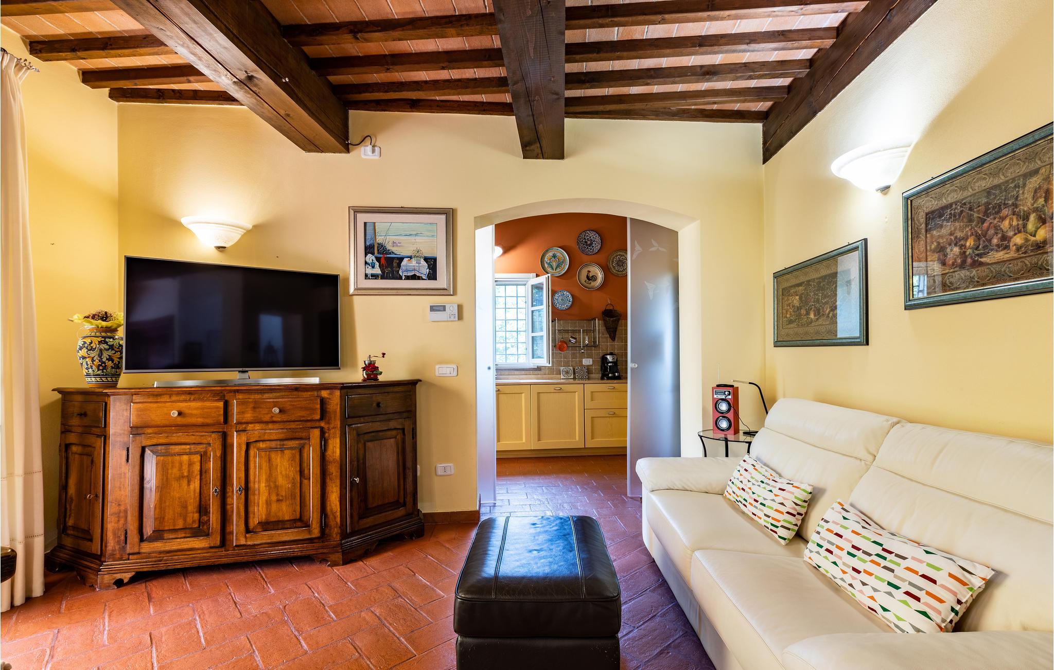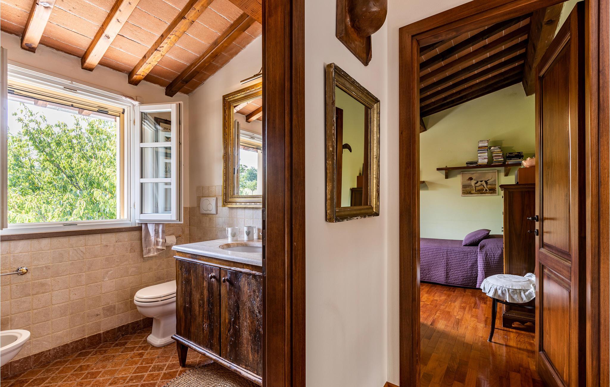 Hold en dejlig ferie i dette attraktive feriehus med en skøn beliggenhed. Velkommen til dette attraktive hus, der tilbyder dig de ideelle rammer for en afslappende ferie tæt på naturen. Nyd en afslappende tid med familien i huset, som imponerer med venlige farver, tunge trælofter og smukke gamle møbler. Tilbring hyggelige aftener her efter aktive dage med spil og gode samtaler og sæt fødderne op i sofaen. Nyd dejlige timer udendørs på terrassen, uanset om du læser en bog i skyggen eller nyder udsigten over haven, vil du helt sikkert slappe af på ferien. De første vandrestier løber i nærheden af huset, lad dig fortrylle af det toscanske landskab med dets vinmarker og cypresser. Kan du lide det hurtigere, er der også gode mountainbike stier her. Tag til kysten for en dag, og hav en god tid på stranden. Glæd dig til en afslappende ferie i dette feriehus med en smuk beliggenhed.
