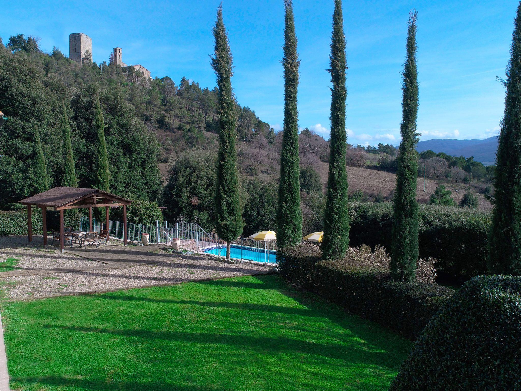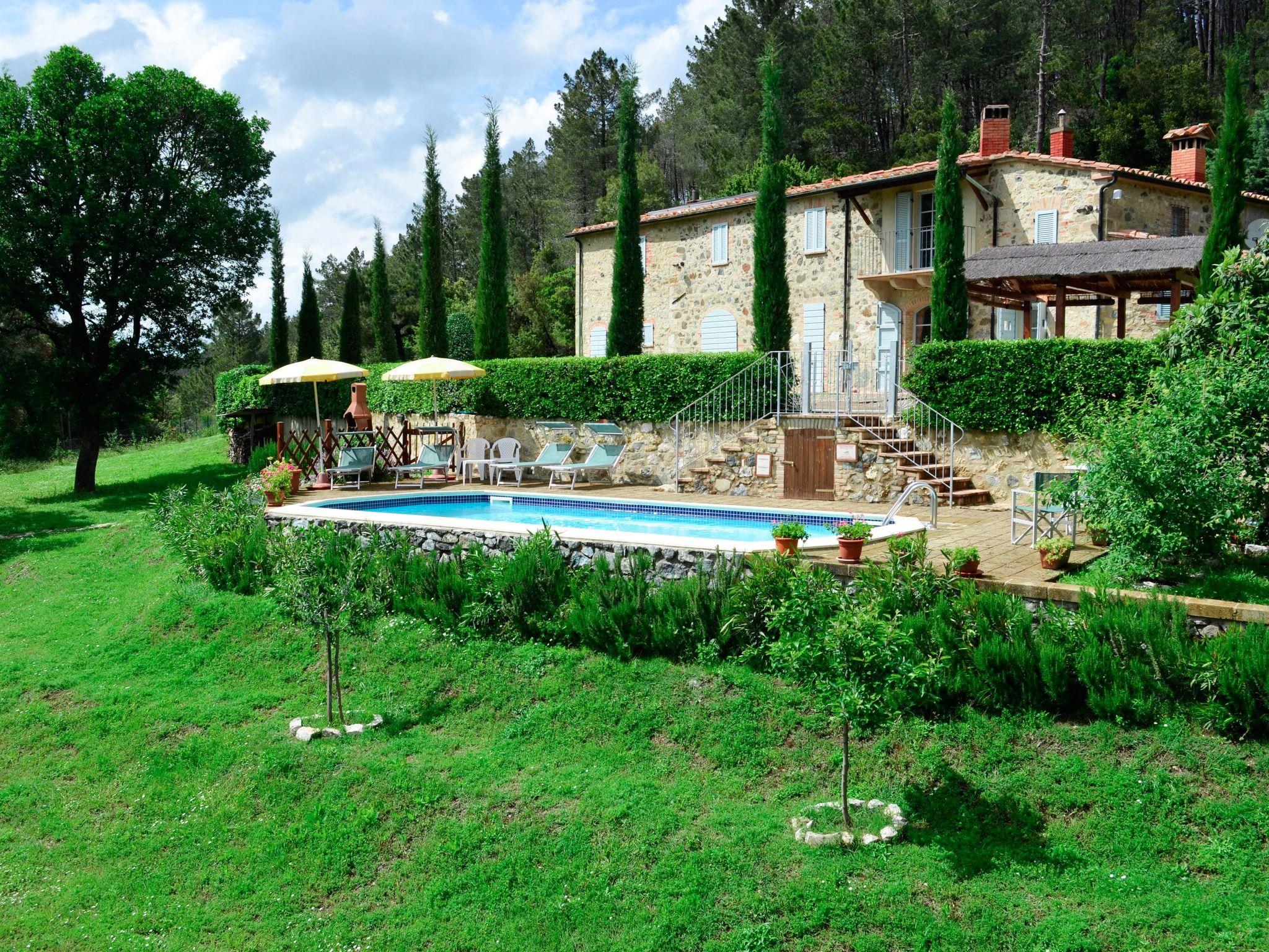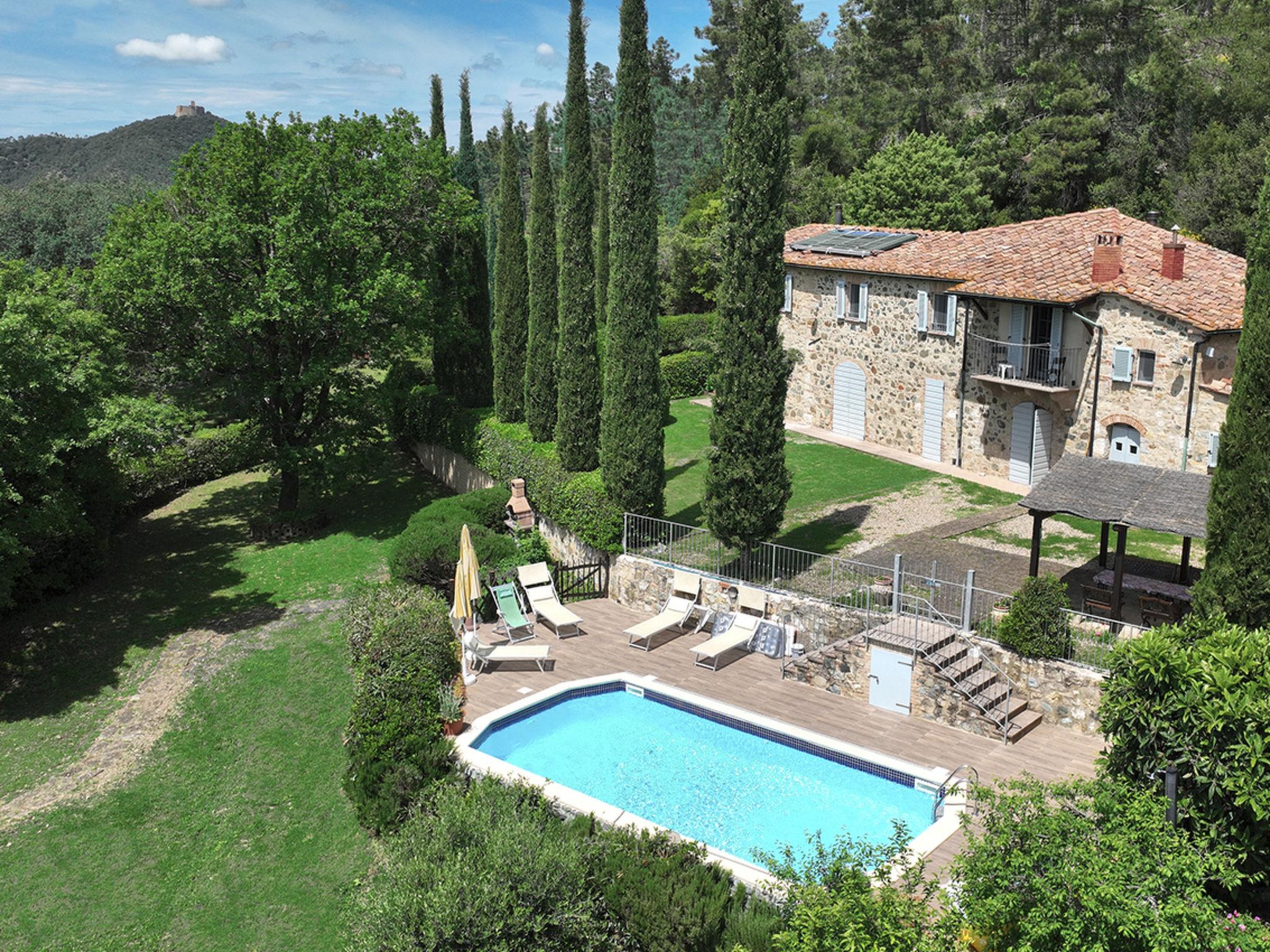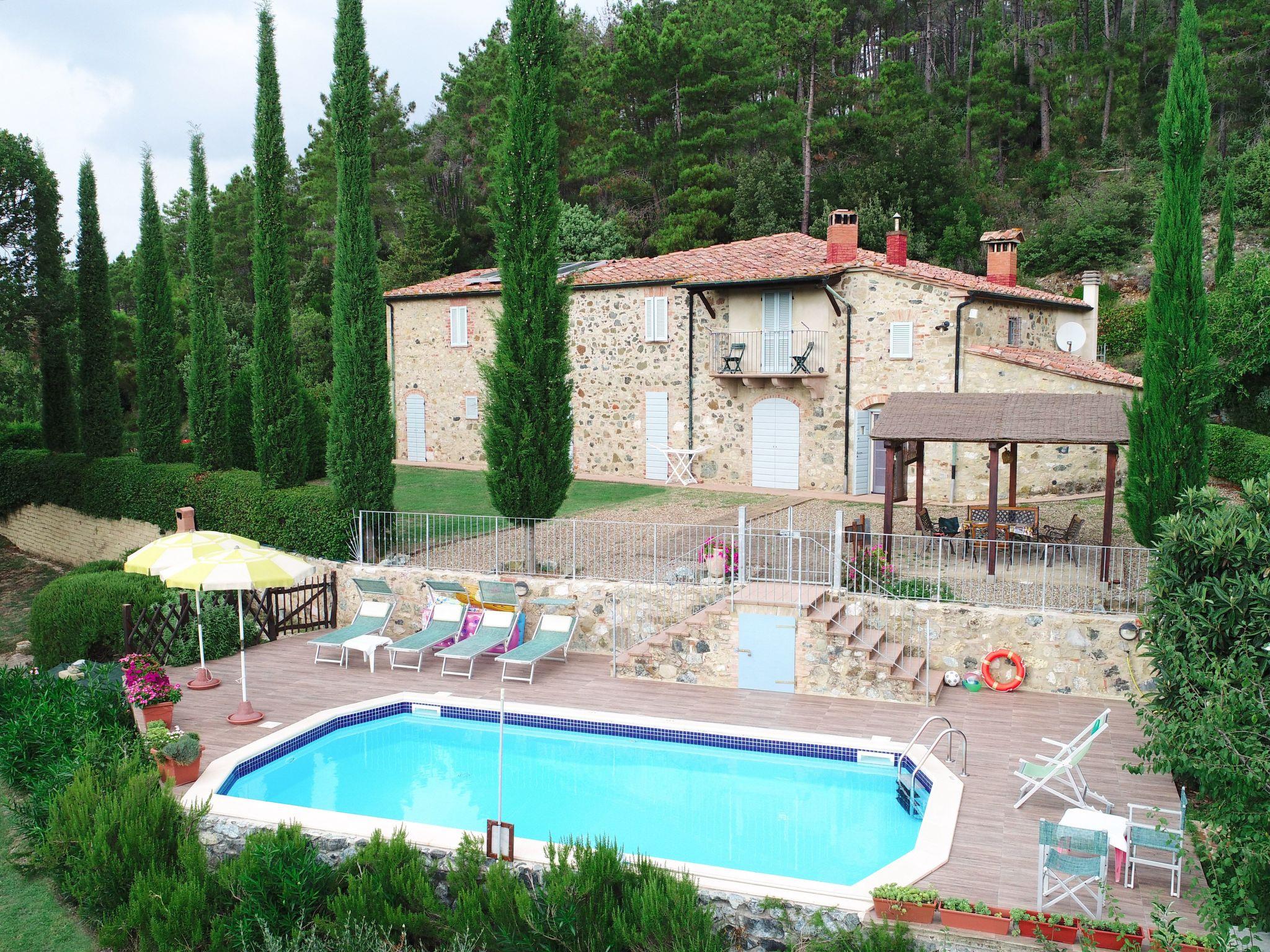 Private villa surrounded by greenery located between the art cities of Siena and Volterra, with private swimming pool and jacuzzi for exclusive use. From the villa it is possible to enjoy the view of the Rocca Sillana fortress and the medieval tower of Montecastelli Pisano. A relaxing environment perfect for both summer holidays and romantic honeymoons. A high level of privacy will accompany your vacation. Thanks to the third additional room (extra service) you can stay up to a maximum of 7 people. So you can relax, away from the smog and city noise. The villa has an outdoor heated Jacuzzi for 5 people and a swimming pool overlooking the lawn.Thanks to the location, you can easily visit the most important art cities of Tuscany, such as Siena, Florence, Volterra, Pisa, San Gimignano, the Chianti cellars and many small medieval villages. A few hundred meters from the villa is the medieval village of Montecastelli Pisano where you will also find a restaurant / pizzeria and bar. We will be at your disposal throughout your stay, you will have assistance and support from the day of your arrival in which we will deliver the keys to the day of your departure.Short description 1Other rooms: room with washing machine and ironing boardTotal kitchens: 1SurroundingsSports facilities in the surrounding area: Climbing, Soccer field, Riding school, TennisSurroundings 1Excursion destinations: Siena, Volterra, Florence, Pisa, San Gimignano, Bolgheri.Garden and outdoor spacesGarden facilities: Barbecue, Garden furniture availableAdjacent leisure facilities: Swimming pool, Private outdoor swimming pool, Tub, Whirlpool tubServices 1Other: It is possible to request a chef for one or more evenings to cook for you inside the villa and then serve you the dishes.Outside: Balcony; Barbecue; Garden; Garden furniture; Parking available; Private parking; Private swimming pool; Terrace ; Veranda;General: 3 double bed; Renovation year: 2009; Bathrooms: 3; 2 bedrooms +1 extra bedroom; Land area: 2000 m;Living: Fireplace; Computer; Sofa bed; DVD player; Radio; TV; Satellite TV;Bathroom / WC: Shower; Fon; Toilet;Cooking: Kettle; Stove; Electric cooker; Oven; Freezer; Fridge; Dishwasher; Coffee machine; Coffee machine; Microwave; Toaster;Other: Non smoking accommodation; Vacuum; Internet; Washing machine; Children's bed; Heating; Cooling fan; View of the mountains; WIFI;Distances (by air, approx.): Airport distance: 100.00 km; Sea distance: 50.00 km; Distance to nearest village: 2.00 km; Distance from restaurants / bars: 1,00 km; Distance station: 43.00 km; Distance to supermarket: 1.00 km;SurroundingsSports facilities in the surrounding area: TennisGarden and outdoor spacesGarden facilities: Barbecue, Garden furniture availableAdjacent leisure facilities: Swimming pool, Whirlpool tub