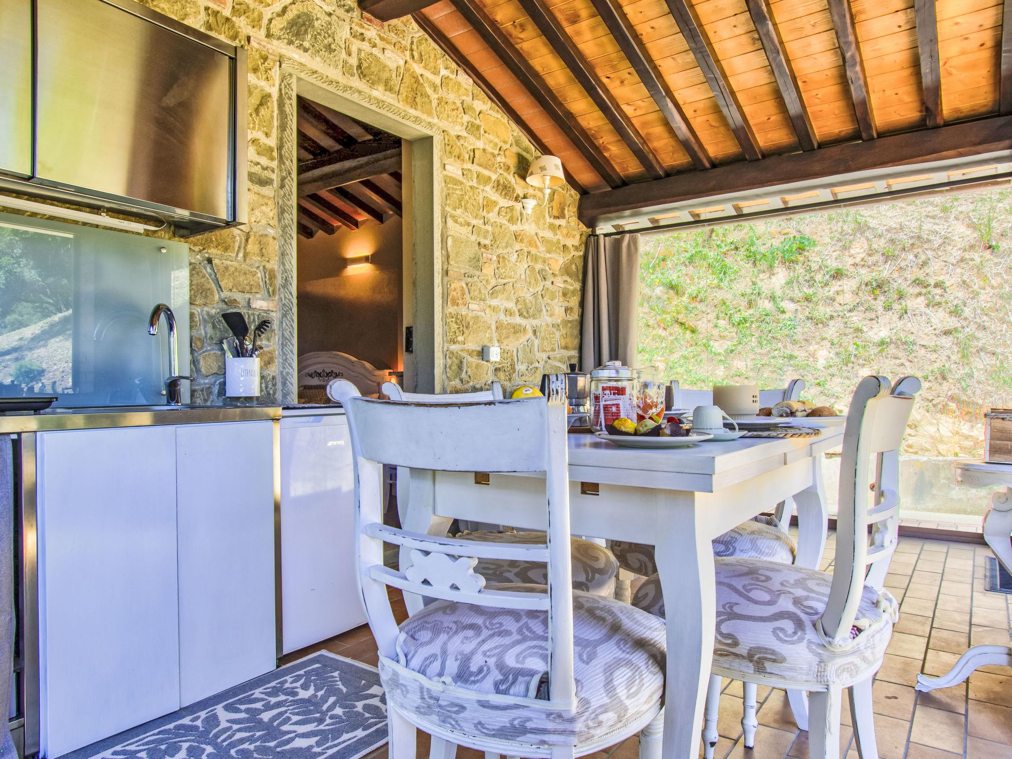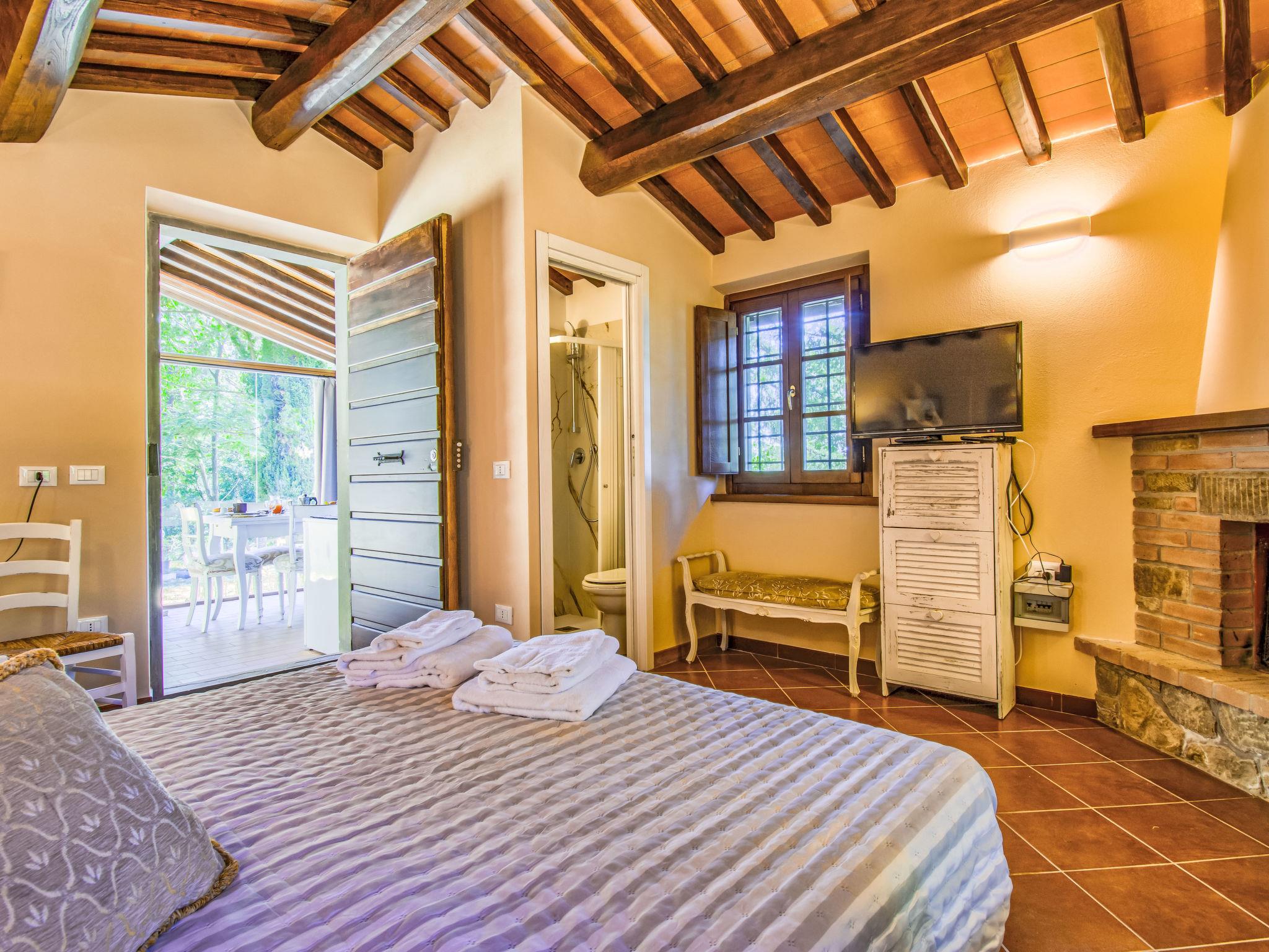 Modern, cosy chalet "Rifugio di Igor", 670 m a.s.l., detached, renovated in 2025, surrounded by trees. In a secluded, quiet position, in the countryside, in the woods. Private: park 1'500 m2 (fenced), beautiful garden to relax. Outdoor shower, hot tub, garden furniture, barbecue. In the house: air conditioning, washing machine, heating available only from 15.Nov. - 15.Apr.. Steep, narrow motor access to 250 m from the house (via unmade road, mountain road). Parking (for 2 cars) on the premises. Shop 2 km, supermarket 2 km, shopping centre 2 km, bus stop 2 km. Walking paths from the house 50 m, cable car 5 km. Nearby attractions: Montecatini Terme 6 km, Lucca 30 km, Firenze 55 km, Torre di Pisa 55 km. Please note: baby equipment on request (included). Object suitable for 2 adults + 1 child. Residence with electric gates.