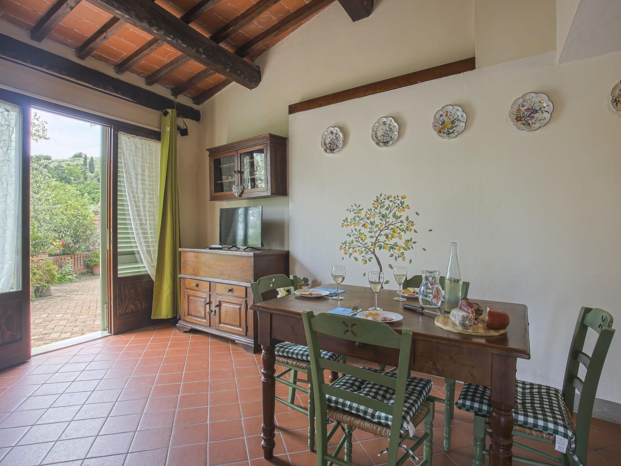 Agriturismo "Borgo della Limonaia", 130 m a.s.l., surrounded by trees and fields. 4 houses in the residence. 7 apartments in the residence. 4 km from the centre of Montecatini Terme, 30 km from the centre of Lucca, 50 km from the centre of Firenze, in a secluded, sunny position on a slope, 55 km from the sea, in the countryside. For shared use: property 6 ha, beautiful terraced garden with plants and trees, swimming pool (11 x 6 m, depth 120 - 160 cm, seasonal availability: 25.Apr. - 15.Oct.). Outdoor shower, patio, terrace, garden furniture, children's playground, pool maintenance by the owner/gardener. In the complex: sauna, steam room, hot tub (all extra), table tennis (all included), table football, washing machine (for shared use, extra). 200 m long narrow motor access to the house. Parking at 200 m on the premises. Grocery 600 m, supermarket 1.5 km, bus stop 3 km, railway station "Montecatini Terme" 4 km, sandy beach "Lido di Camaiore" 55 km. Golf course (18 hole) 10 km. Local sale of farm products.