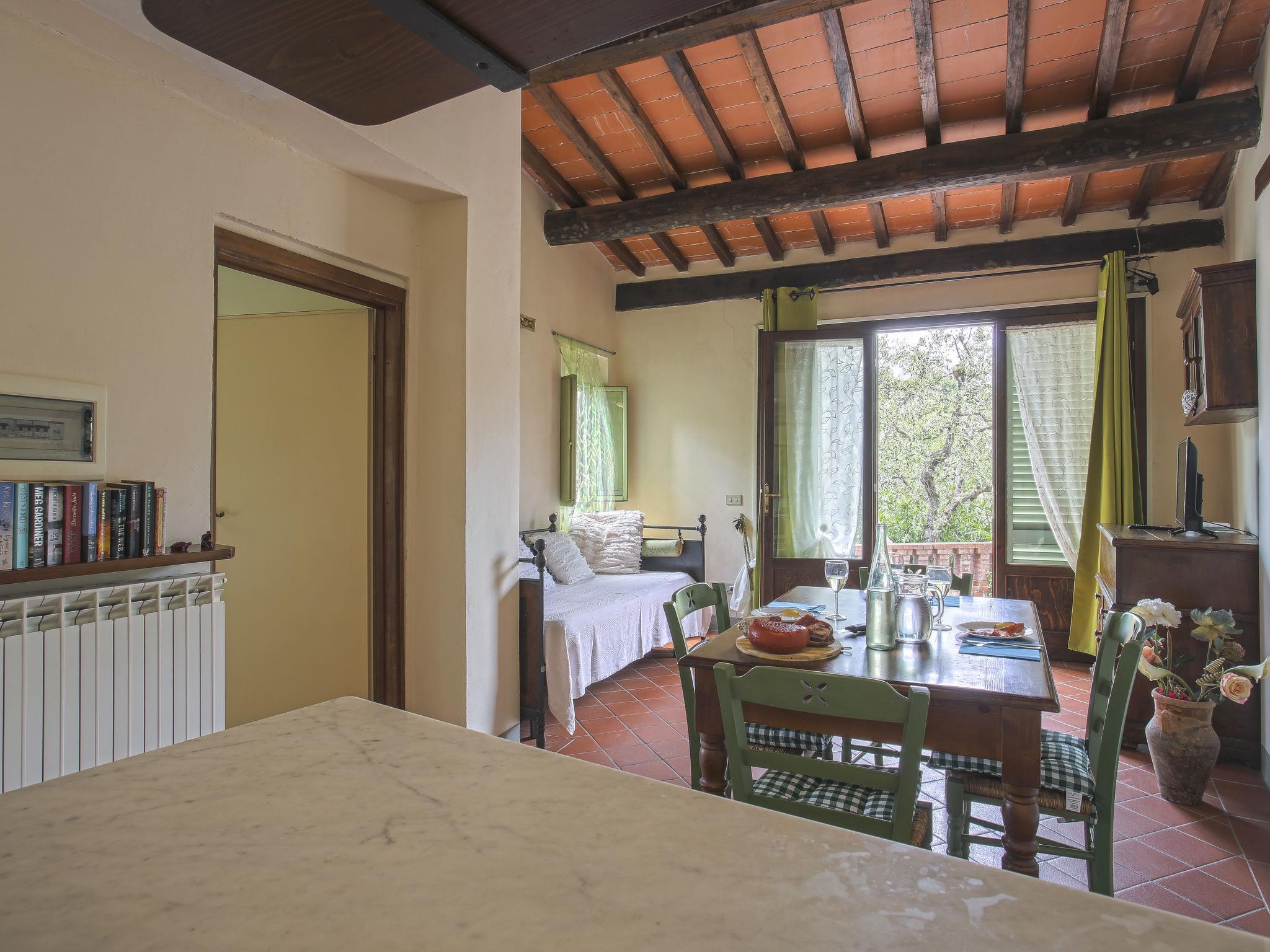 2-room apartment 45 m2, on the ground floor. Rustic furnishings: living/sleeping room with 1 sofabed, dining table and satellite TV. Exit to the terrace. 1 room with 1 french bed (160 cm). Exit to the terrace. Small, open kitchen (4 gas rings, electric coffee machine, combination microwave). Shower/bidet/WC. Gas heating. Terrace 10 m2. Terrace furniture. Beautiful distant view of the countryside. Facilities: children's high chair, baby cot for up to 2 year olds. Internet (WiFi, free). Parking (1 car) at the house. Please note: non-smokers only. Maximum 1 pet/ dog allowed. Private entrance. No mandatory extra charges to be paid on-site except for local tax. IT047013B543P9SFGP