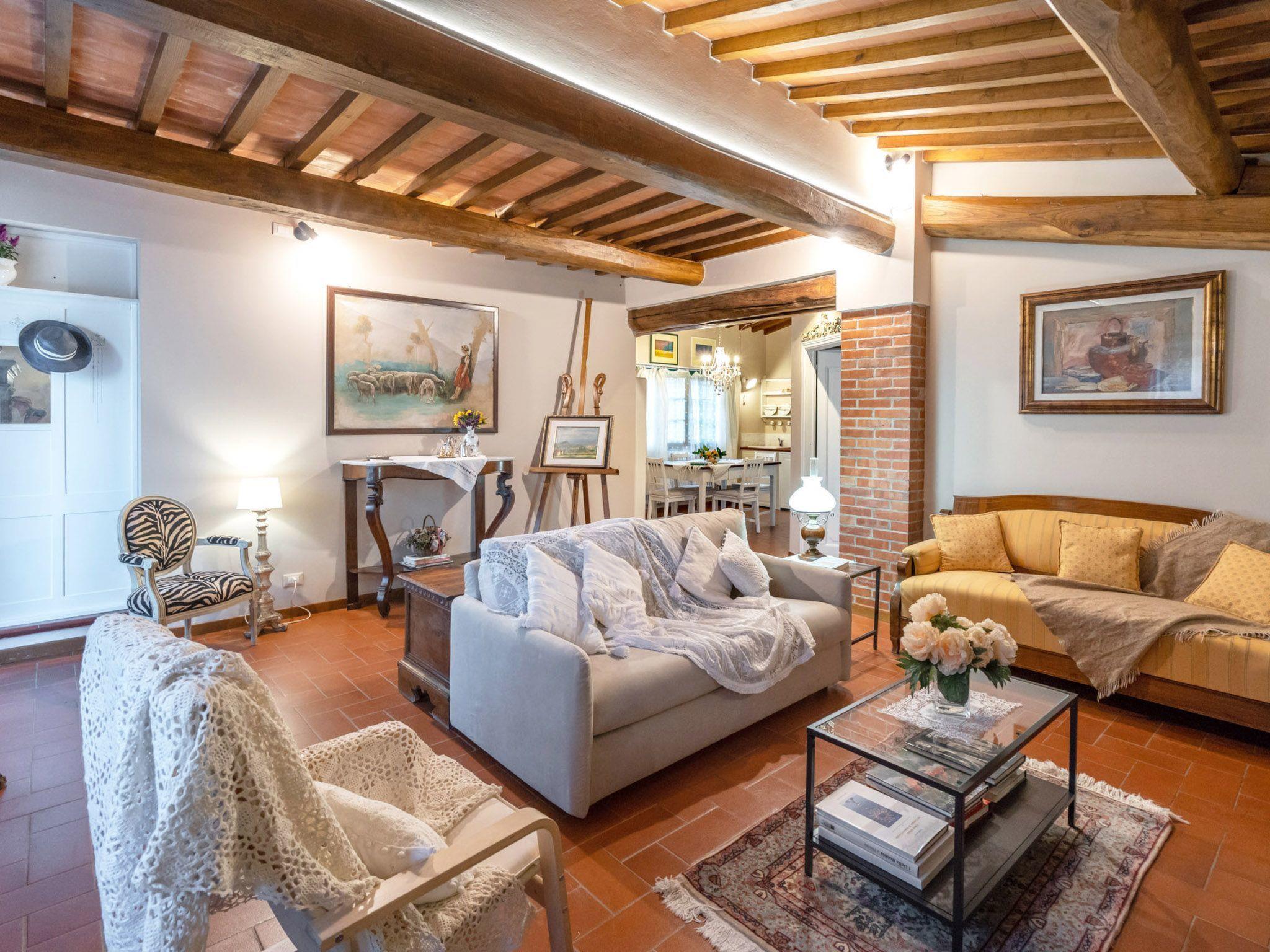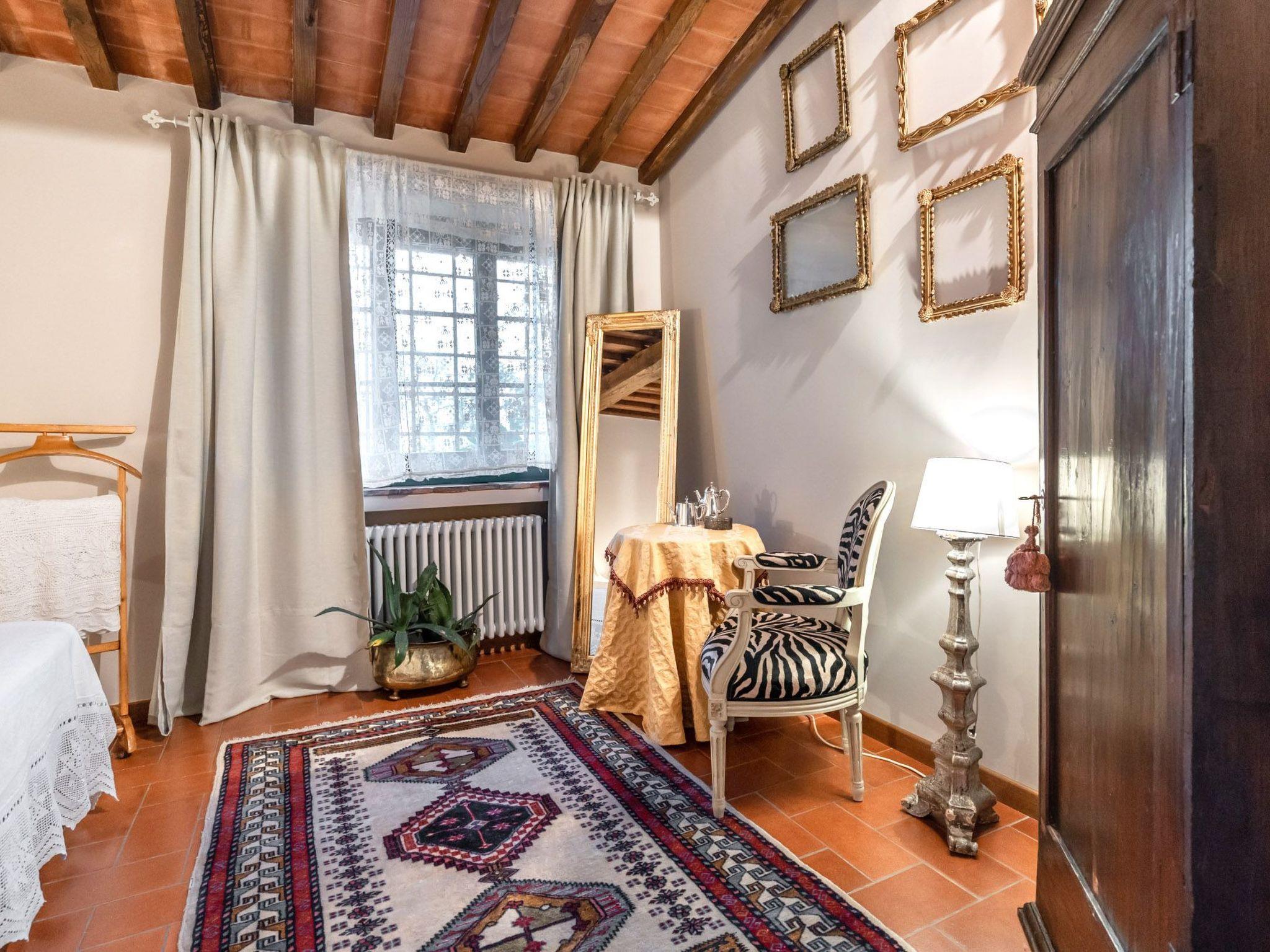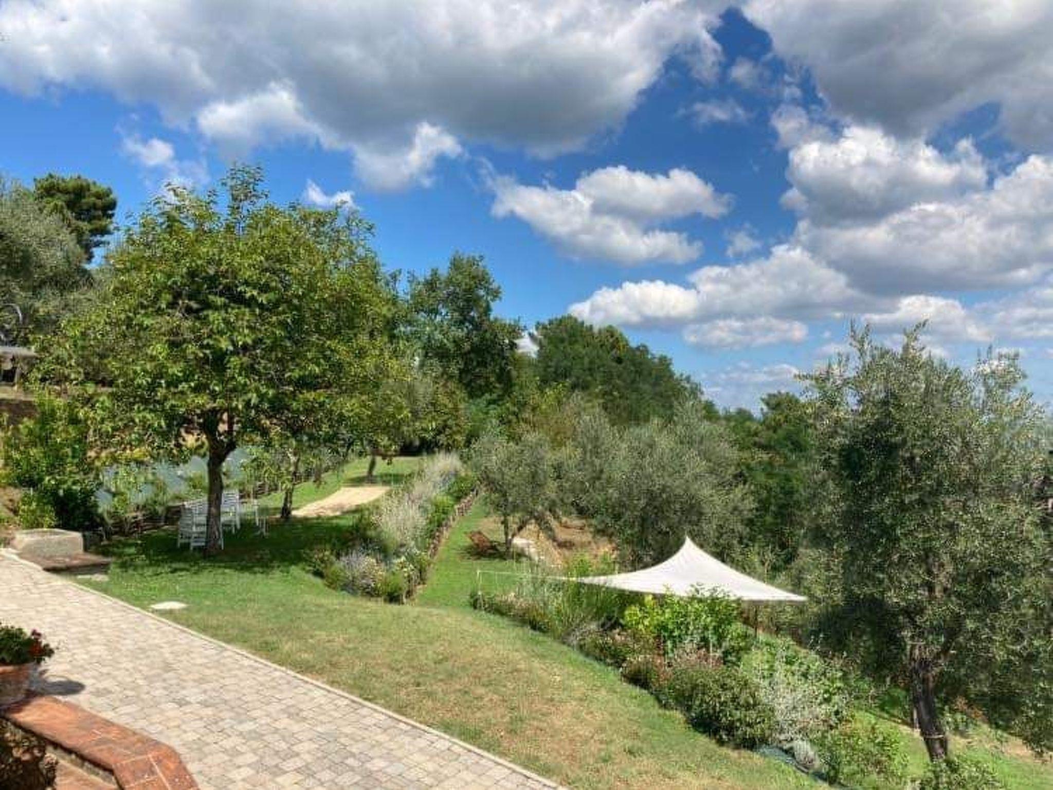 The rustic and elegant ambience, close to the spa town of Montecatini, is in a hillside position and offers a truly cosy place to spend delightful holidays visiting northern Tuscany. A large garden with many areas for relaxation and a bath to give you maximum well-being. In front of the house a well-kept area with wrought-iron table and chairs awaits you for delicious breakfasts. For private use. Nearby, also for private use, you will find a table and chairs perfect for your romantic dinners.