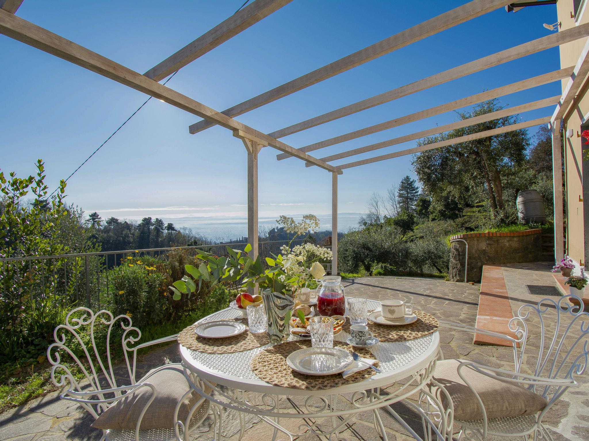 Single-family house "Il Paradiso", 600 m a.s.l., 2 storeys, detached, built in 1965, renovated in 2023, surrounded by trees. Outside the resort, 6 km from the centre of Montecatini Terme, in a quiet, sunny position on top of a hill. Private: large garden 1 ha (fenced) with trees, swimming pool (above ground) heated (2 x 2 m, depth 90 cm, seasonal availability: 20.May. - 15.Sep.). Hot tub, pergola, barbecue, children's playground. In the house: WiFi, washing machine, tumble dryer, heating available only from 15.Nov. - 15.Apr.. Parking (for 4 cars) at the house. Shop 2 km, supermarket 2 km, shopping centre 2 km, bus stop 2 km. Walking paths from the house 100 m, cable car 5 km. Nearby attractions: Montecatini Terme 6 km, Lucca 30 km, Firenze 55 km, Torre di Pisa 55 km. Please note: baby equipment on request (included). Object suitable for 4 adults + 2 children. Residence with electric gates.