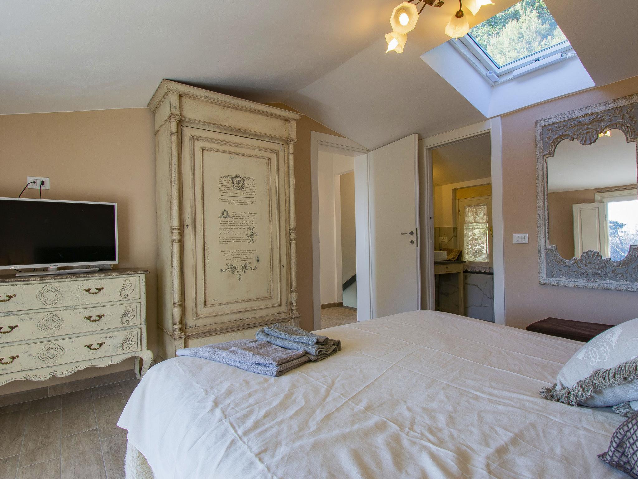 "Il Paradiso", 4-room house 120 m2 on 2 levels. Modern and tasteful furnishings: living room with 1 double sofabed and digital TV. Exit to the veranda. Kitchen (oven, dishwasher, 4 gas rings, toaster, kettle, microwave, electric coffee machine). Shower/WC. Upper floor: 2 double bedrooms, each room with shower/bidet/WC and digital TV. Porch. Terrace furniture, barbecue, deck chairs. Very beautiful panoramic view of the valley. Facilities: washing machine, dryer, mosquito net, hair dryer. Internet (WiFi, free). Please note: non-smoking house. Maximum 1 pet/ dog allowed. Smoke alarm, fire extinguisher. IT047008B5DHBZP6GH