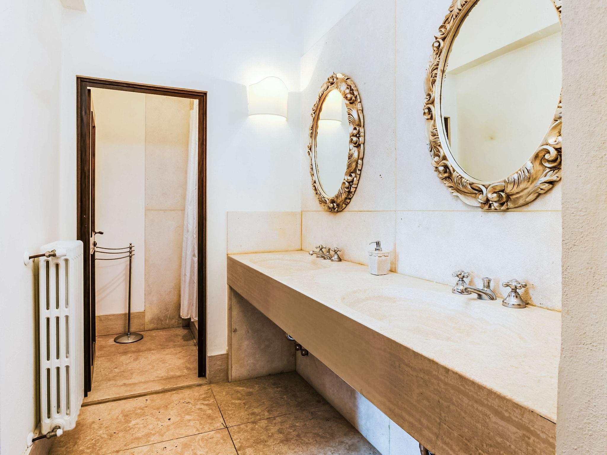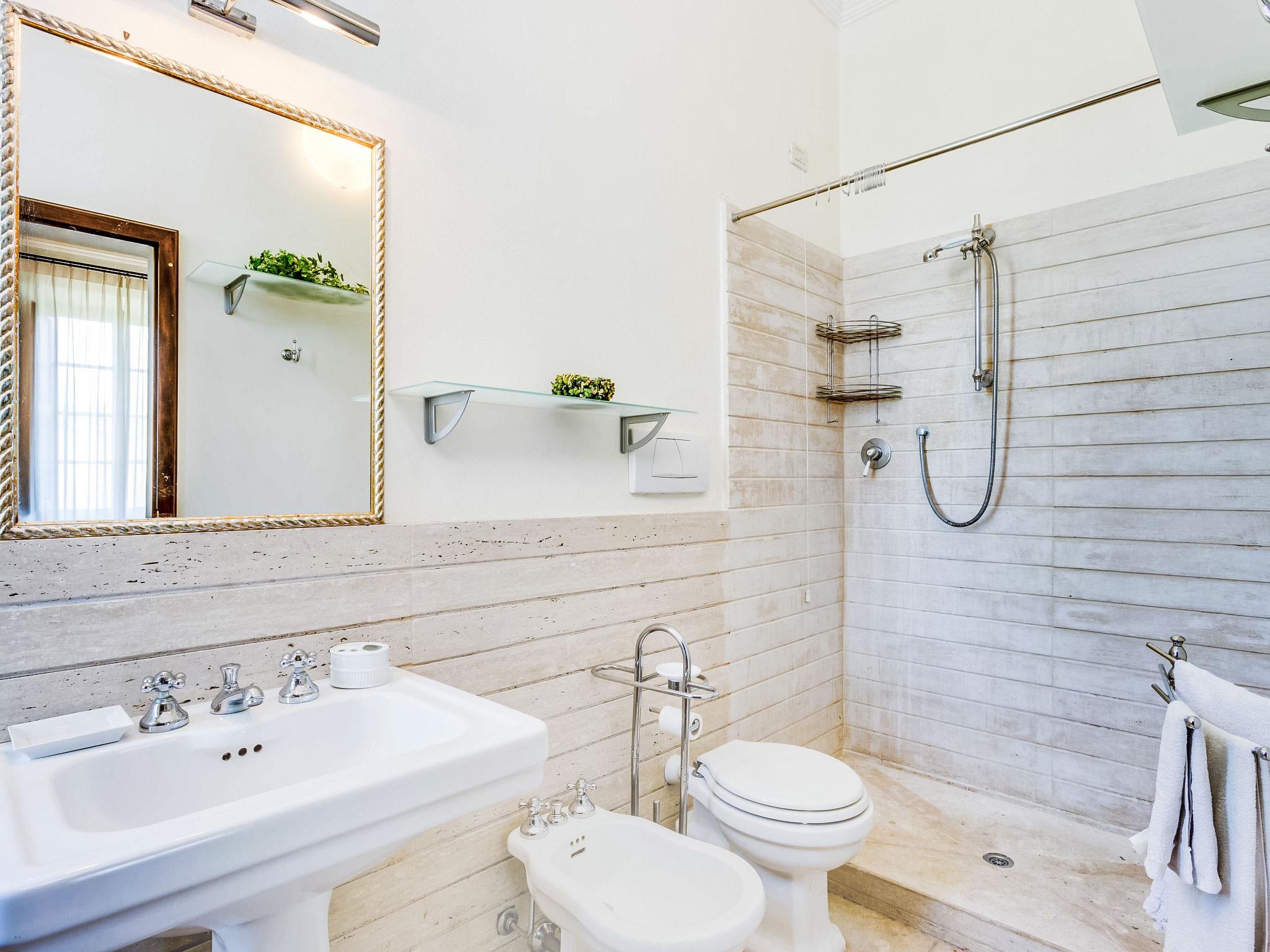 19-room villa 880 m2 on 3 levels, on the ground floor. Entrance hall. Dining room with 1 double sofabed and satellite TV. Exit to the patio. Living room with separate WC. 1 double bedroom. Kitchen-/living room (5 hot plates, oven, dishwasher, toaster, kettle, freezer) with dining table. Shower/bidet/WC. Upper floor: lounge with open-hearth fireplace. 1 double bedroom. Lounge. Dining room with open-hearth fireplace. Open living room. Open lounge. Exit to the garden. Open living room. Sep. WC. 2nd upper floor: living room. Lounge. 1 double bedroom with shower/bidet/WC. Small lounge with shower/bidet/WC. 1 double bedroom. 1 room with 2 beds and shower/bidet/WC. 1 double bedroom with shower/bidet/WC. 1 double bedroom with shower/bidet/WC. Heating (extra). Facilities: washing machine, safe, iron, children's high chair, baby cot for up to 2 year olds. Internet (WiFi, free). Please note: suitable for families. Smoke alarm, fire extinguisher. IT047020B5ZPQBC8FE