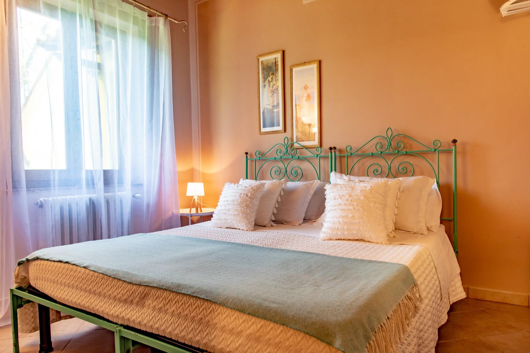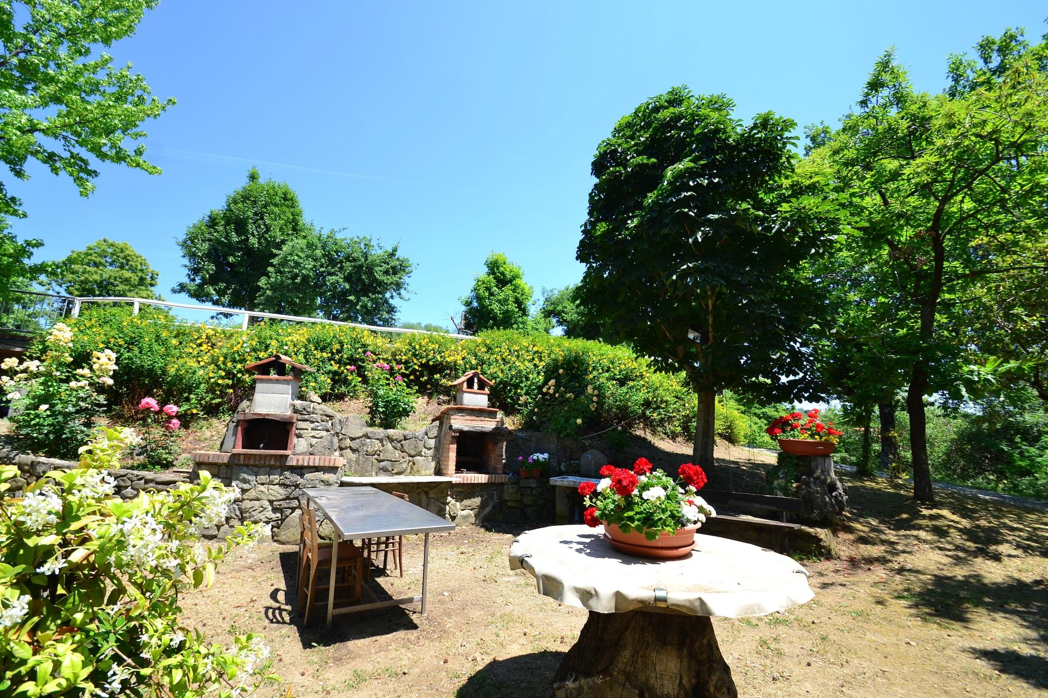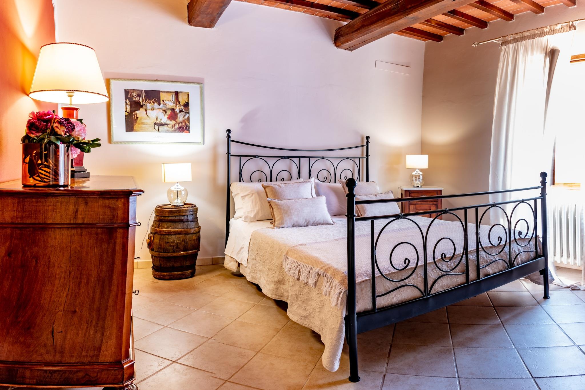Dette charmerende, velholdte feriehus i stueetagen (80 m²) blander traditionel toscansk stil med moderne komfort og har træbjælkelofter og terracottafliser. Beliggende i de bølgende toscanske bakker på 30.000 m² fuldt indhegnet grund, hvoraf en del er en olivenlund (gæsterne kan høste oliven i oktober/november), tilbyder ejendommen en privat have, swimmingpool (10 x 5 m) og udendørs område med grill og ovn - perfekt til at spise midt i naturen. Fra terrassen kan du nyde panoramaudsigten over Montecatini Terme, der om natten er oplyst som en julekrybbe. Området er ideelt til cykling, vandreture eller ridning og tilbyder også enogastronomiske oplevelser med lokale vine, olivenolie og honning, herunder gratis smagninger i ejendommens butik. I nærheden af Montecatini Terme (5 km) finder du barer, restauranter, butikker, kurbade og natteliv. Ejendommen er perfekt beliggende for dagsture til Firenze, Pistoia, Lucca, Pisa og Luca Comics-festivalen. Yderligere bekvemmeligheder inkluderer valgfri indkøb af dagligvarer på anmodning, opladning af el-/hybridbiler (15 EURO pr. opladning) og to ekstra pladser på en sovesofa (efter anmodning). Afslapning, kultur og autentisk toscansk liv venter i dette fortryllende landlige fristed.