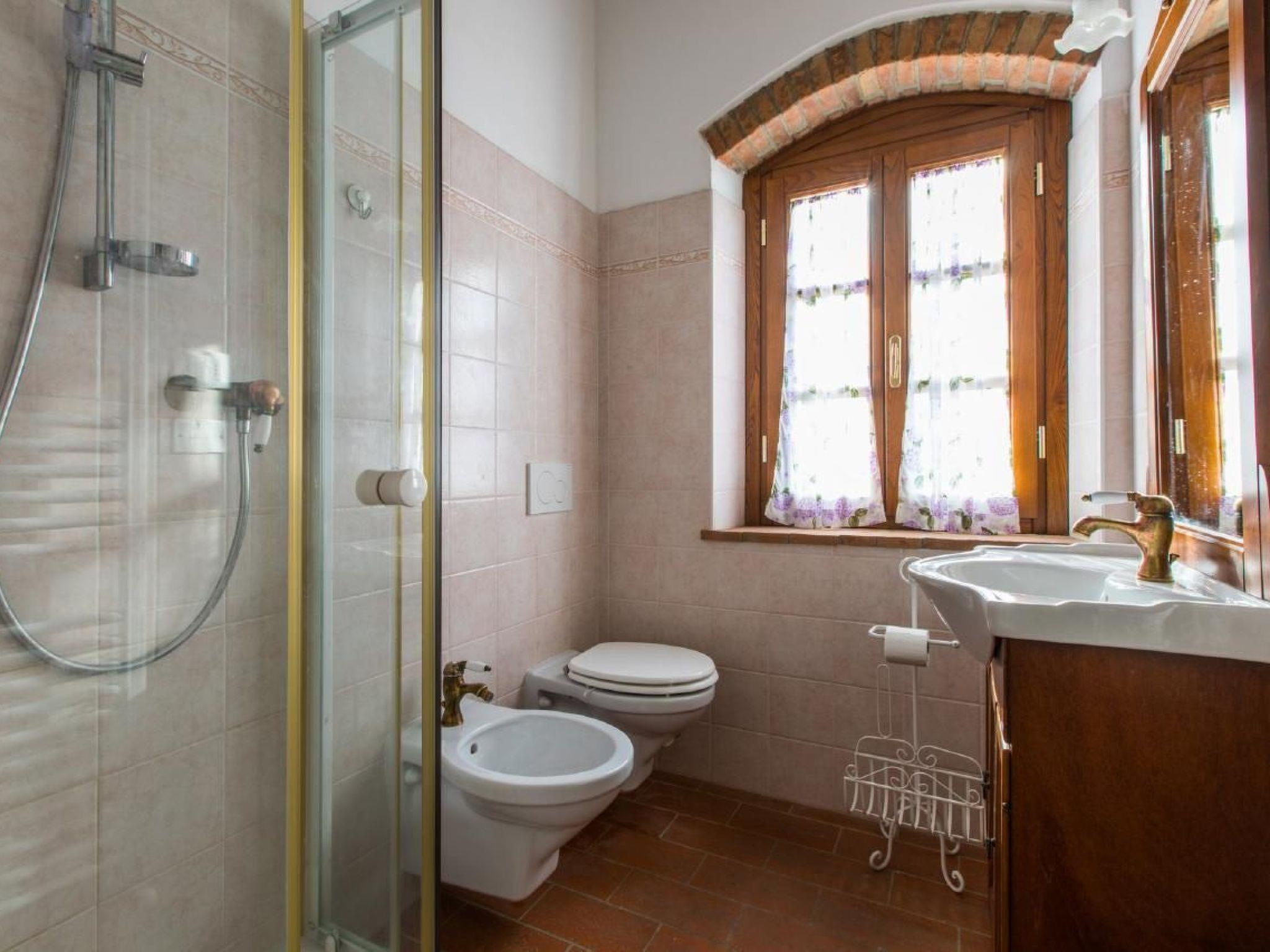 Inside, the villa unfolds on two levels: on the ground floor we find a spacious, fully equipped kitchen and a comfortable living room, ideal for relaxing moments. On the first floor, the house offers 3 charming bedrooms, two of which are double and one single, making the space perfect for up to five people. There are also 2 bathrooms, both with breathtaking views of the surrounding countryside, guaranteeing an awakening immersed in Tuscan beauty.